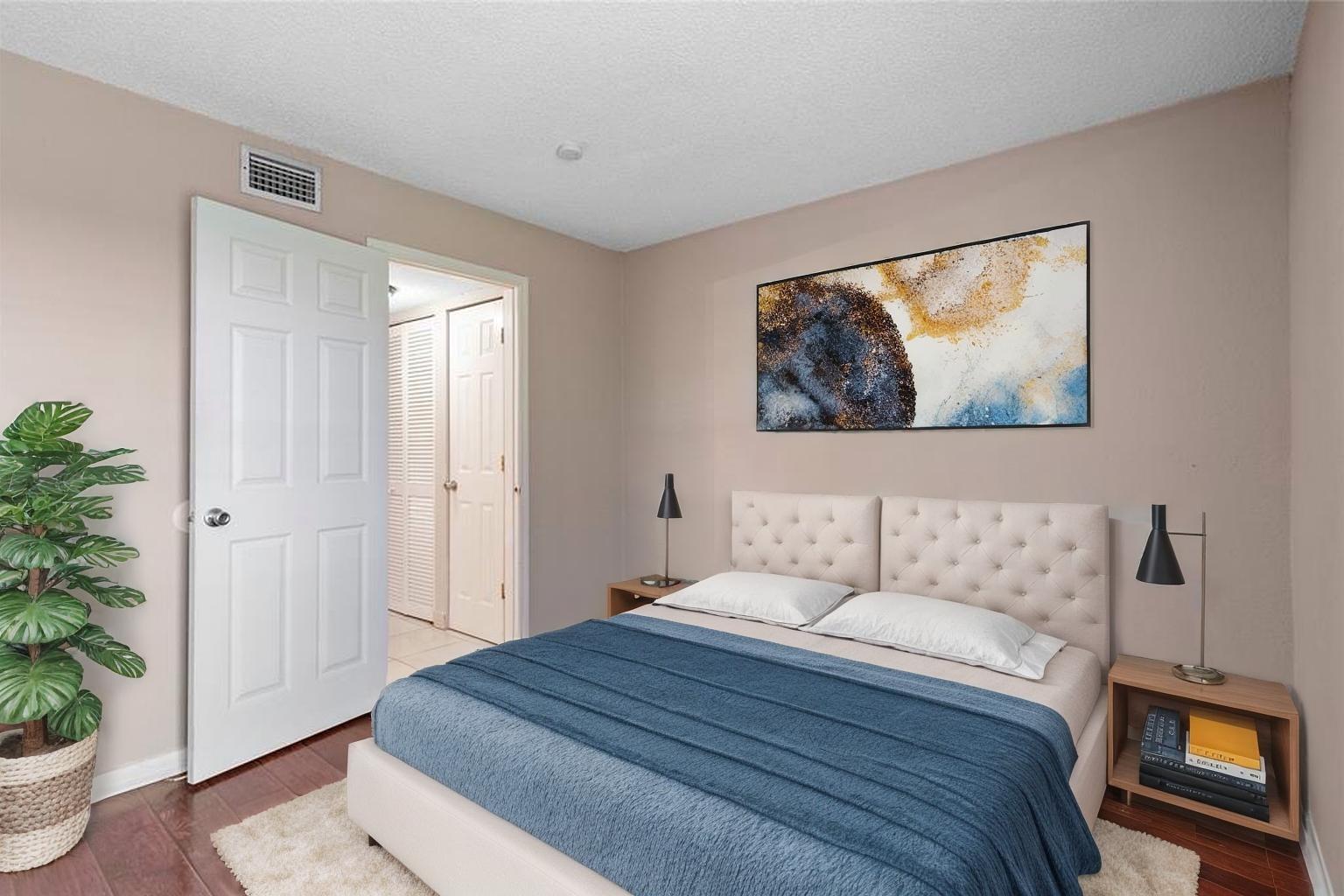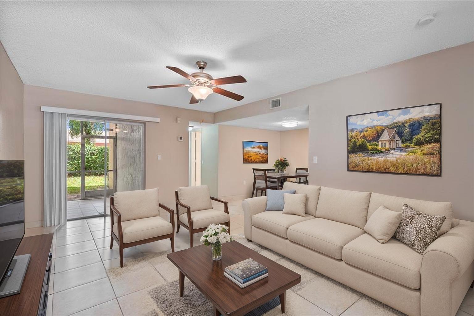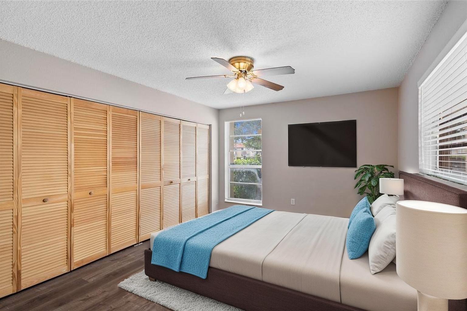 Lovely 2 bedroom, 2 bathroom 1st floor condo located in Palm Terrace! This condo features a split bedroom floor plan, laminate and tile flooring throughout, no carpet. The screened patio is equipped with a full size washer and dryer. Enjoy the private community pool. Palm Terrace is conveniently located near shopping centers, dining, and schools. Welcome to all ages! Pets are allowed with restrictions. 1 assigned parking space plus guest parking is available.