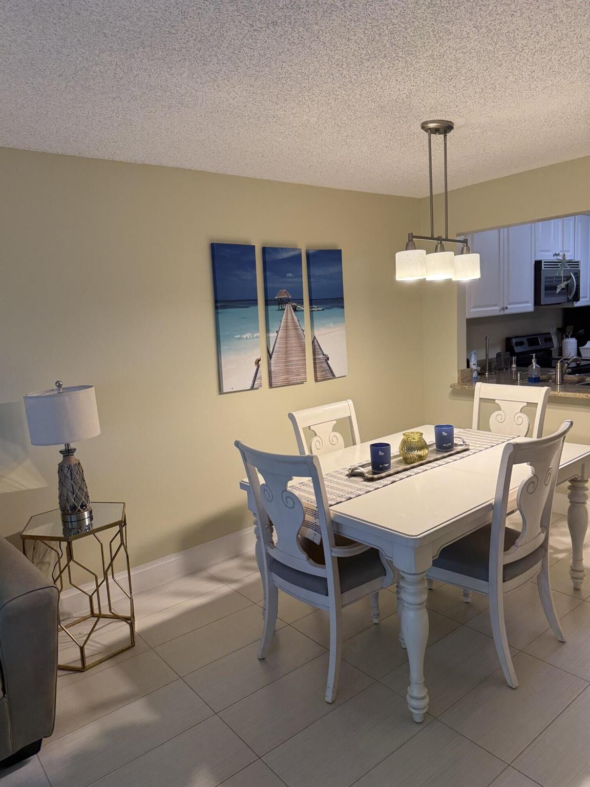 Beautifully done 2 bed 2 bath upgraded, coastal inspired condo located on 1st floor of small two story complex in heart of Delray Beach. Walking distance to Federal highway, shopping and dining and a mere 5 minute drive to the beach. Fully equipped kitchen has granite countertops and stainless steel appliances. The living room/dining areas are spacious and bright. Both baths are renovated with beach vibes. Tile flooring throughout. Fully screened in patio overlooks the greenery and common pool area off to right hand side. Laundry facilities conveniently located down the catwalk just a few mere steps from unit. All age community. This unit is move in ready.
