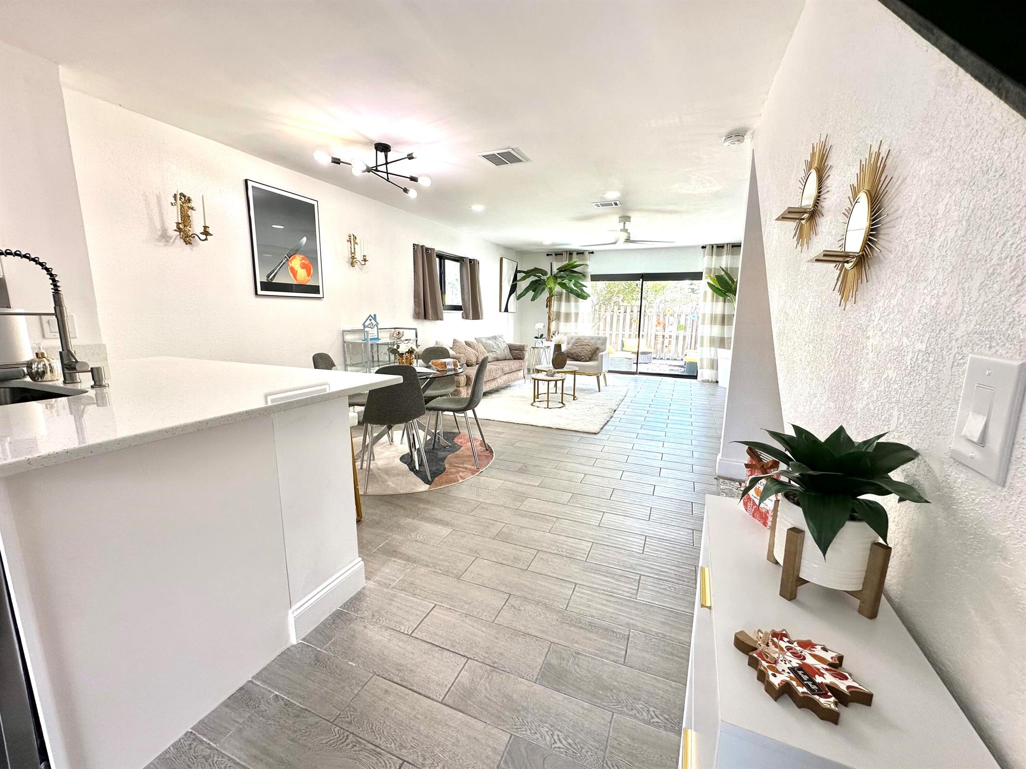 Renovated 2BR/1.5BA beachside townhome with private beach access across the street! Modern open living area with electric fireplace, stylish furnishings, and full kitchen with stainless appliances. Private landscaped patio with lounge seating & BBQ plus community pool and tennis courts. Upstairs: king master, updated bath w/ rain shower, guest bedroom w/ queen, and in-unit washer/dryer. Includes linens, beach towels, games & beach toys--move-in ready for your coastal getaway!