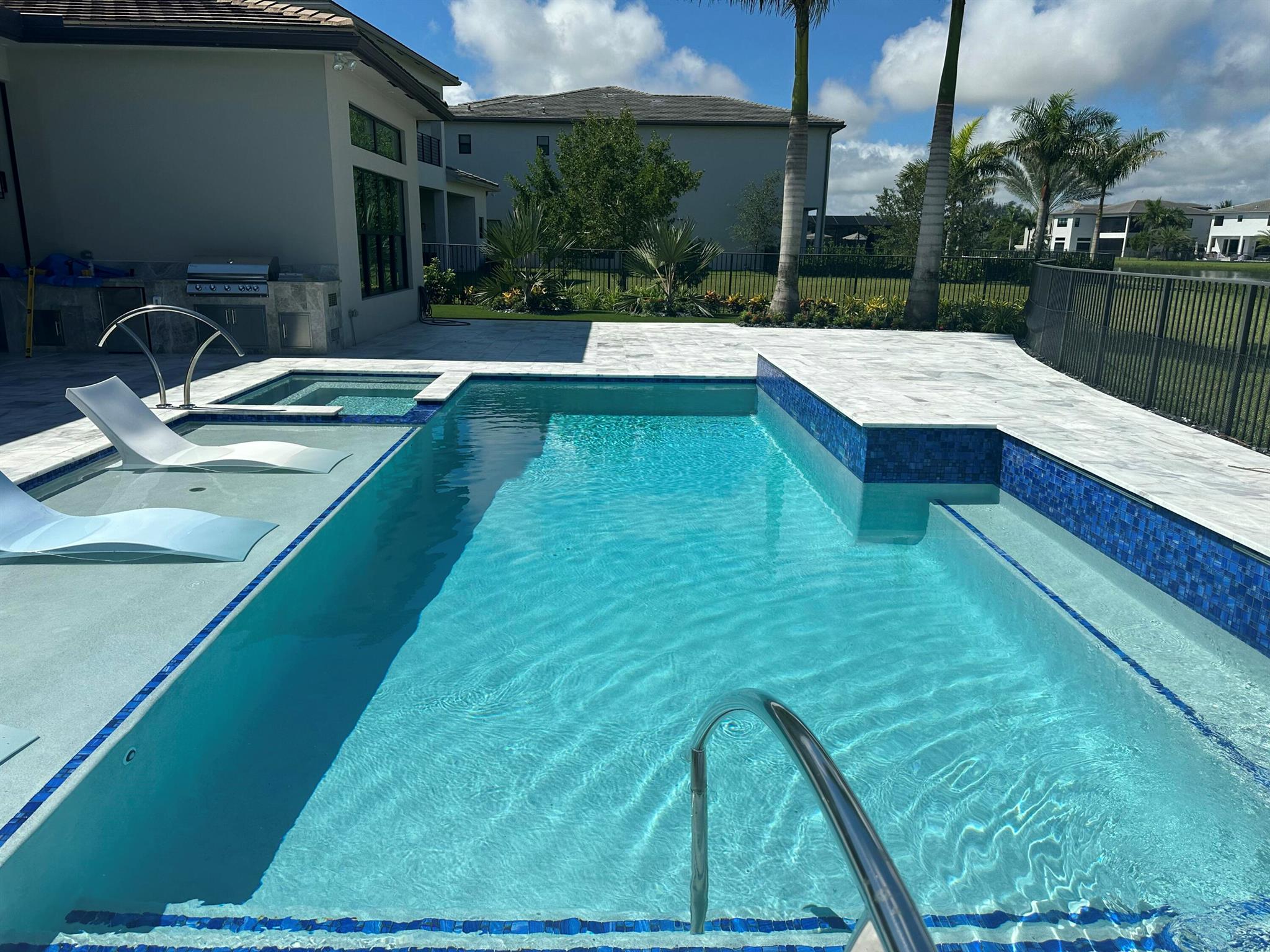 Discover a masterpiece of modern luxury in this stunning executive home, a true oasis with no expense spared. The heart of the home is an exceptional kitchen, a chef's dream with top-of-the-line appliances, custom cabinetry, and a massive center island. It flows seamlessly to your private resort: a brand-new, custom pool valued at over $200,000, with a sophisticated water feature and integrated lighting, perfect for entertaining or relaxation.Unwind in the lavish primary suite, featuring an exceptional bathroom with a large soaking tub, a frameless glass shower, and high-end finishes. The three-car garage boasts immaculate epoxy floors, offering a clean, stylish space. Every detail of this home has been carefully curated to provide the ultimate in comfort and sophistication.