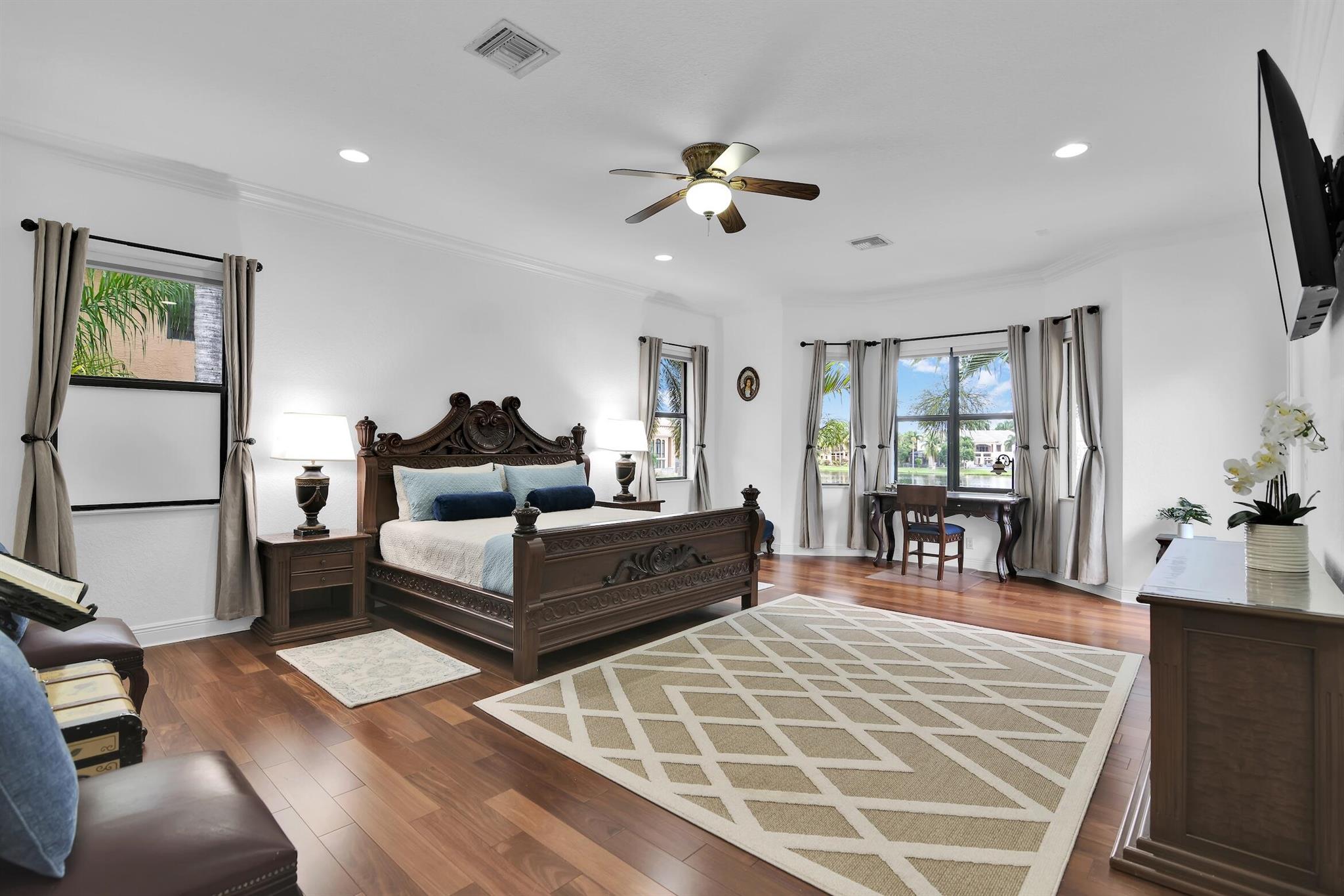 Step into your private oasis in this European castle-inspired estate.Located in Versailles, one of Wellington's premier gated communities, this elegant residence is just 10 minutes from world-renowned equestrian venues. The home offers 5 spacious bedrooms, including a luxurious primary suite with a private terrace shaded by palm trees and overlooking the lake.Inside, you'll find natural wood finishes, custom closets, and refined details throughout. The residence features a private office, a media/meeting room, a grand lounge, and a stylish bar that opens to the chef's kitchen.Outdoors, enjoy a sparkling pool, jacuzzi, private gym, and hammock lounge, all framed by breathtaking lake views.Offered for annual rent, furnished or unfurnished. Seasonal terms may also be consider