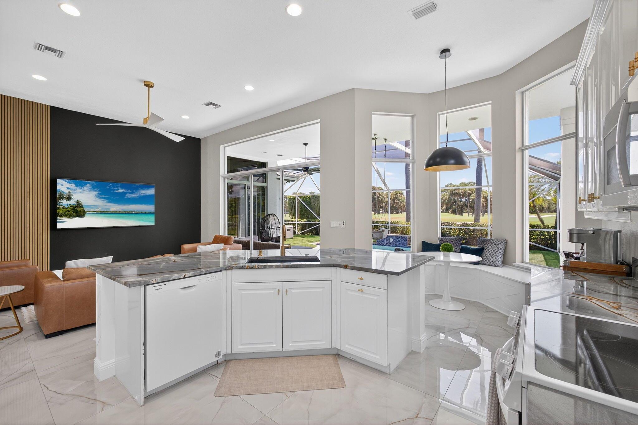 Set on a private cul-de-sac in the boutique Ironhorse community, this updated 4-bedroom, 4-bath ranch styled home offers panoramic views of the preserve, & the renowned Arthur Hills Championship golf course, with no mandatory membership. Be captivated by the 12-ft ceilings with abundant natural light, elegant new porcelain tile floors throughout, a brand-new roof (2024), new A/C, new pool heater, new water heater, new pool pump, new impact double front door, extended driveway & fresh interior & exterior paint. The open-concept kitchen with quartz countertops, a built-in breakfast nook, & a shiplap-accented island, flowing into spacious living areas framed by custom wood panel media wall & sweeping golf views, while the primary suite boasts custom his & hers closets & a spa-style bath.