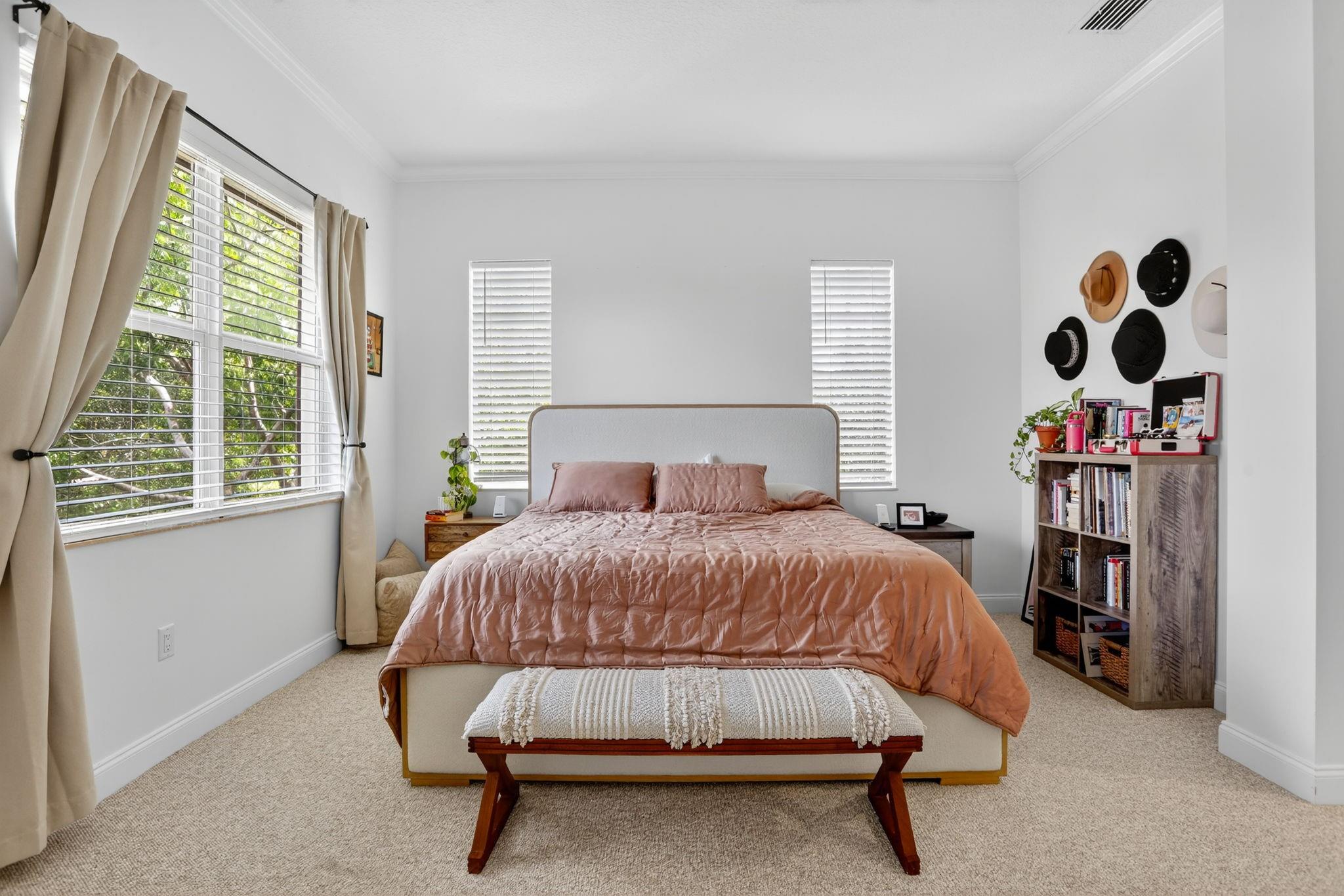 Bright & Spacious Townhome in Highly sought-after Heron Preserve, a gated community! This home features 3 bedrooms + loft, 2.5 baths, and a 2-car garage with hurricane impact windows. Inside, you’ll find fresh interior paint, 18x18 tile throughout all living areas, and Berber carpet in the bedrooms. The kitchen boasts stainless steel appliances, including a French-door refrigerator, glass-top stove with microwave, granite countertops, and wood cabinetry. The primary suite offers an oversized sitting/exercise area, built-in walk-in closets, and a luxurious bath with dual vanities, a Roman tub, and separate shower. Located in the award-winning A+ Parkland school district, this home combines comfort, style, and convenience in one of the most desirable communities. Community Pool!