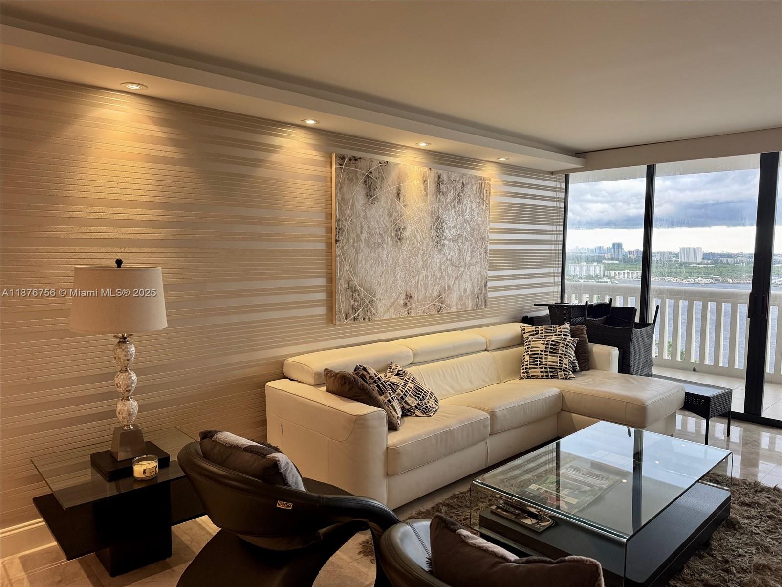 UPDATED & FURNISHED 2 BED /2 BATH UNIT WITH MARBLE FLOORS THROUGHOUT. STAINLESS STEEL APPLIANCES, GRANITE COUNTERTOPS, BEAUTIFUL WATER VIEWS AND SUNSETS FROM THE LARGE TERRACE. INCLUDED IN THE RENT IS PREMIUM CABLE TV, HIGH SPEED WIFI, WATER AND VALET PARKING. SOUGHT AFTER BUILDING WITH REMODELED LOBBY AND COMMON AREAS: LIBRARY, GYM, MOVIE THEATER, CARD AND GAME ROOM. LIVE IN PRESTIGIOUS WILLIAMS ISLAND W/ FULL AMENITIES: 15 TENNIS COURTS, 4 PICKLEBALL COURTS, 3 RESTAURANTS, STARBUCKS, STATE OF THE ART SPA, MARINA, WALK/JOG PATH, KIDS PLAYGROUND, COURTESY BUS, SYNAGOGUE, AVENTURA CHARTER SCHOOLS & MUCH MORE. UNIT CAN BE ALSO BE RENTED FOR THE SEASON