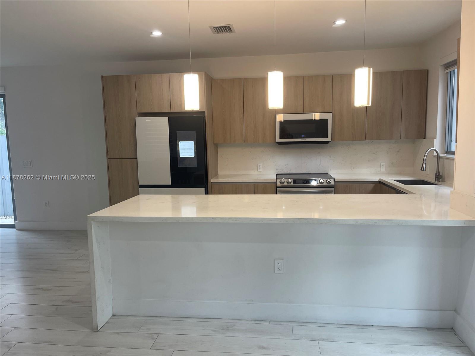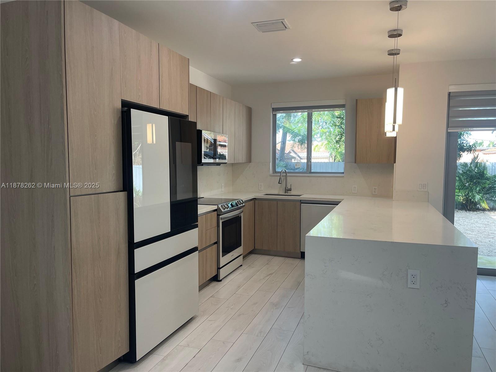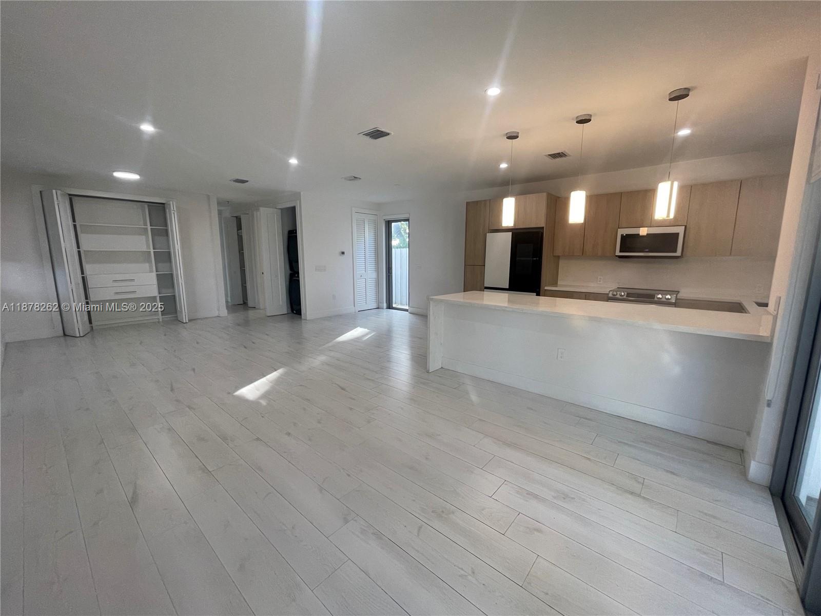 The developer spared no expense in this beautifully designed modern style duplex. Open layout design that features a lovely kitchen with custom wood cabinetry, marble countertops, almost brand-new stainless-steel appliances. Laundry closet with washer and dryer. Beautiful matching tile throughout the living space, bedrooms, and bathrooms. Custom designed closet. Exterior featuring lush landscaping. Concrete pad driveway. Hurricane impact windows and doors. Lighting throughout. Surveillance cameras installed. Electric gate entrance. Do not miss out on this amazing opportunity! Minimum credit score of 650 requested by the owner