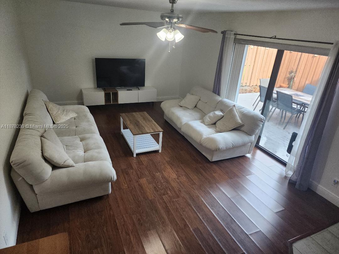 A beautiful 2 Beth,2.5 bath townhome in Rock Creek, the very desirable Cooper City! Refacing done in the kitchen, SS appliances, new water heater, washer & dryer, tiles in the kitchen & bathrooms, all from 4 years ago. Upstairs, 2 big masters; big closets, a full private bath, a laminate floor, and a little balcony in each room. Big size of the fenced front patio, enjoy the family / BBQ or gardening. Impact sliding doors on the first floor, 2 parking spaces, and many for guests. One minute walking to Camelot Gardens sub-pool and another big community pool for the rest of Rock Creek's neighbors. Rock Creek is a quiet and friendly family community that offers playgrounds, basketball and tennis courts, a gym, a clubhouse, and walking trails. (The house is also for sale if you are interested.)