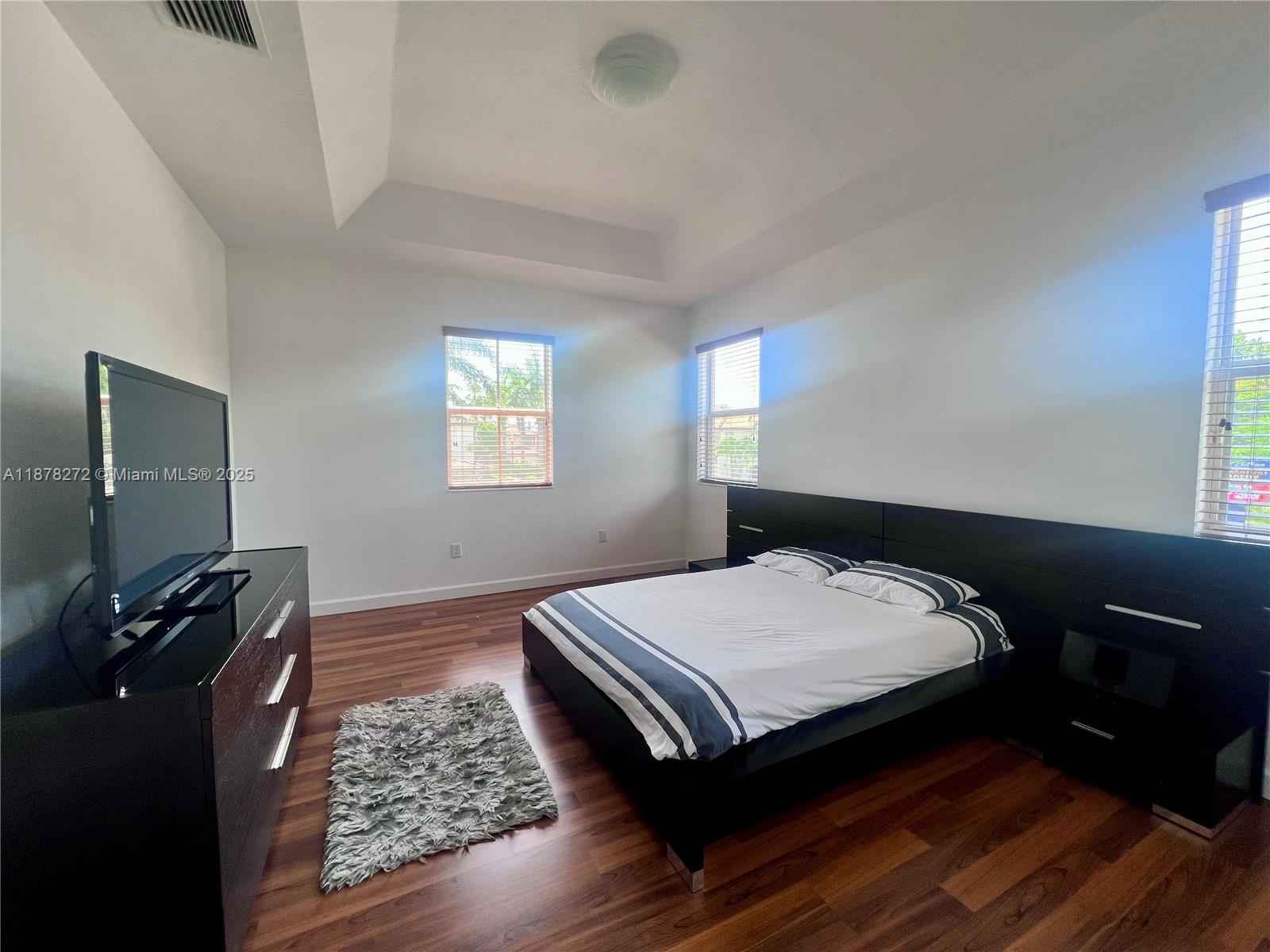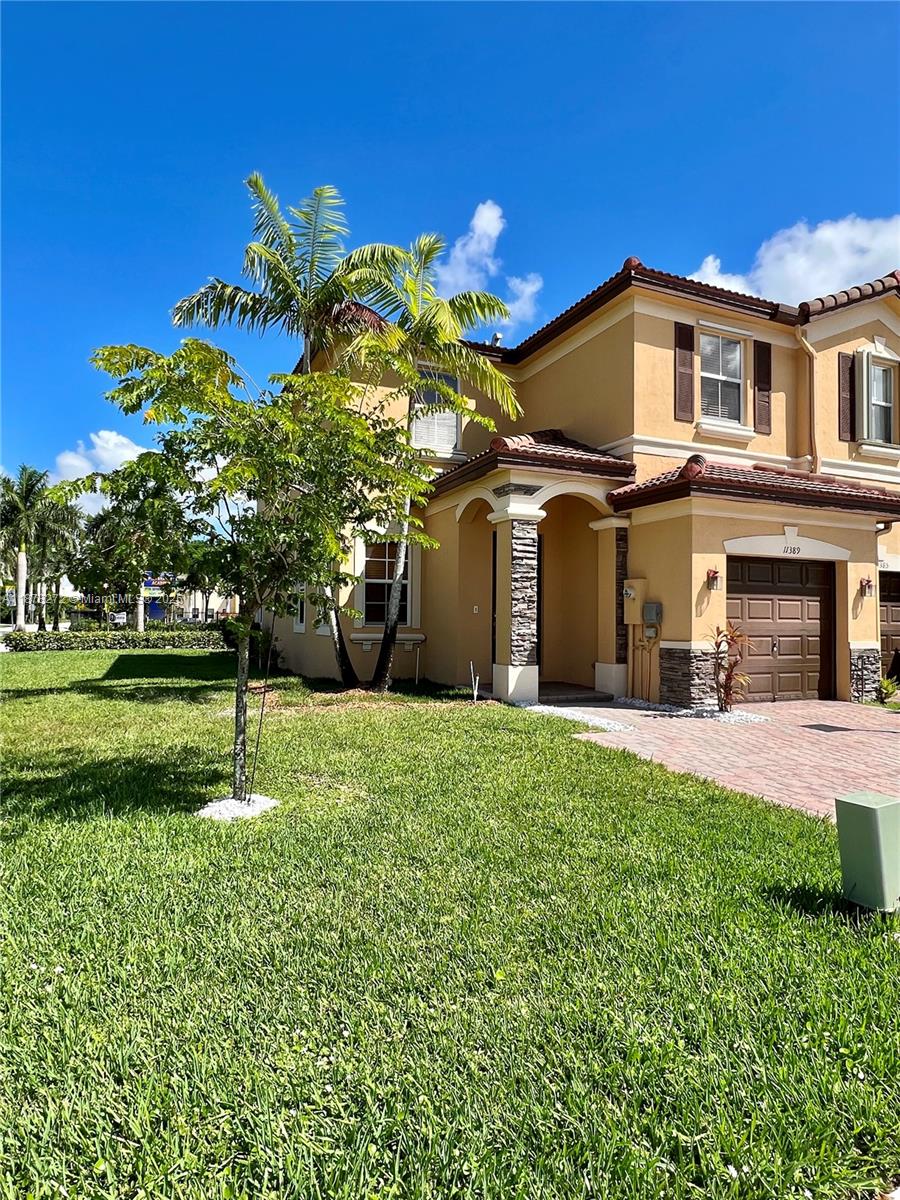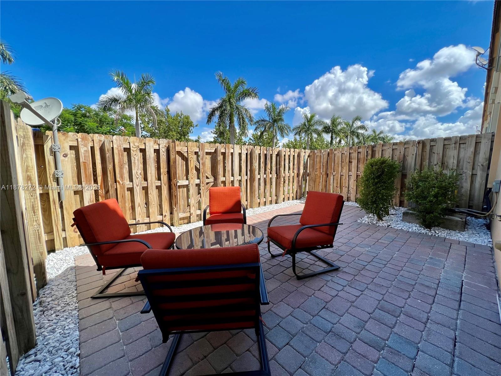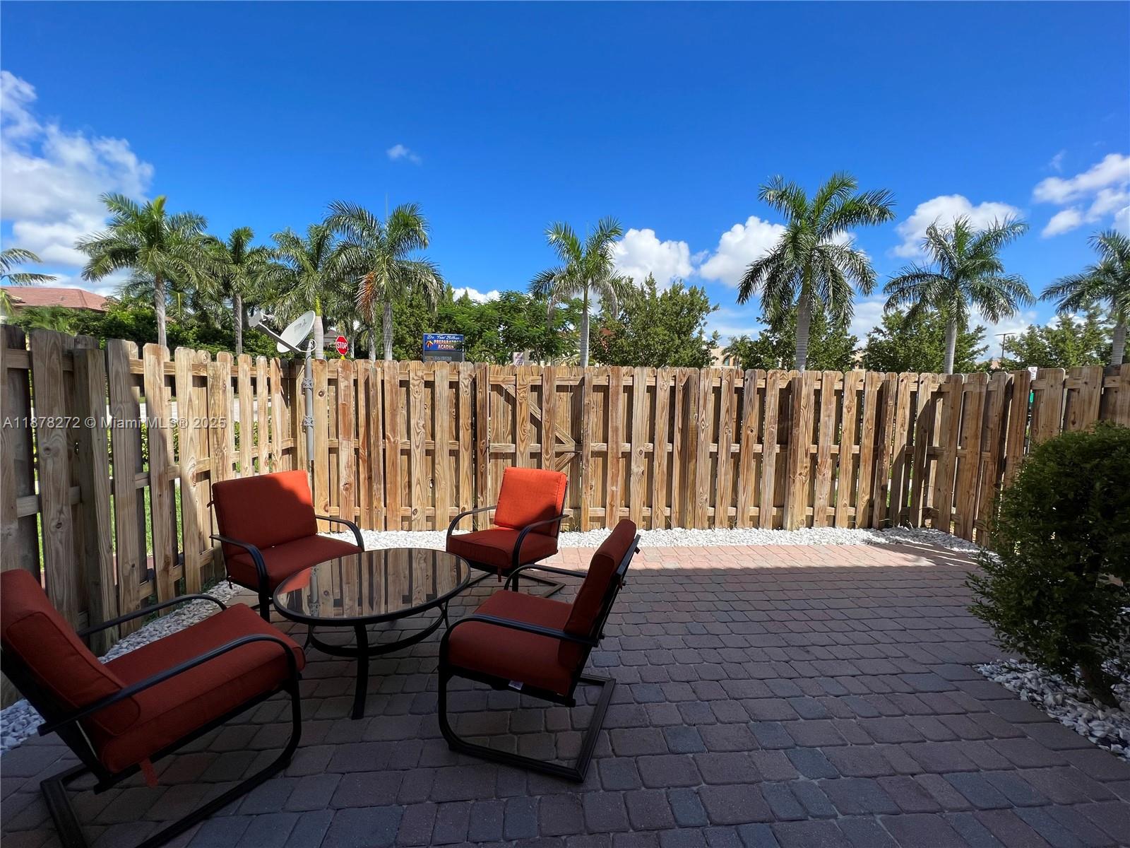 This townhouse is a beautifully furnished 3-bedroom, 2.5-bathroom home in Santorini at Islands at Doral. It boasts a prime location, just a short walk or bike ride to two brand-new public parks and top-rated A+ schools. The home is spacious yet easy to maintain, featuring a well-kept kitchen, formal dining area, and a paved backyard. All bedrooms are generously sized, with the master suite offering an expansive bedroom and bathroom. Additional features include a one-car covered garage plus two outdoor parking spaces. Residents also enjoy access to a stunning clubhouse with a variety of amenities.
