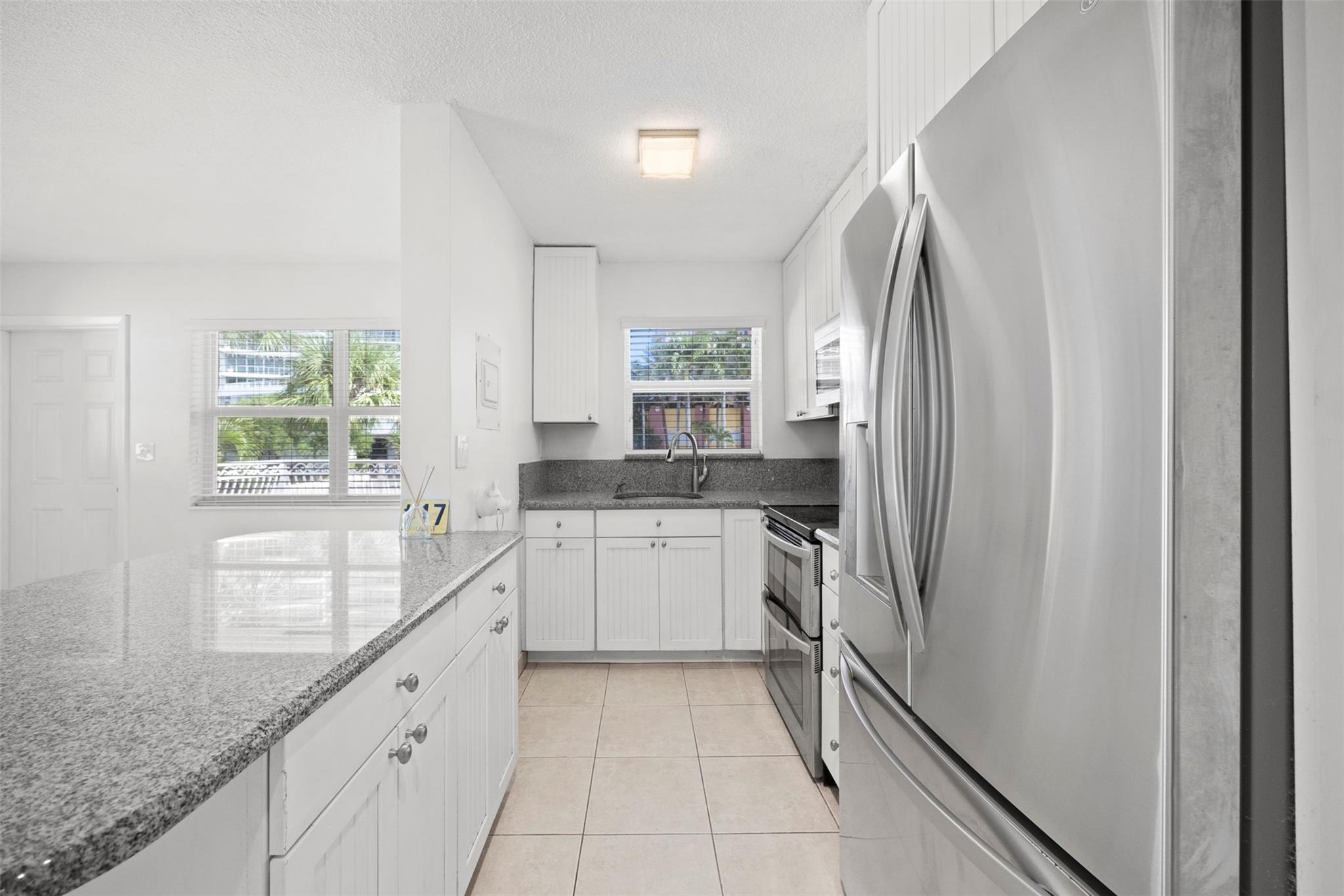 Beachside boutique living at its finest. This nicely remodeled corner unit is located in a charming two-story building directly across from the prestigious Auberge Beach Resort with convenient beach access. The residence features a beautifully updated kitchen with high-end stainless steel appliances, granite countertops, and soft-close cabinetry. The bathroom has been tastefully remodeled, and impact windows throughout provide abundant natural light. Additional highlights include a large storage closet, assigned parking with guest spaces, on-site laundry, and a community pool for your relaxation.