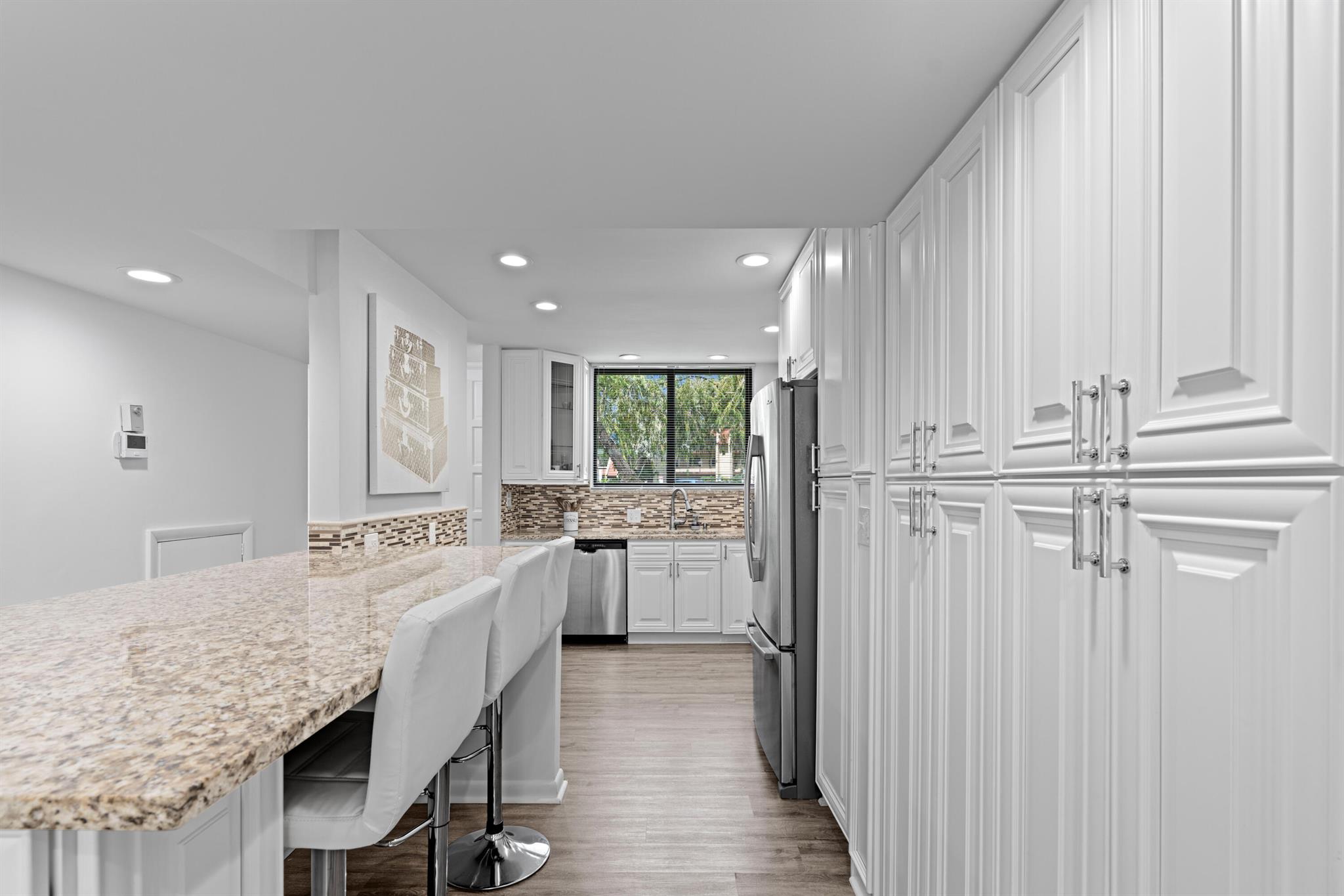 Beautifully updated 3-bedroom, 2.5-bath corner townhome, offered fully turnkey and ready to move in. The open kitchen features stainless steel appliances, an extended granite breakfast bar, and plenty of cabinetry for storage. Sunlight fills the home through sliding glass doors, creating a bright and welcoming atmosphere. For added convenience, one bedroom is located downstairs, while the primary suite upstairs includes a spacious walk-in closet. A full-size washer and dryer are also located within the home. Just steps from your front door, enjoy the community pool surrounded by lush tropical landscaping.