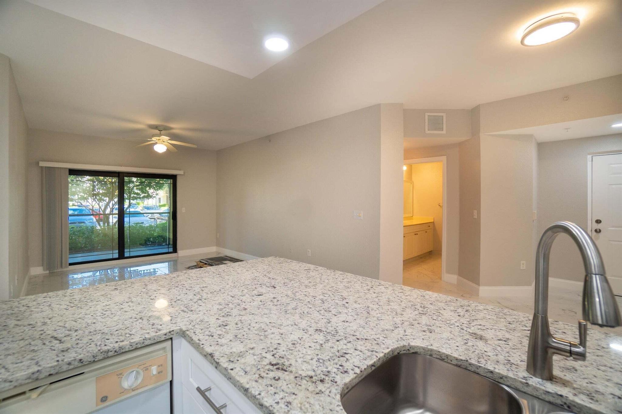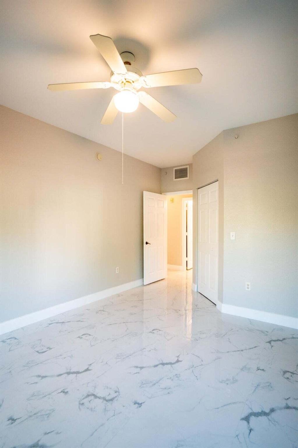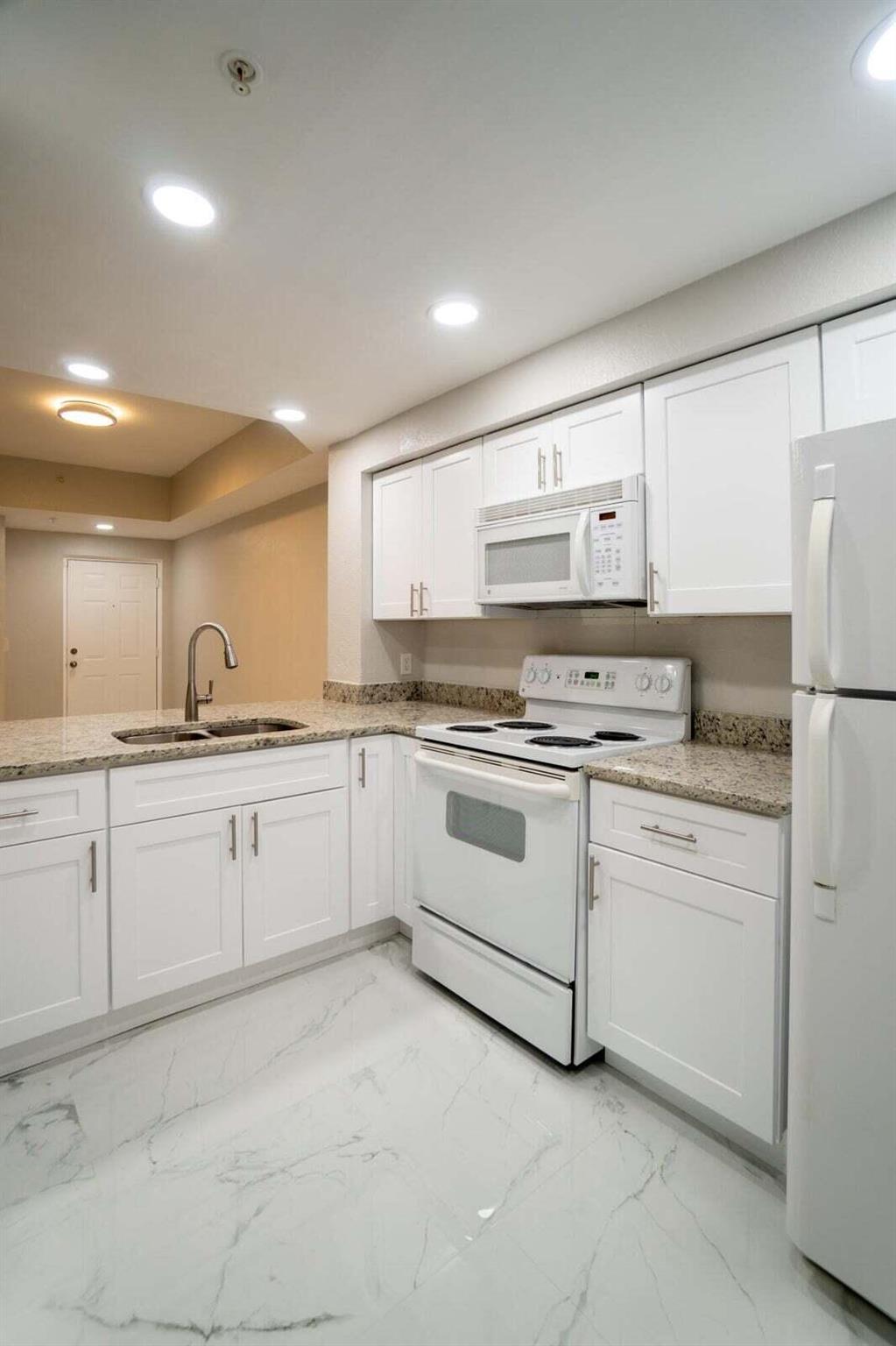 Gorgeous First floor unit with White tile and an off white freshly painted. Kitchen has brand new soft close cabinets with granite countertops. Full size washer and dryer with shelving and clothes rack in separate utility room. 3 Bedrooms with ceiling fans. Owners Suite and third bedroom both have walk in closets. Also all doors and windows are full hurricane impact. The community has a pool, spa, gym, library and a tennis court. This condo is close to Gardens Mall, Downtown Gardens and i95. Credit Score must be a 650 minimum required from the HOA