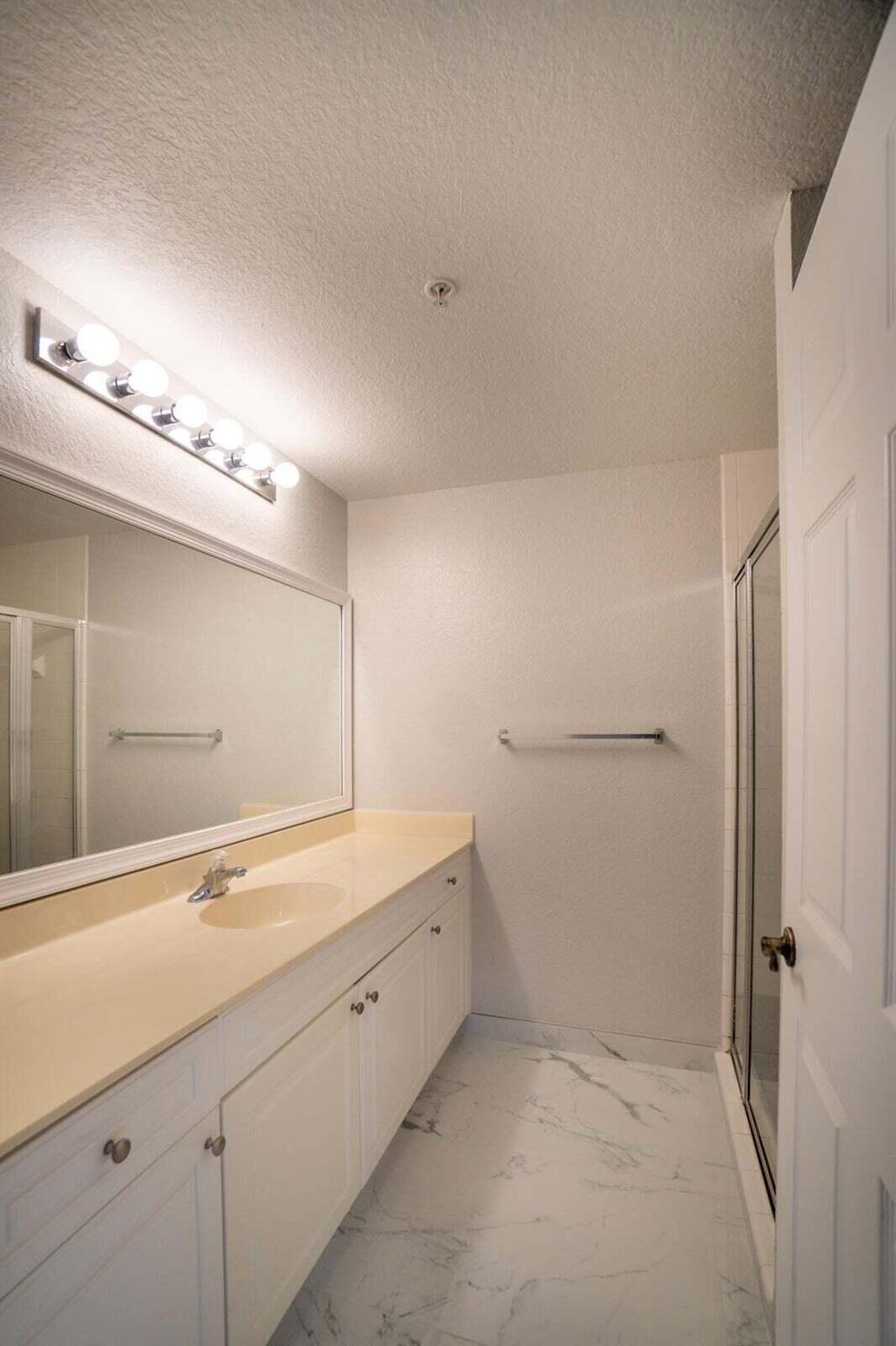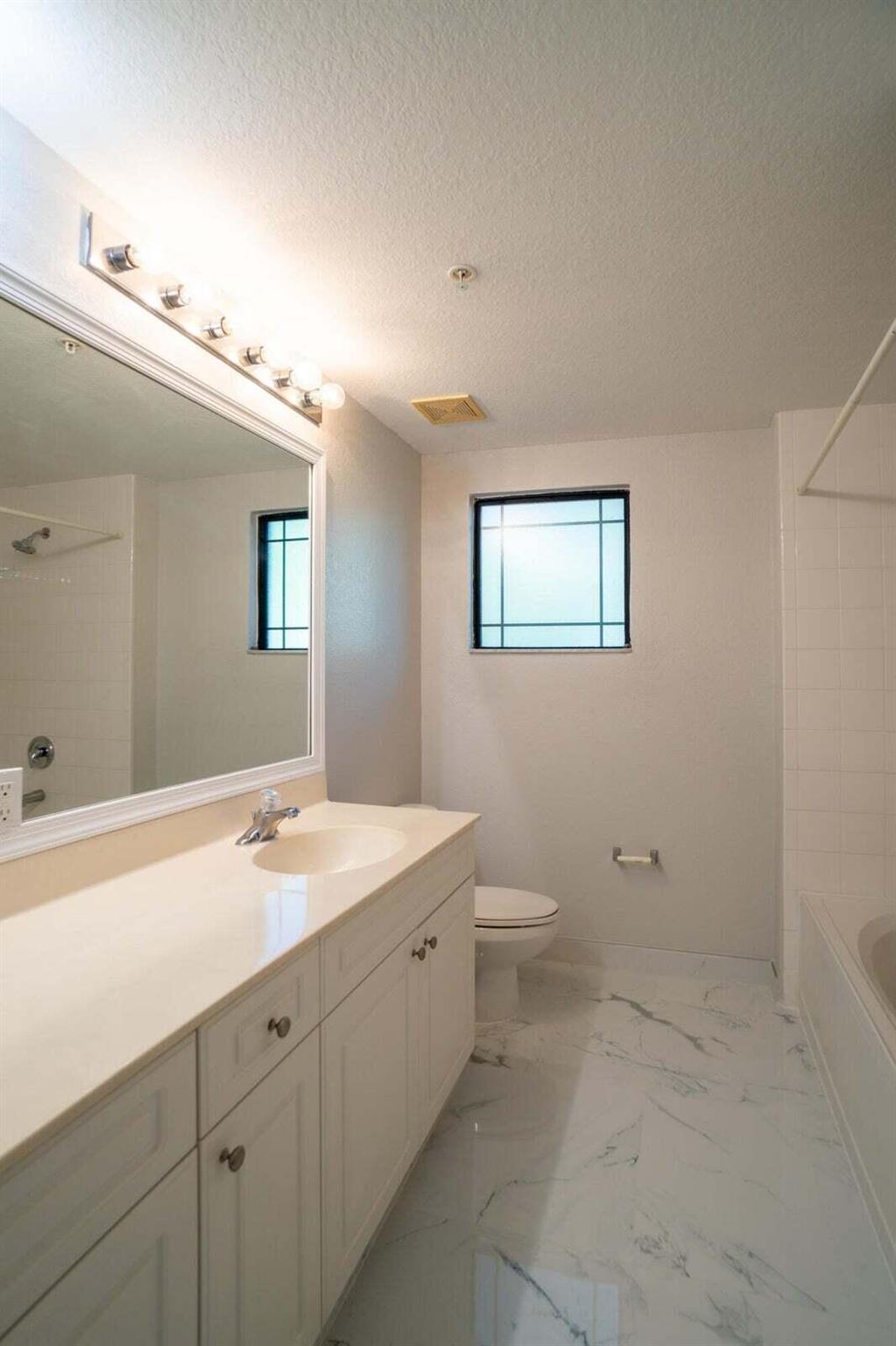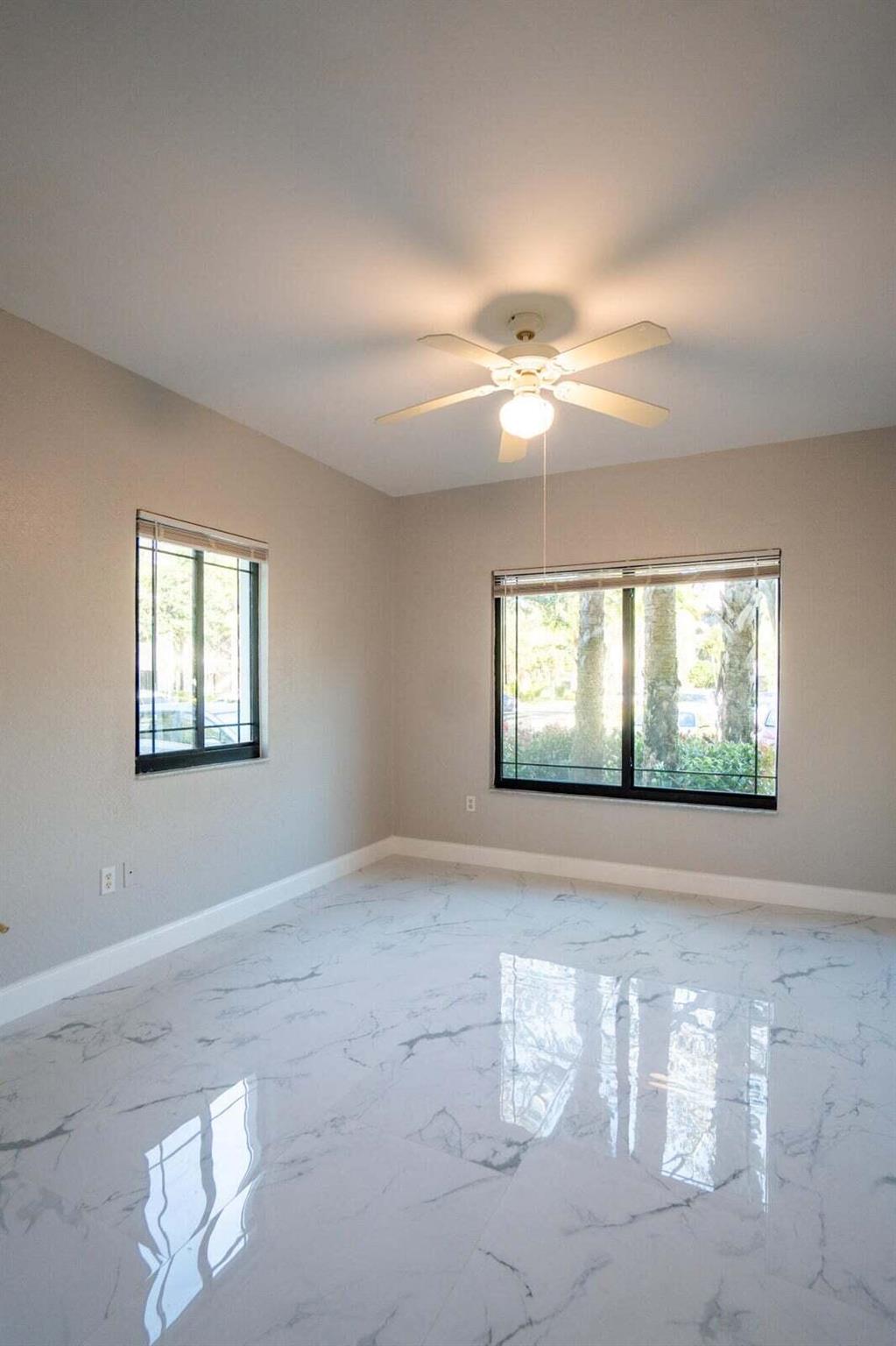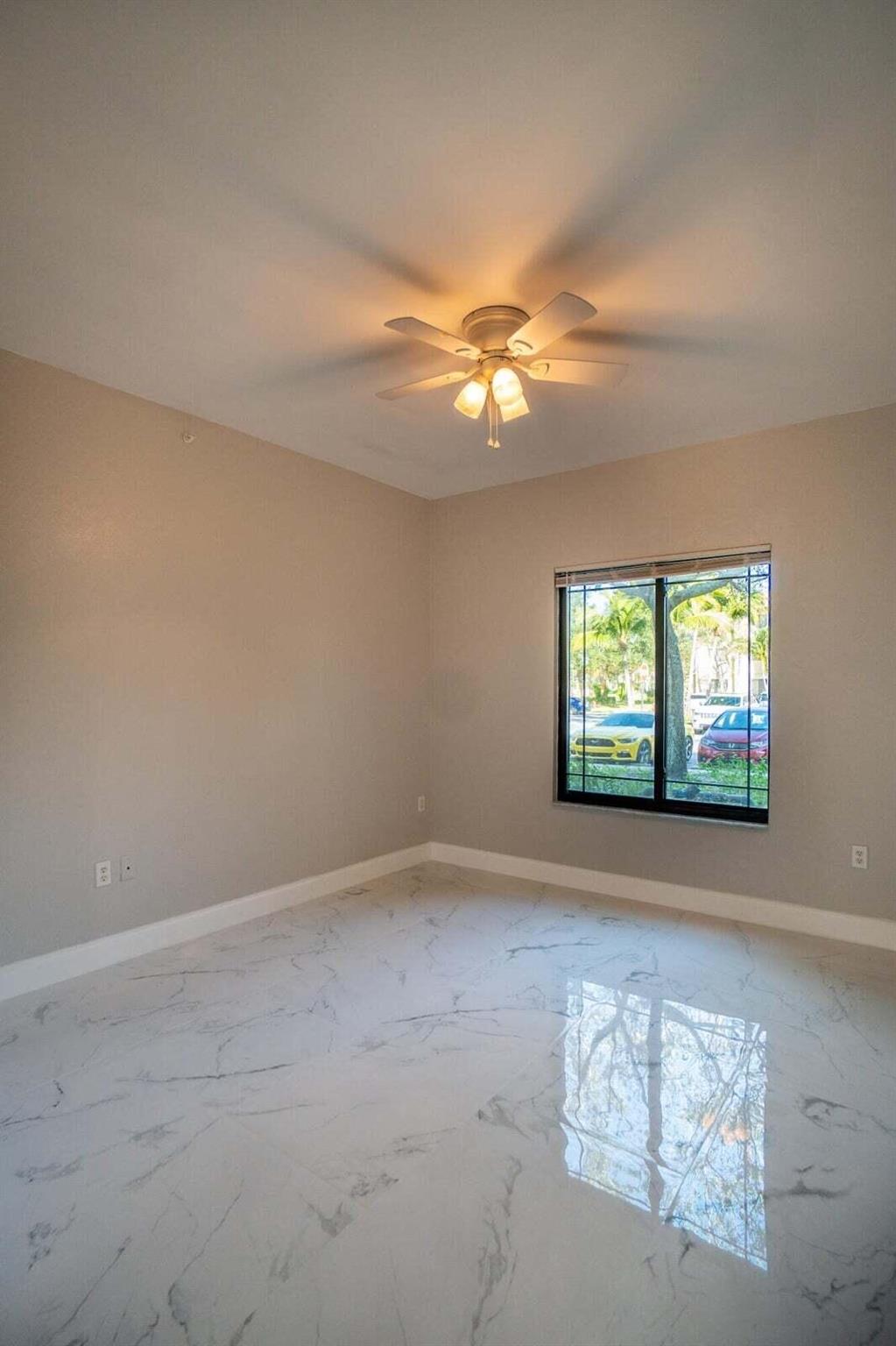Gorgeous First floor unit with White tile and an off white freshly painted. Kitchen has brand new soft close cabinets with granite countertops. Full size washer and dryer with shelving and clothes rack in separate utility room. 3 Bedrooms with ceiling fans. Owners Suite and third bedroom both have walk in closets. Also all doors and windows are full hurricane impact. The community has a pool, spa, gym, library and a tennis court. This condo is close to Gardens Mall, Downtown Gardens and i95. Credit Score must be a 650 minimum required from the HOA