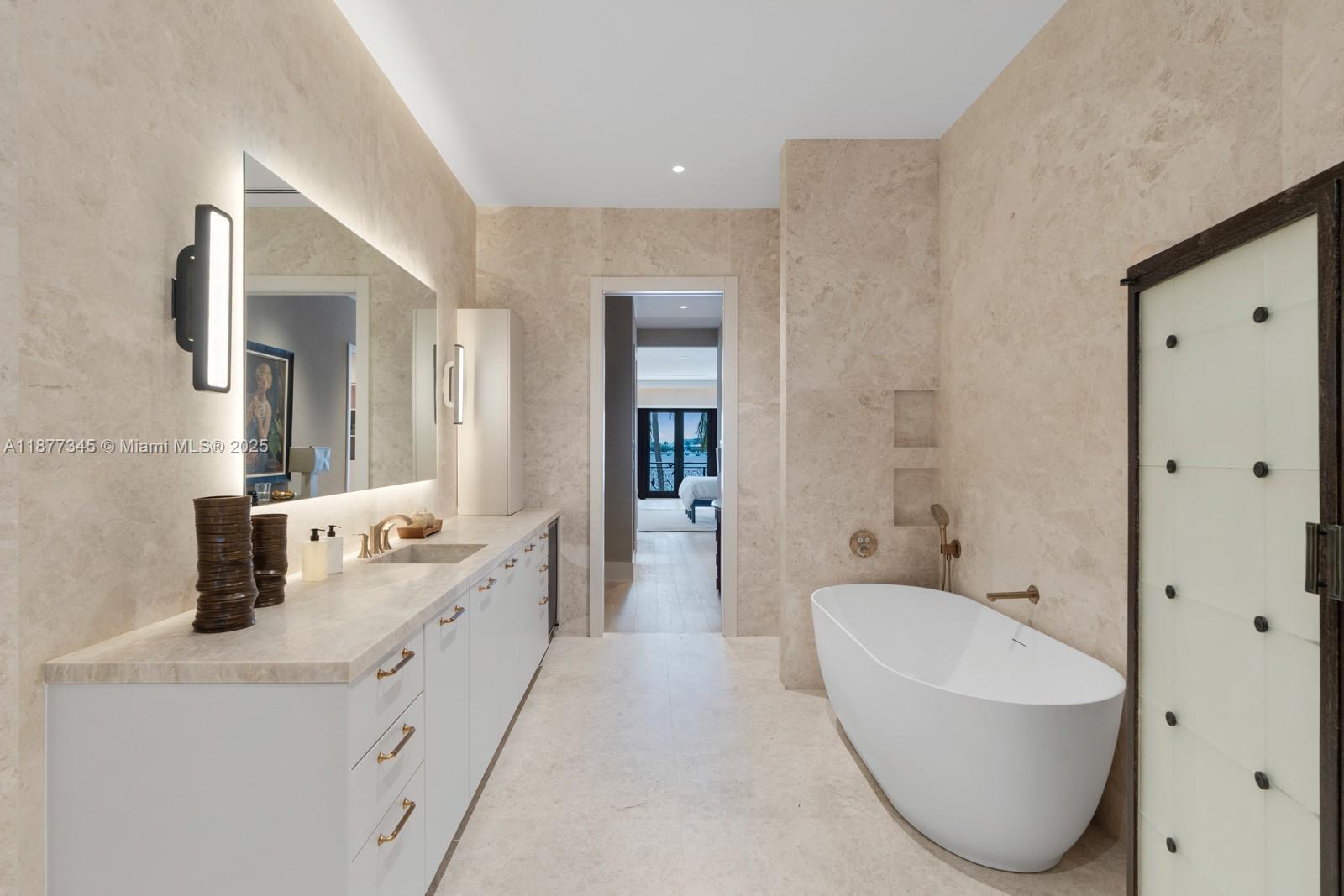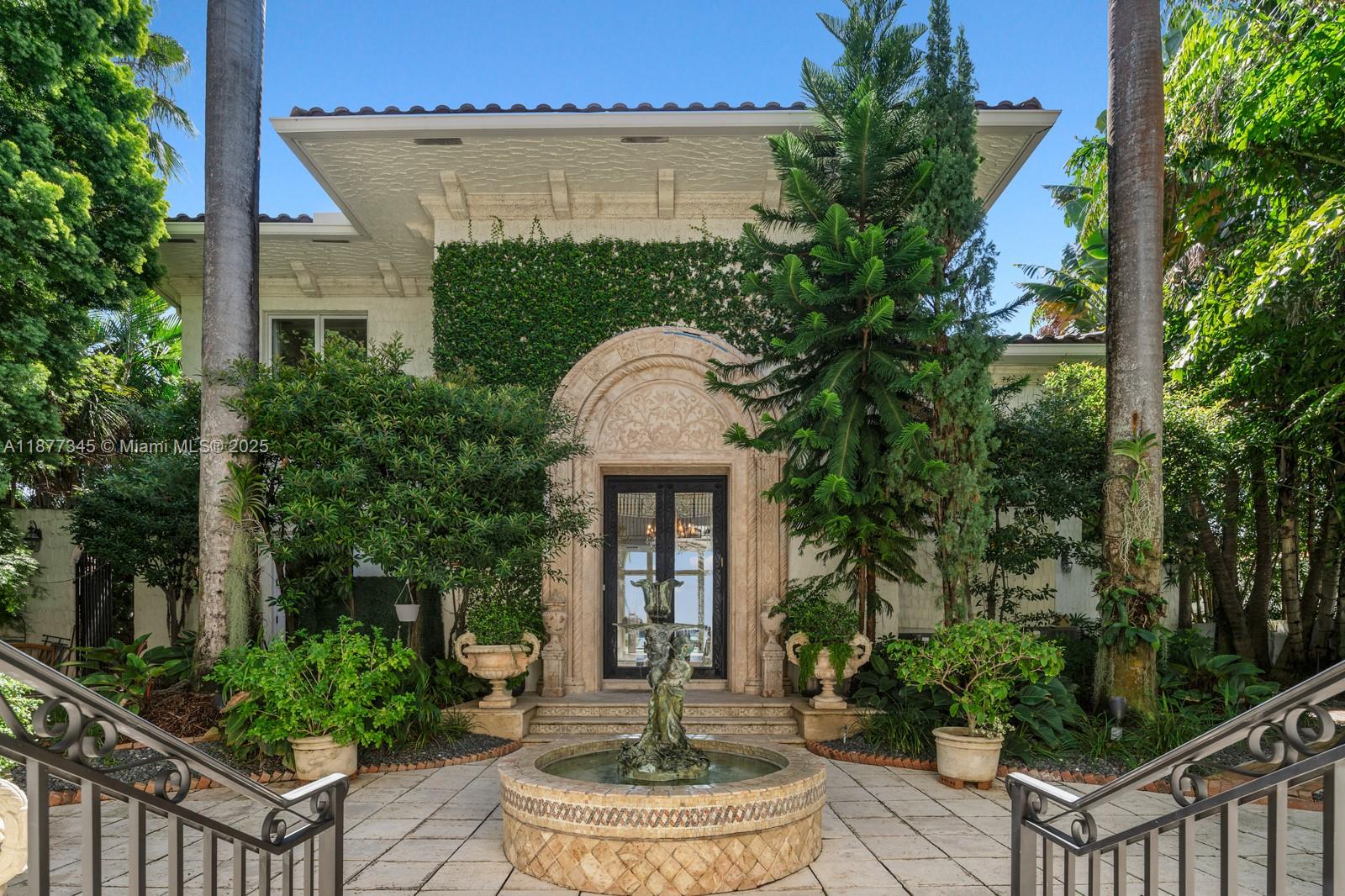 Step Inside With Me! This Mediterranean Revival showcases enchanting interiors, exceptional craftsmanship, and open bay views. The Main House underwent a 2025 renovation featuring double-height ceilings in social areas, sun-drenched living spaces with arched windows, a TV lounge, custom bar, wine cellar, elevator & private office. The contemporary kitchen offers custom millwork, generous island & a breakfast nook. The primary wing exudes elegance with dual dressing rooms, a spa-like bath and panoramic views. A stunning pool + spa, dual cabanas, grill, dock and 115' of water complete the outdoors. A separate ivy-draped guest house and idyllic courtyard entrance set the tone for timeless character with modern comfort. Set on over 17,500 SF of land with gated private driveway & ample carport.