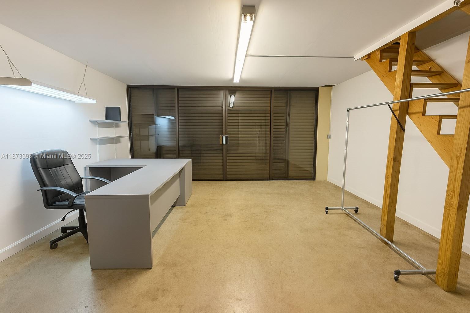 Prime 2,395 SQFT office/warehouse flex space available for lease, featuring a welcoming reception area, one large private office, kitchen, cabinet closet, restroom, and spacious warehouse with truck loading access plus an additional mezzanine storage area. Ideally located within a thriving business center, this property offers three assigned parking spaces, with water, garbage, and security services included in the rent, making it a convenient and cost-effective solution for a wide range of businesses.