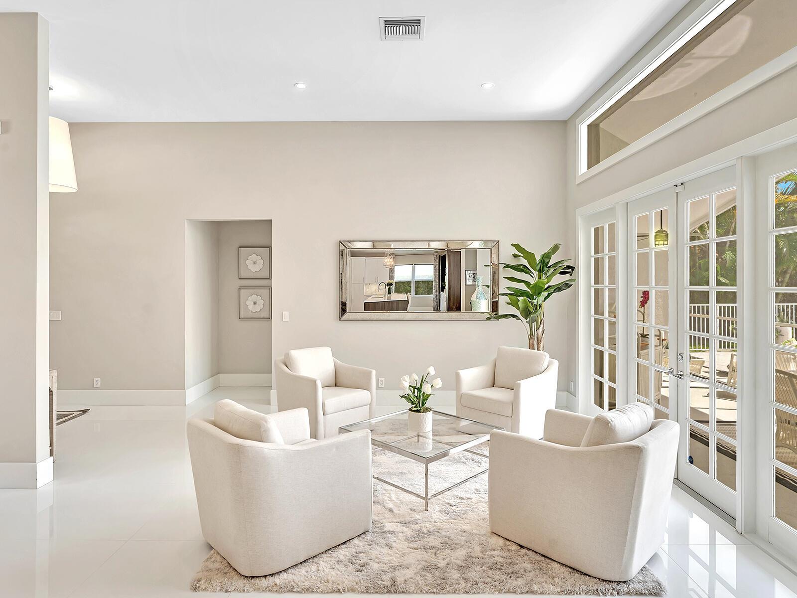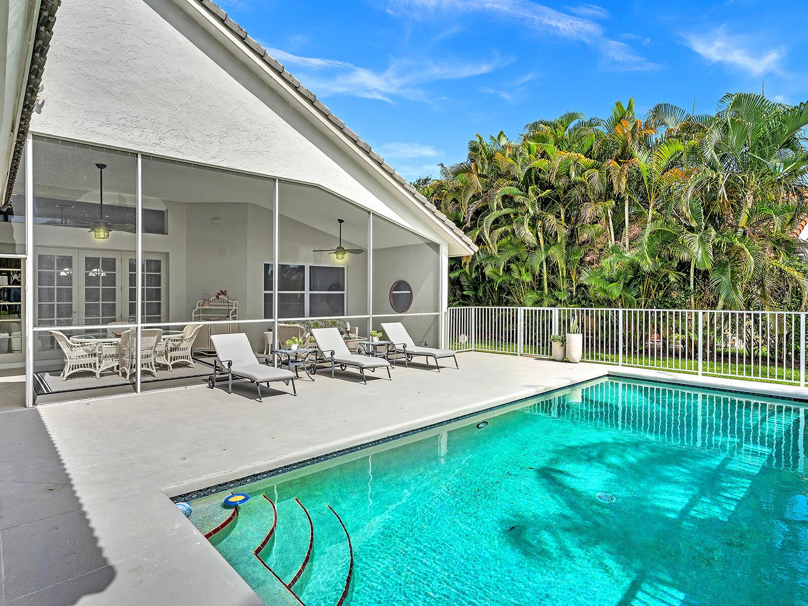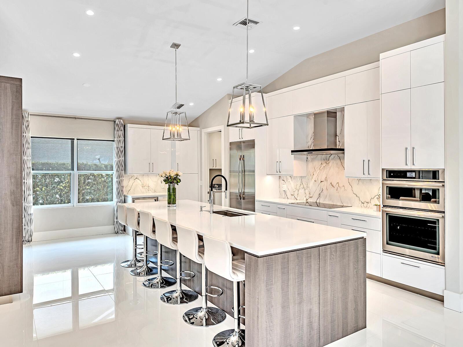 This stunning contemporary 4-bedroom home is located in the highly desirable Andover community. Set among palm trees and live oaks, the 2,754 sq ft residence offers serene lake views, a spacious screened lanai, and an open sports pool. The open-concept design, with soaring ceilings and oversized white glass tile floors, is ideal for entertaining. The custom gourmet kitchen features a 14-foot white quartz island and top-of-the-line stainless steel Jenn-Air appliances, including an induction cooktop and a wine fridge. The master suite boasts a luxurious spa-like ensuite, complete with a large soaking tub and a walk-in shower for ultimate relaxation. Andover is a charming, family-friendly gated community, located just minutes from downtown Delray Beach, residents enjoy convenient access