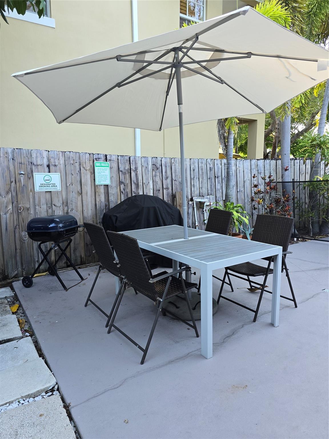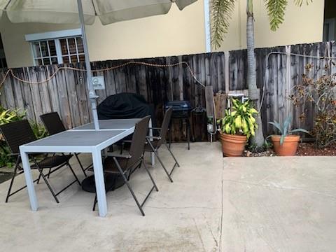 This is a fully furnished 1 bedroom apartment (utilities included) with a fully equipped kitchen, refrigerator, microwave, toaster oven, coffee machine, plates, bowls, glasses, utensils, king size bed, end tables, lamps, black out curtains in the bedroom, a desk, towels and 1 set of linen. It is located in a duplex. There is a designated parking space right outside your door. There are security cameras all around the house and a coin operated laundry room with 1 washer & 1 dryer. The backyard has a pool,2 tables with chairs a BBQ grill that needs to be shared with other guests. The property is located within walking distance (0.4Miles) of Broward Health on Andrews Ave and about 6 Miles to Nova University. Available starting today until the end of December 2025. Call for details.