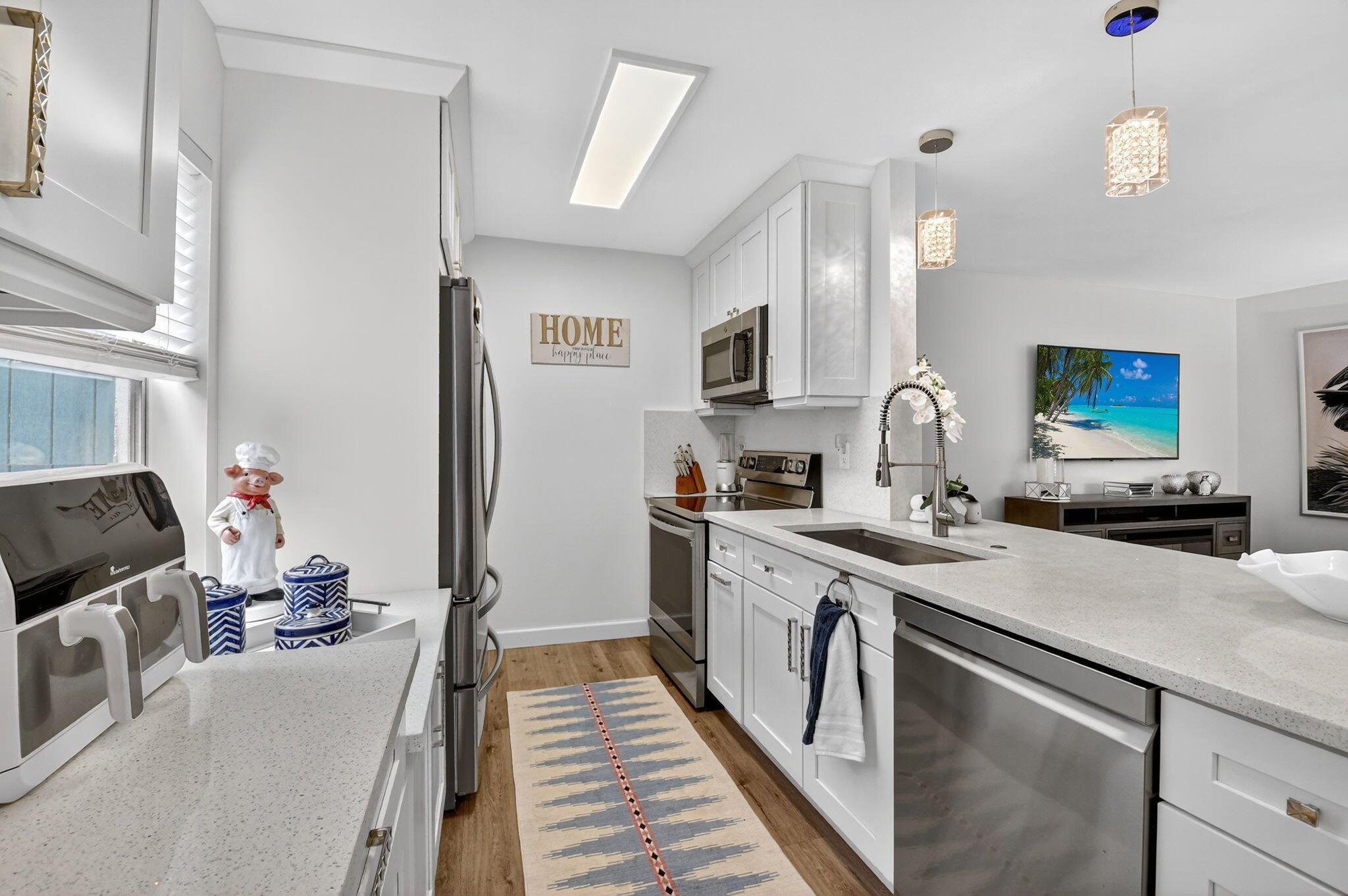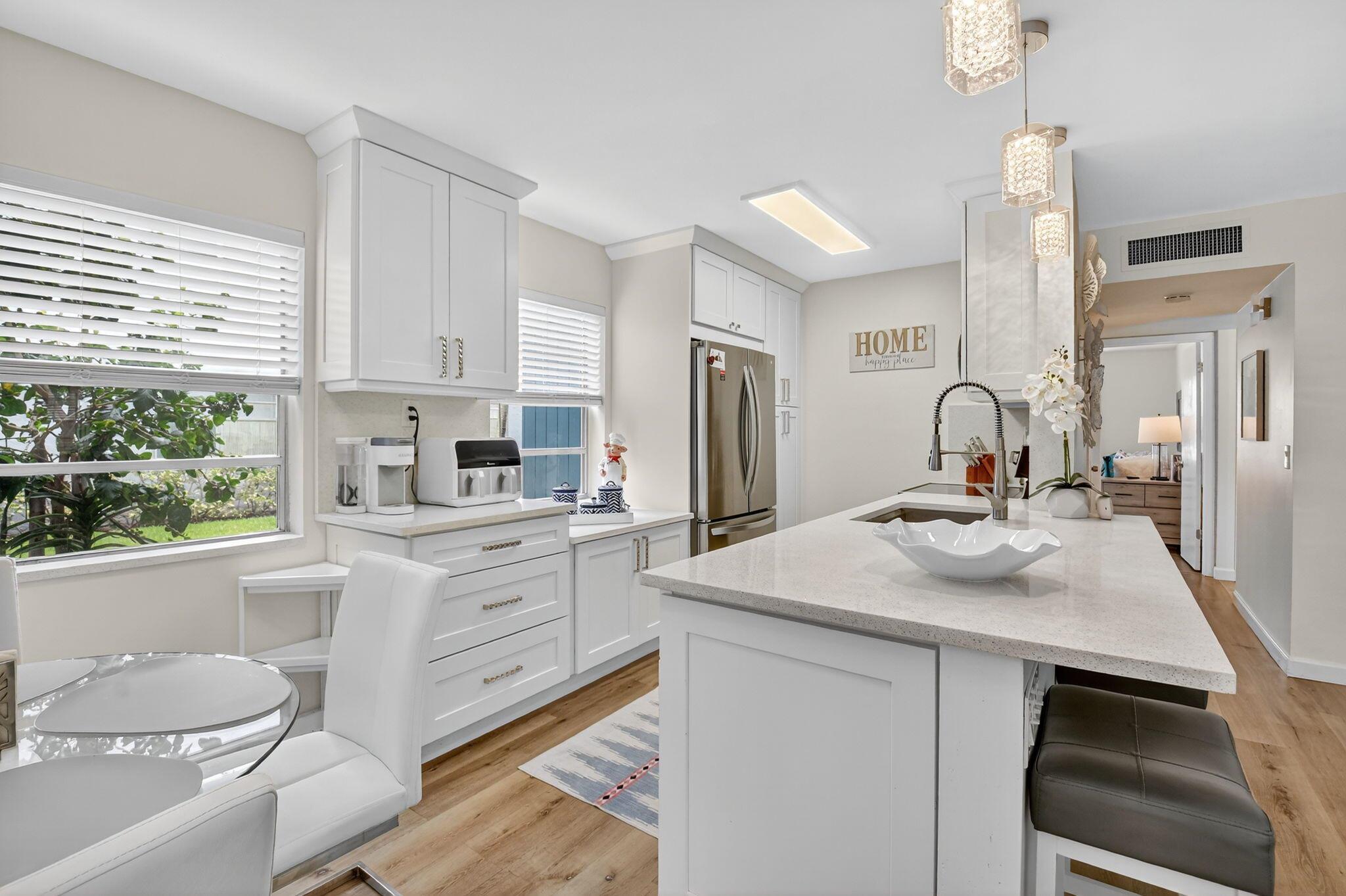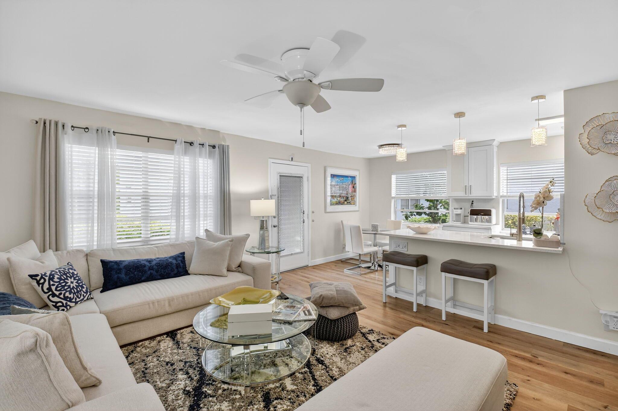 Come and live in this beautifully remodeled first floor condo for the 2025-2026 winter season. Tastefully decorated in a beachy color palette inside and out, with a relaxing garden view setting and a screen porch to enjoy the weather from. Enjoy the many amenities that the community has to offer, such as a clubhouse nearby with a pool, golf course. theatre, pickleball, tennis, hair salon, cafes, a bus service and so much more. Convenient to everything you need, such as shopping, restaurants, medical facilities, a hospital, and houses of worship. A short drive down Atlantic Ave. to downtown Delray, the beach and located in between two airports. Don't miss out on this one!