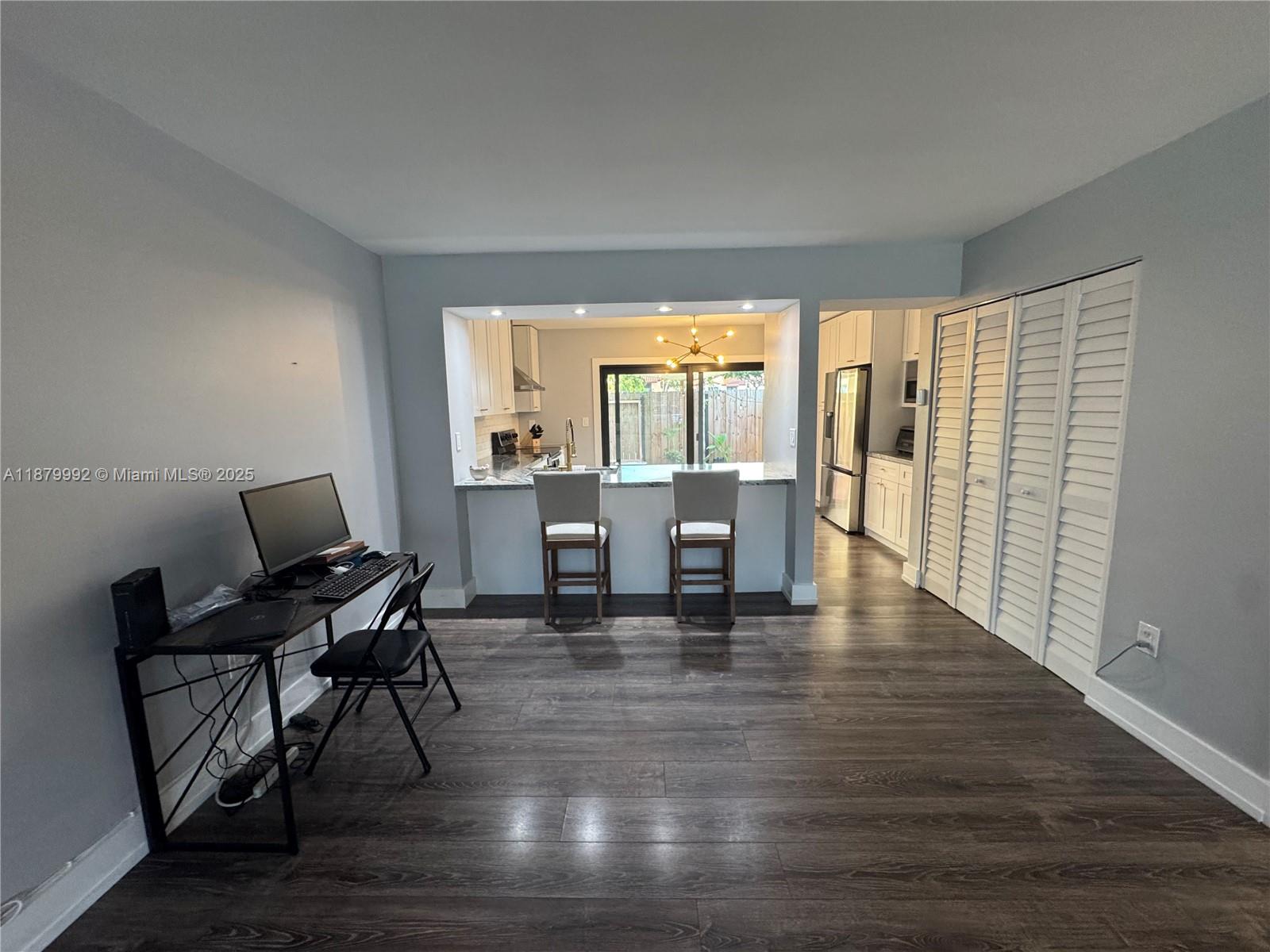 Welcome to this beautifully remodeled 2-bed, 2.5 bath corner-unit in the highly sought-after gated community of Dadeland Cove. This 2-story townhome features a spacious open-concept living and dining area, modern finishes, impact doors and windows, and a private fenced patio perfect for relaxing or entertaining. The updated kitchen boasts sleek cabinetry, stainless steel appliances, and plenty of storage. Both bedrooms are generously sized, with the primary suite offering a built-in closet and an en-suite bath. Additional features include in-unit laundry, upgraded flooring throughout, and assigned parking. Residents of Dadeland Cove enjoy 24-hour security, a community pool, and a prime location just minutes from Dadeland Mall, US-1, the Metrorail, top dining, and excellent schools.