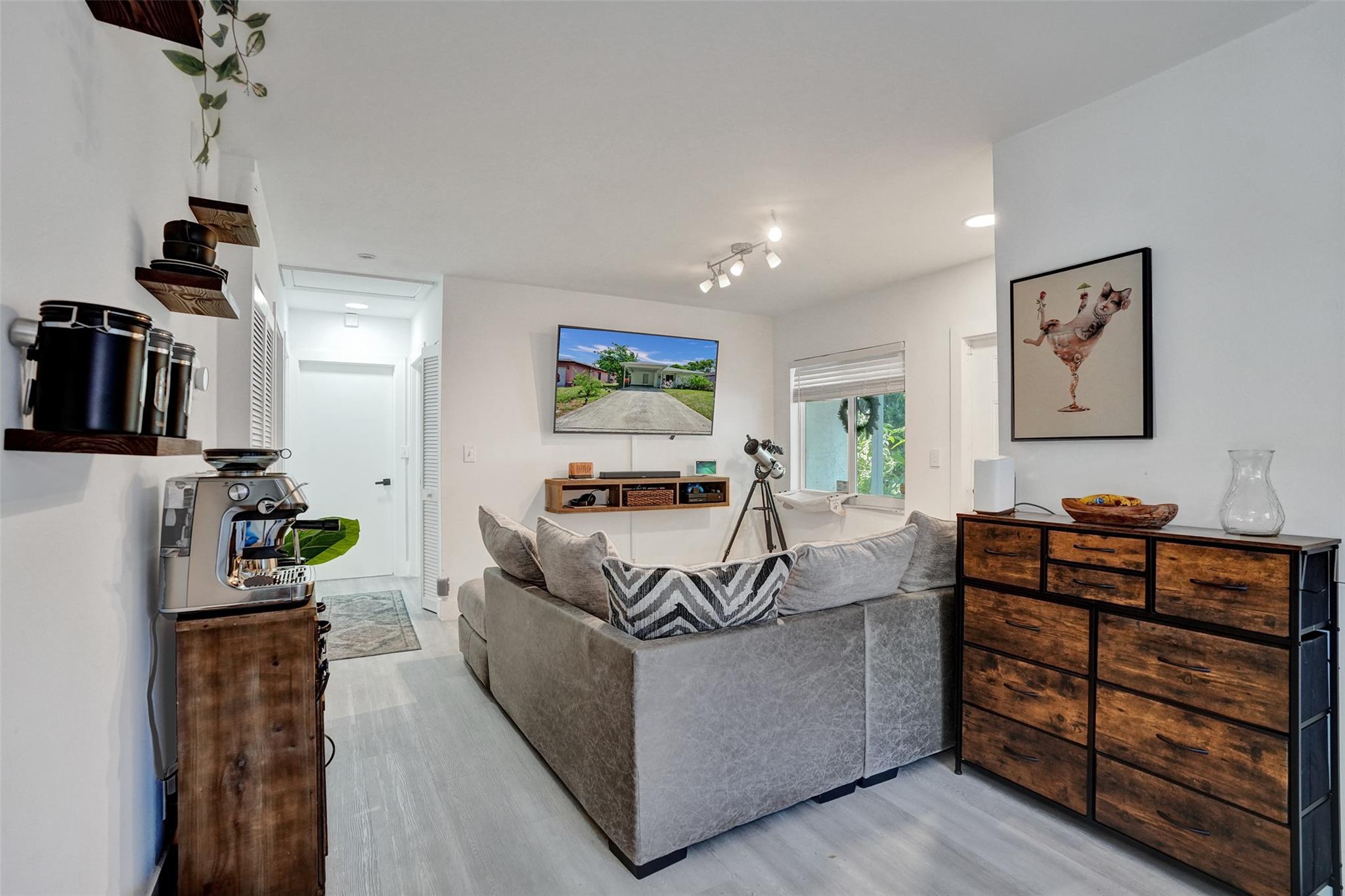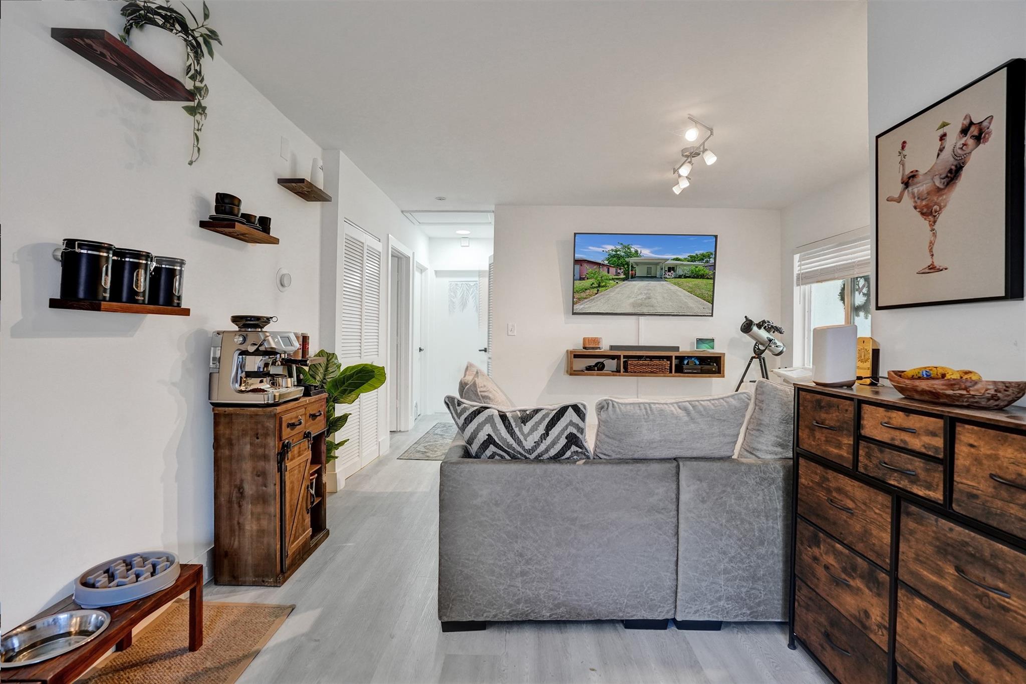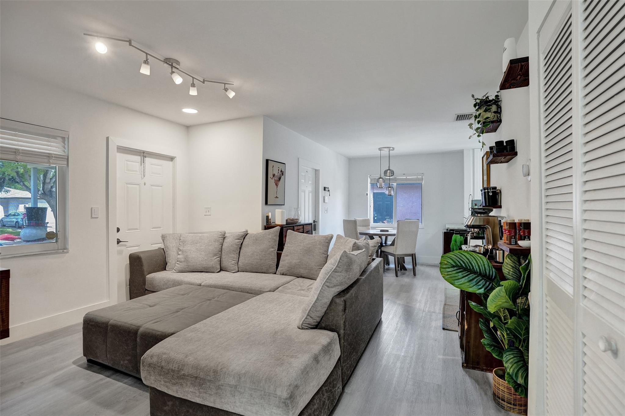 Stunning 3-bedroom, 2-bath home fully renovated from top to bottom and truly turnkey! This beauty features brand new flooring throughout, a gorgeous open kitchen with new cabinets, countertops, and stainless steel appliances, including washer and dryer. Both bathrooms have been completely redone with stylish new vanities, countertops, showers, and bathtubs. Additional upgrades include impact windows, fresh interior and exterior paint, new closet doors, new window treatments, new LED lighting, new ceiling fans, new water heater, 2017 roof, and newer A/C. Nestled on a quiet residential street with no HOA and plenty of curb appeal. Just minutes from shopping, dining, parks, schools, and major highways. Everything has been done for you—just move in and enjoy! Quick move in - No HOA approval.