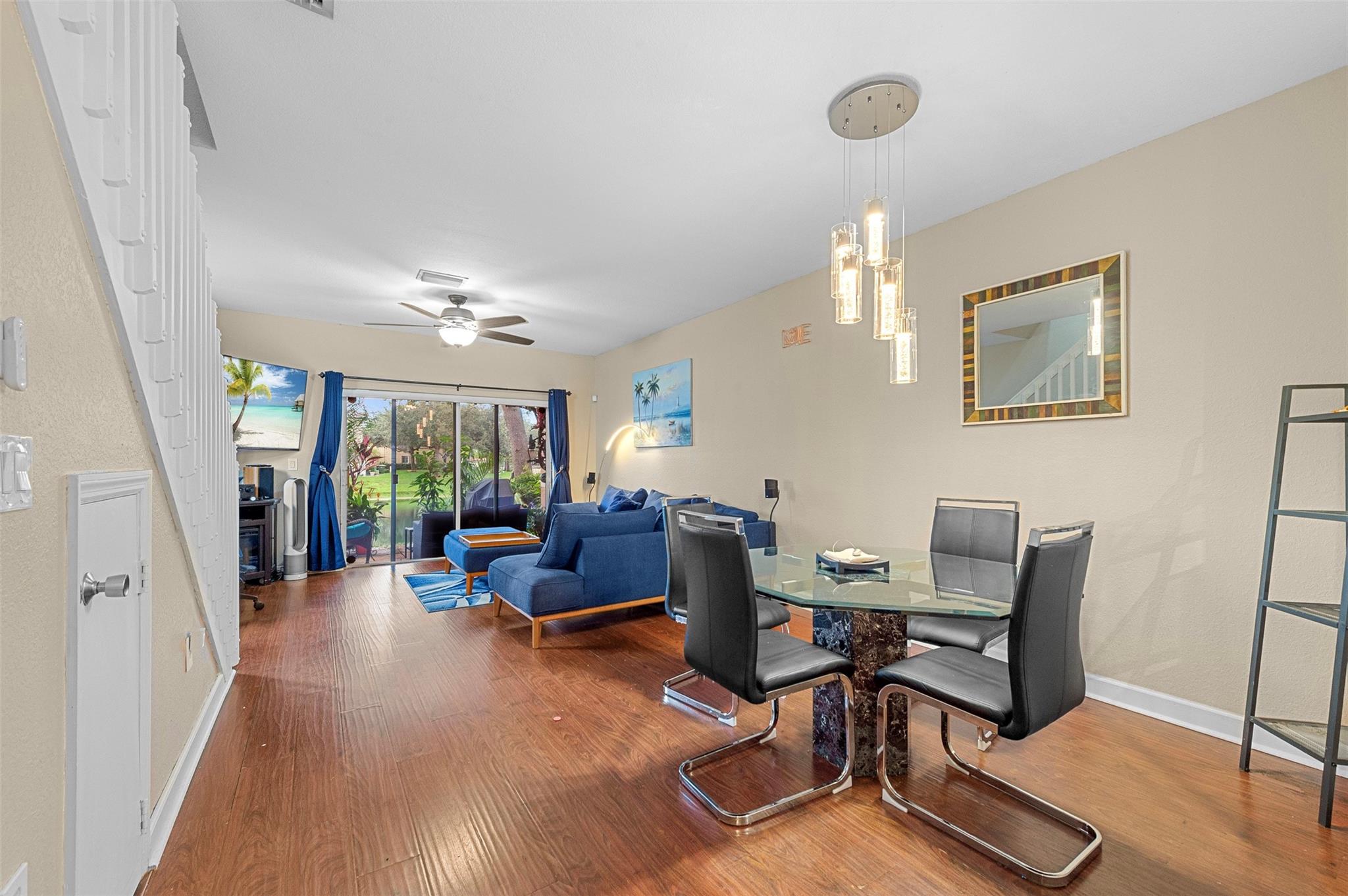 Welcome Home! 2b/2b & 1/2 bath updated townhome corner lot unit on the lake. With a beautifully updated & spacious kitchen that includes NEW appliances, upgraded light fixtures and wood floors throughout the unit and more. A bright combination of dining & living room with the kitchen featuring a breakfast area, pantry, & snack counter! Two large master suites upstairs each providing full bathrooms, spacious upgraded walk-in closets with lake view. Washer & Dryer In Unit! First floor features storage area under the stairs, as well as a utility closet on the patio. Family friendly neighborhood, close to the Sawgrass Expwy, Sawgrass Mills Mall, Publix, restaurants and downtown Tamarac. With 2x assigned parking spots (#3-1) right in front unit. Pets under 30lb ok.