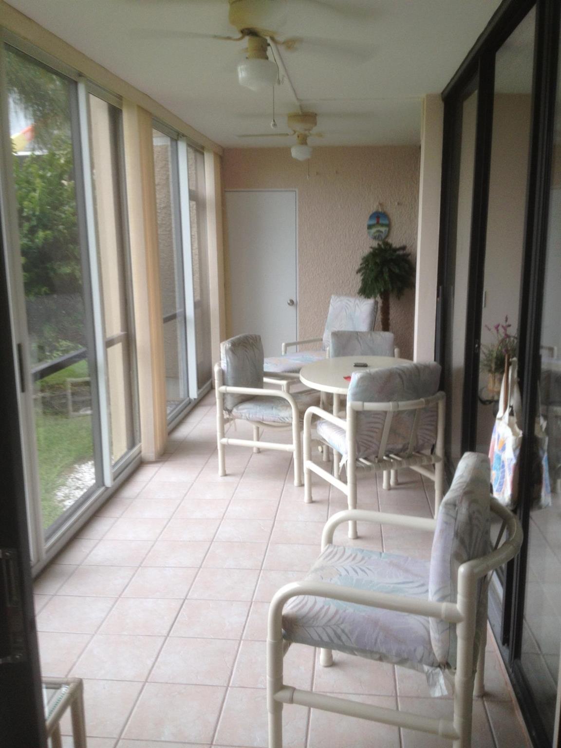 Tastefully furnished South Florida seasonal rental in Fairwinds Cove. Condo is on first floor with indoor patio overlooking the water. Features 2 bedrooms and 2 baths with a King in master and bunk beds in the spare. The bottom bunk is a full size and top is a standard. Electric reclining sofas in living room for added comfort. Community has a heated pool, clubhouse with full kitchen, meeting room, fitness room, billiards and shuffleboard. Excellent location within walking distance to the beach or fish from the docks in the community. Close to downtown shopping and restaurants! HOA REQUIRES 3 MONTH minimum LEASE