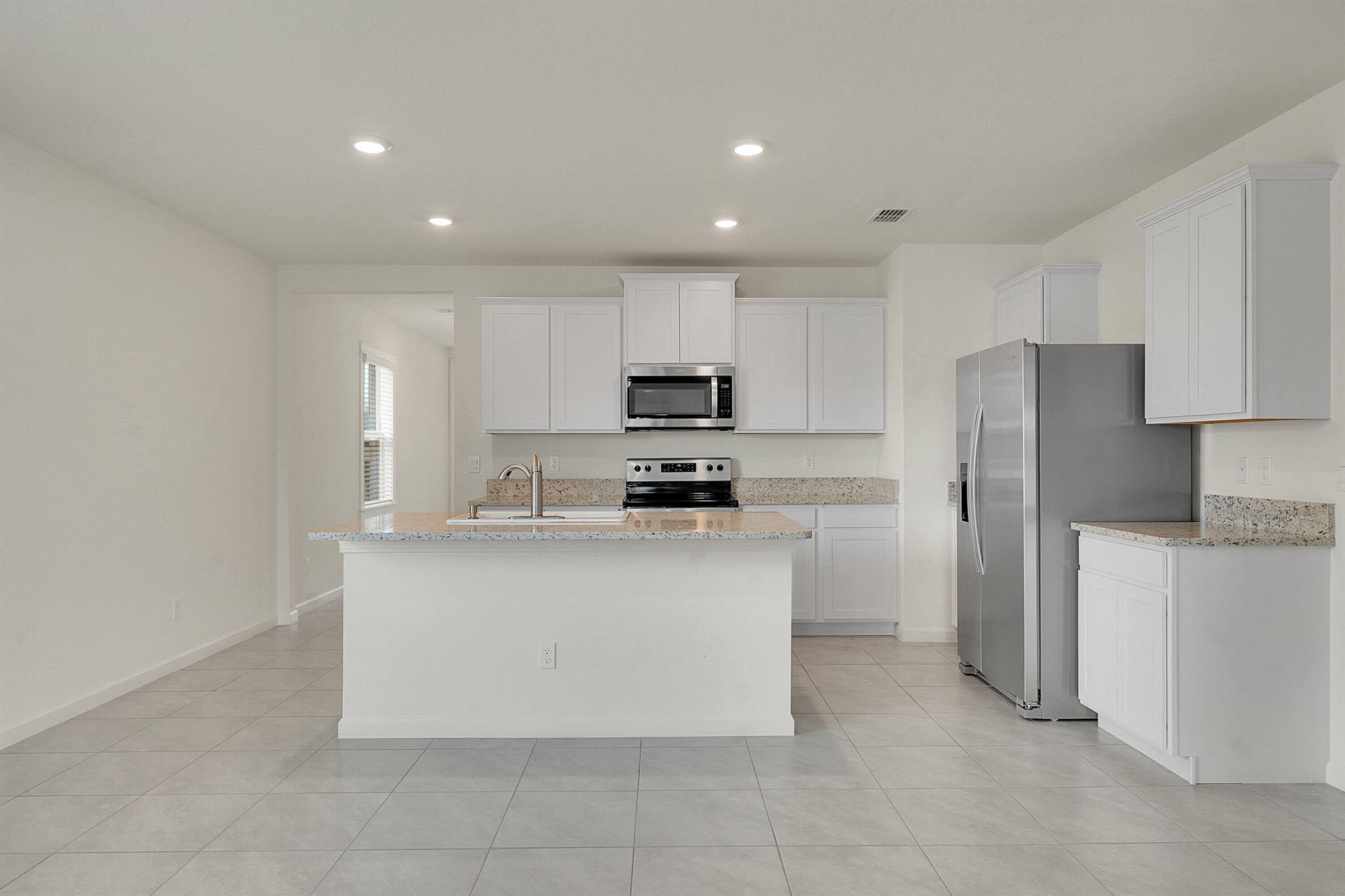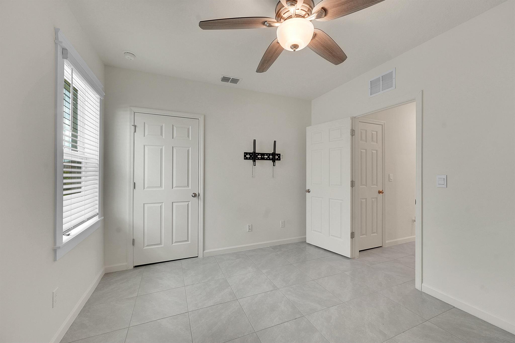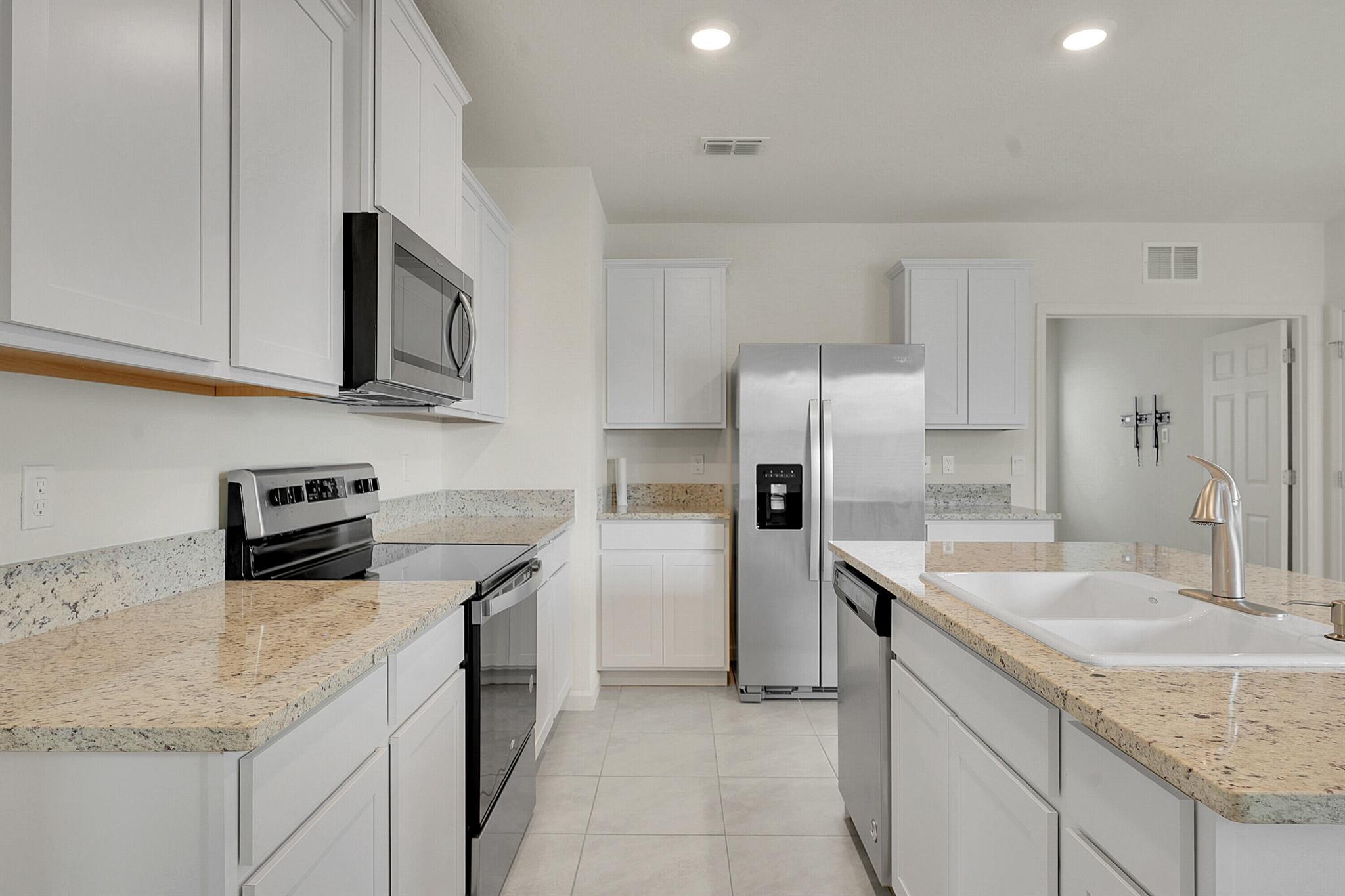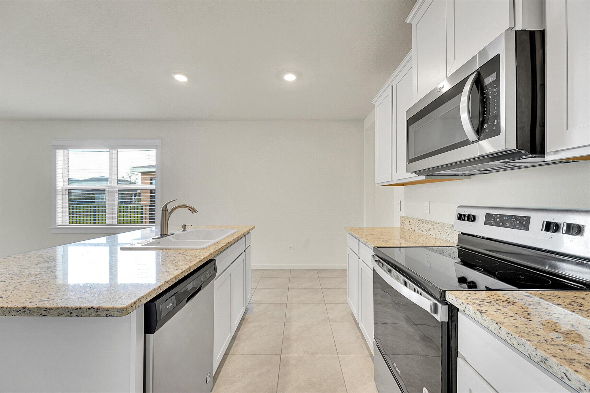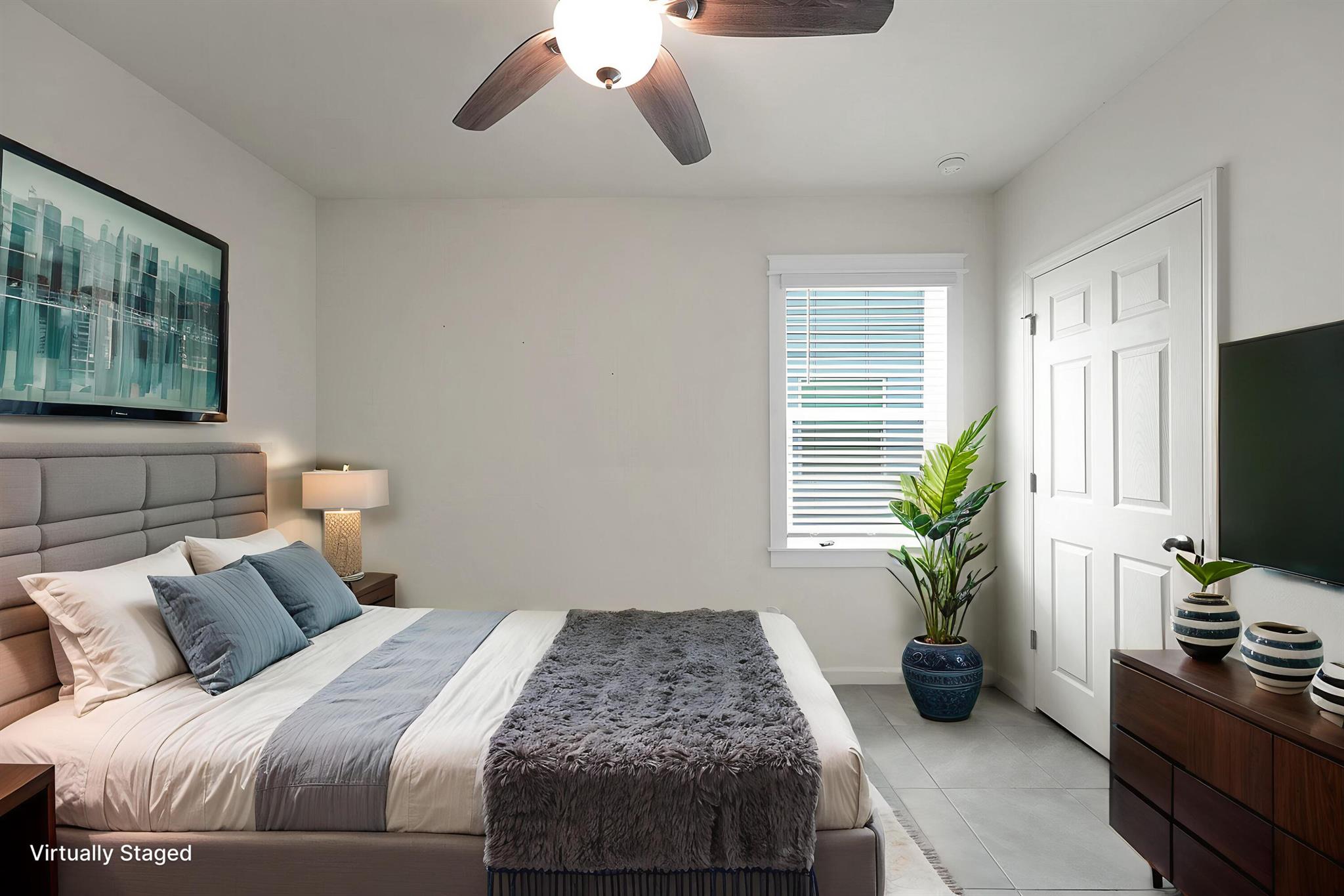 Beautifully maintained 3BR/2BA solar-powered home in Crosstown Commons with tranquil lake views and tile flooring throughout. The open-concept layout includes a modern kitchen with white cabinetry, stainless steel appliances, center island, and spacious living and dining areas. The primary suite features dual vanities, walk-in shower, and walk-in closet. Enjoy peaceful evenings from the screened patio overlooking the lake, can peacefully watch sunset. Community amenities include a pool, playground, and sidewalks. Low HOA. Conveniently located near I-95, Tradition, and St. Lucie West shopping and dining.
