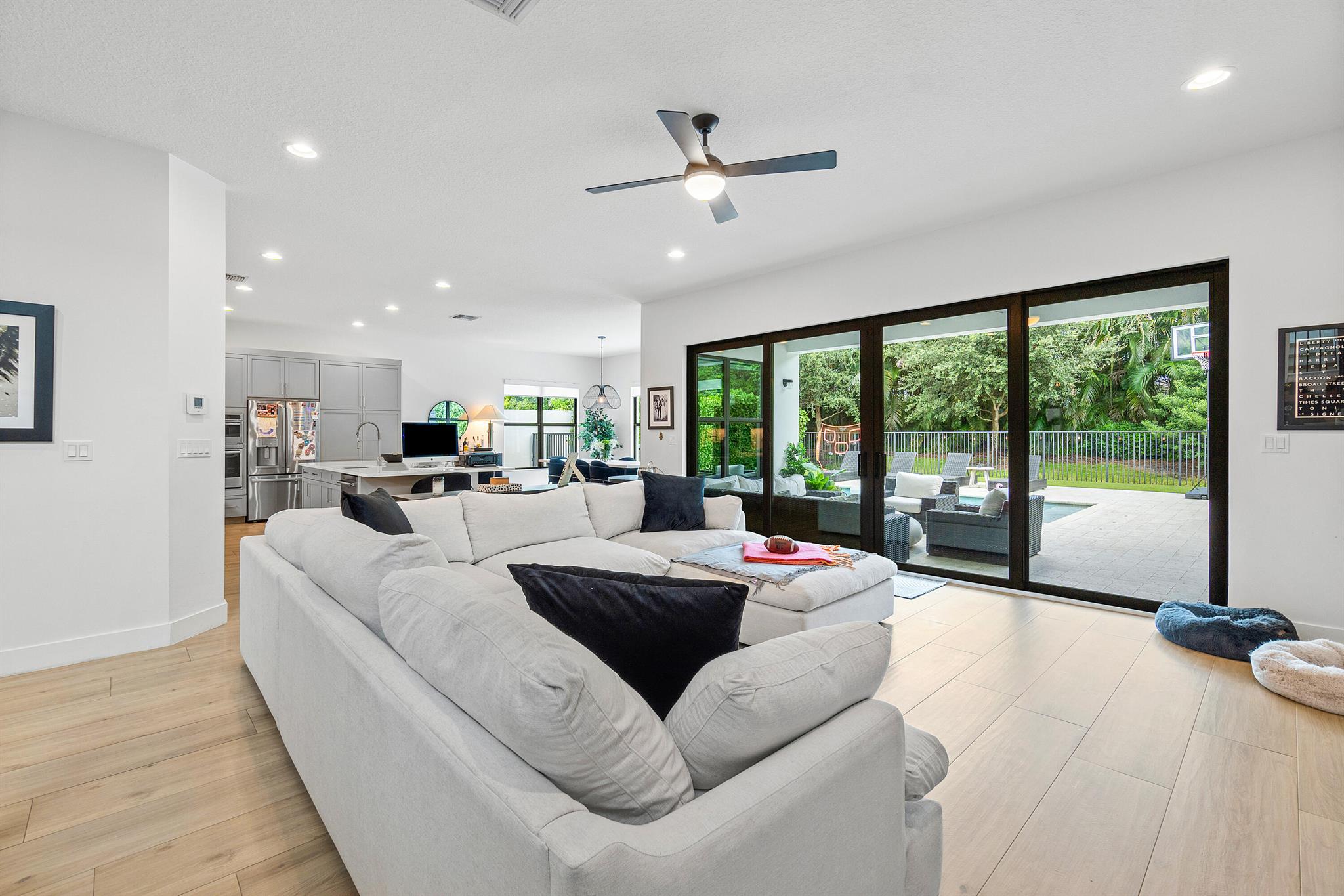 Fantastic Mariana Model two-story pool home in LOTUS offered for annual rent. 5 bedrooms (one bed/bath on the first floor; primary on 2nd floor), 5 bathrooms, large loft area with balcony, second floor laundry room with sink, bonus room: this space can be a game/pool table room, a bar or a movie room! Chef's Kitchen with huge island and pantry flows into the dining and family room with coastal built-ins and overlooks the backyard.The private oversized pool with sun shelf and deck, child proof pool fence, pool heater, clusia hedge for complete privacy and turf make it easy living & care free maintenance. No carpet anywhere but beautiful ceramic floors, LVT on stairs & 2nd floor. epoxy sealed garage floors.