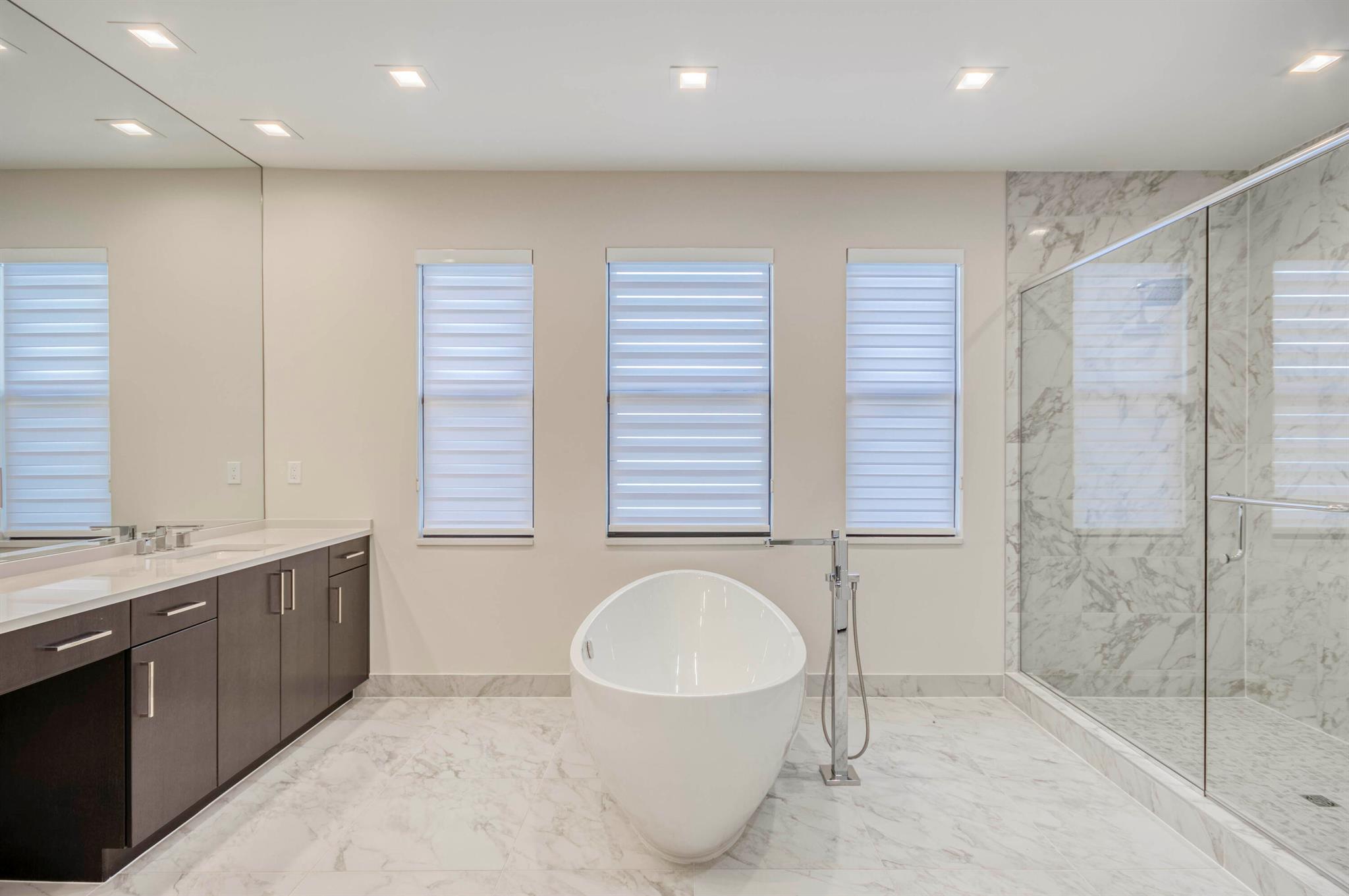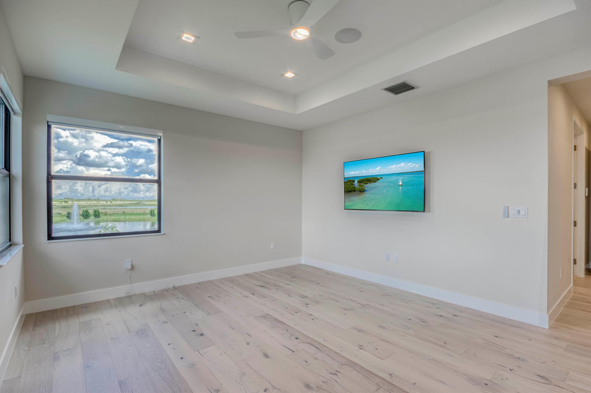 Unmatched premium upgrades! Located on over a quarter acre, this stunning 4BR + office, 5BA lakefront home with 3-car garage on a private cul-de-sac has it all! Features include porcelain tile on the first floor, engineered hardwood upstairs (NO carpet), upgraded cabinetry, quartz countertops, full backsplash, upgraded appliance package with gas cooktop, and oversized island. Enjoy the heated pool & spa, fenced yard, summer kitchen, Sonos surround sound, designer lighting/fans, designer shades, and TVs mounted inside & on the lanai. Avenir offers resort-style amenities: clubhouse, multiple pools, 12 pickleball & 9 tennis courts, fitness center, restaurant, bar/lounge, spa, splash pad, playground, and miles of scenic trails. Minutes to beaches, golf, dining & shopping in Palm Beach Gardens