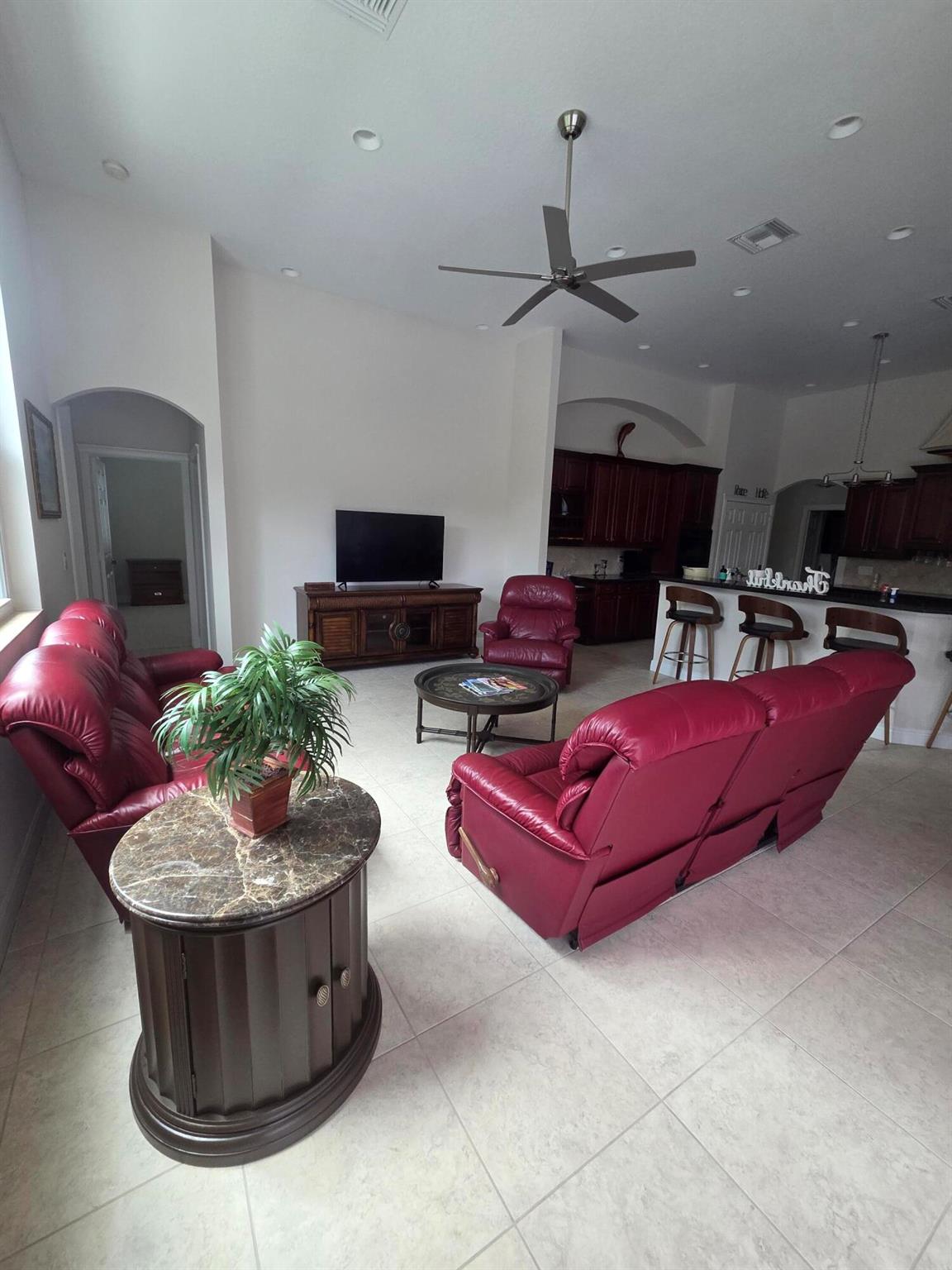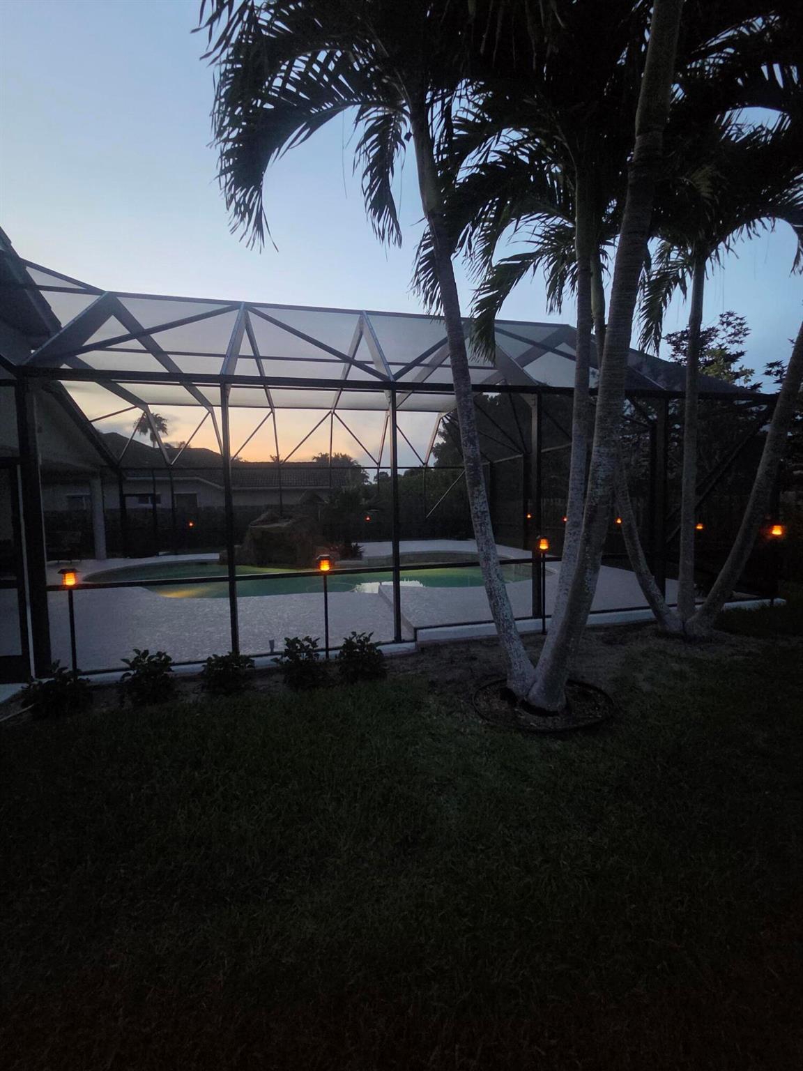Beautiful, private waterfall grotto pool home is ready to be your oasis. With 4 BR's, 3 BA's, 3 car garage, LR, DR, FR and an office. Large fenced in yard lined with Podocarpus hedge for total privacy and a mature avocado tree, this home checks all the boxes. Solidly built with foam filled CBS construction with double pane hurricane windows, it features 9 ft ceilings in the BR's/BA's, 12 ft ceiling in main rooms and 14 ft ceiling in the entry making all the rooms feel huge. The oversized saltwater pool features a sun shelf, waterfall grotto with seating, and new heat pump. Freshly painted and upgrades galore. Situated on a quiet cul-de-sac street with no power poles or high voltage lines, just 3 miles from I-95. In Martin County with a Jupiter address, the neighborhood offers tennis