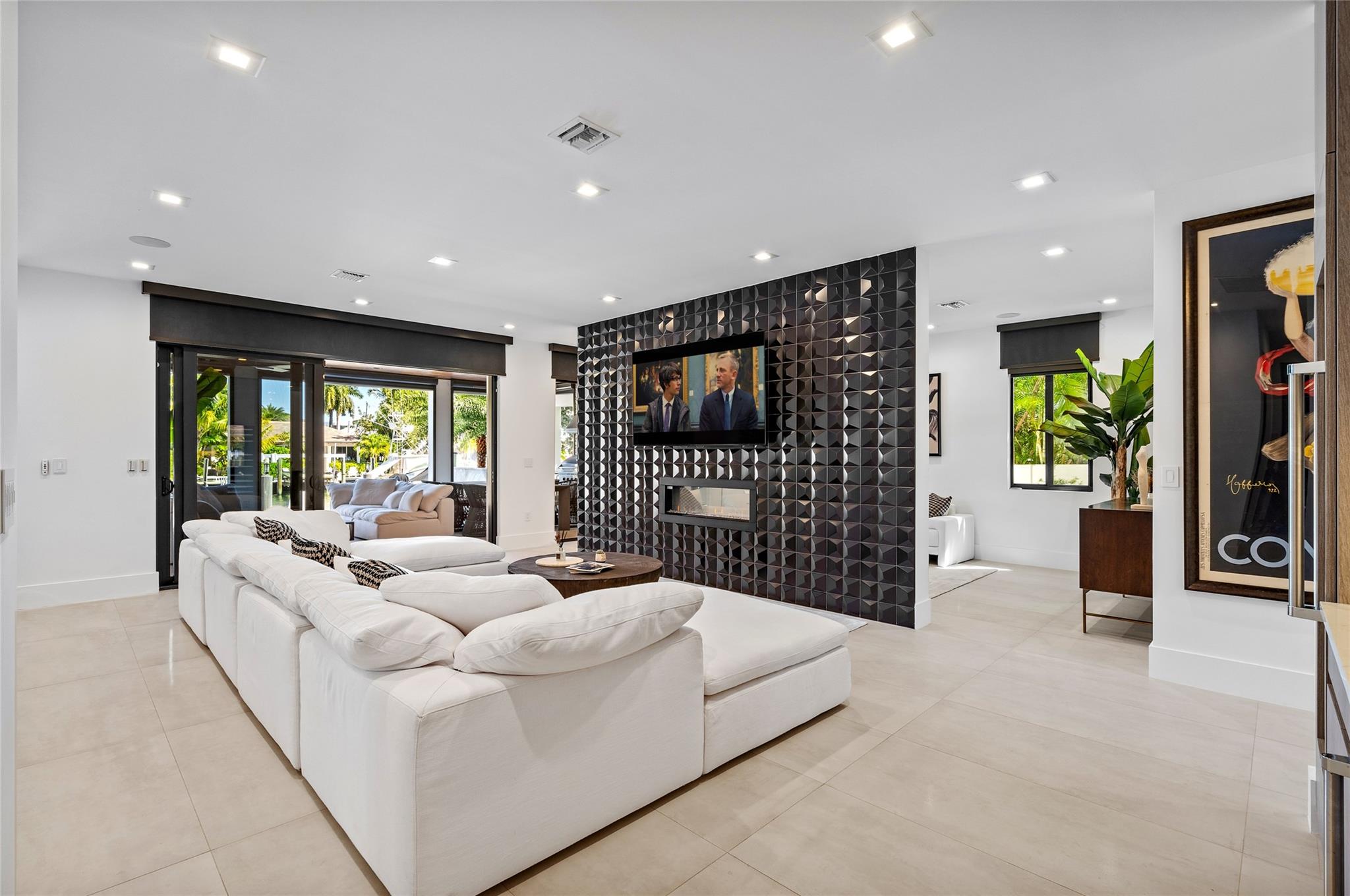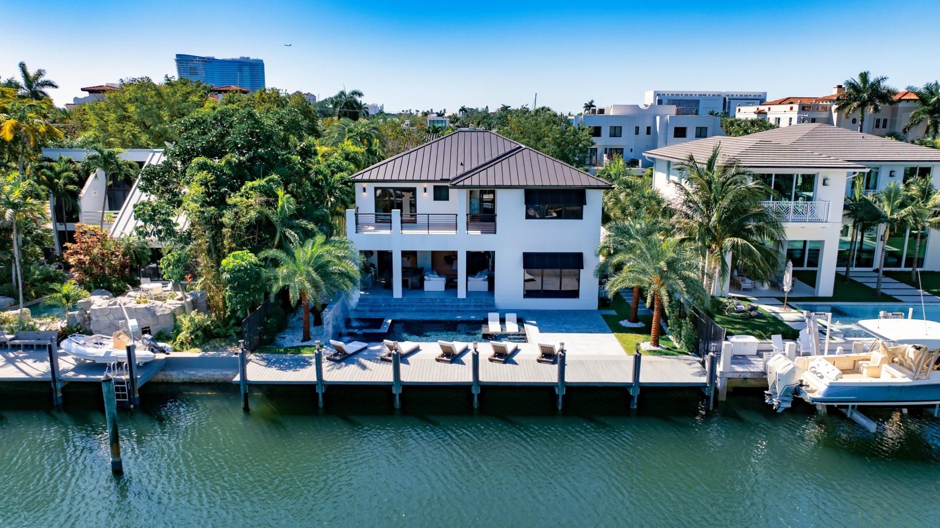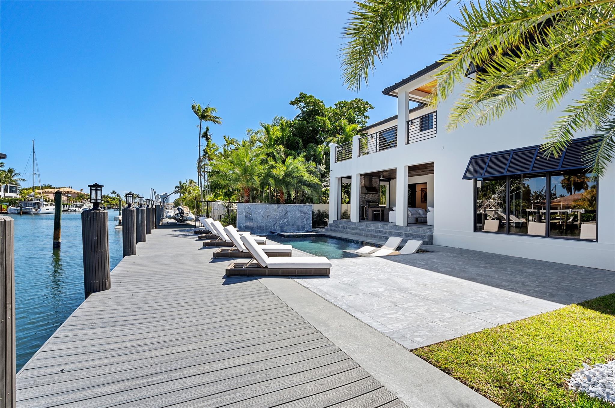 Available Seasonal or Annual. Turn-Key RH Styled & Furnished New Construction Estate sited on 65' of deepwater in Rio Vista. This 5 bed/5.5 bath gated residence has 5,122 total sqft of seamless indoor-outdoor living. Chefs kitchen, 6 burner Viking gas stove/griddle, Viking double refrigerator/freezer, 2 Viking dishwashers, Bosch built-in coffee/espresso maker, European cabinetry, & 24" Thermador wine column & ice maker. Smart-house tech: electronic shades, double-sided linear electric fireplace, & hot steam shower! Enhanced closet design & expansive covered summer kitchen/loggia with gas grill, refrigeration, & impressive electric phantom screens. A heated salt-water pool/spa with cascading waterfall features, set within marble decking, leads to the new composite dock & raised seawall