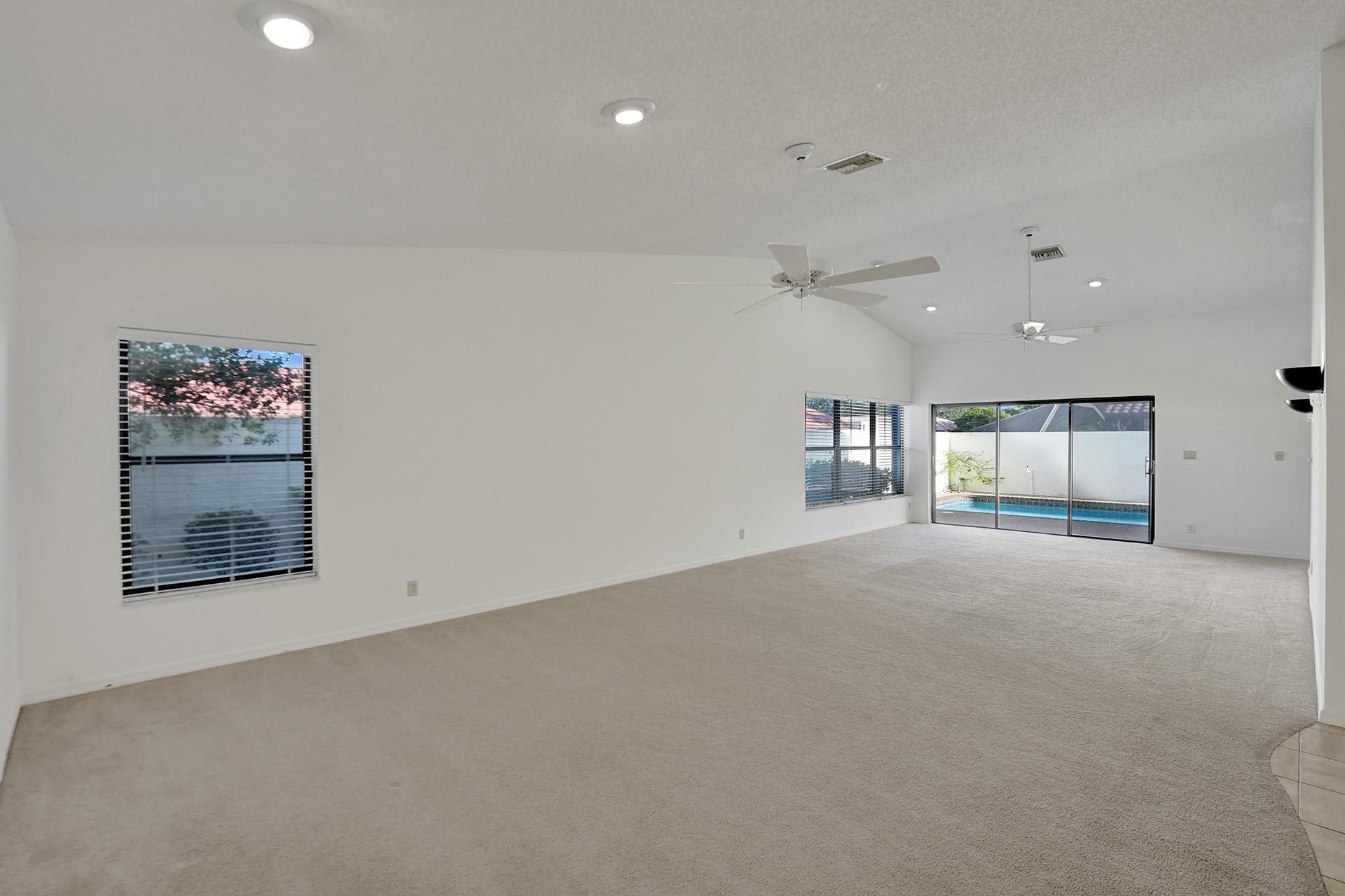 A rated schools in the heart of Boca Raton! One story 3 bedroom 2 bathroom single family home has a private courtyard, pool and covered patio area in the lovely gated lake community of Pradera. The house is light and bright with a SW exposure, oversized great room with vaulted ceilings and a split bedroom floor plan. Full 2 car garage and complete hurricane protection. The home is walking distance from brand new A-rated Verde Elementary School (K-8), and close to the upscale Boca Raton Mall, restaurants and easy access to I-95. RENT INCLUDES: Upgraded cable TV, internet, security alarm system, pool service, exterior landscape outside courtyard walls. No smoking or pets allowed. Heated community pool. Now showing by appointment!