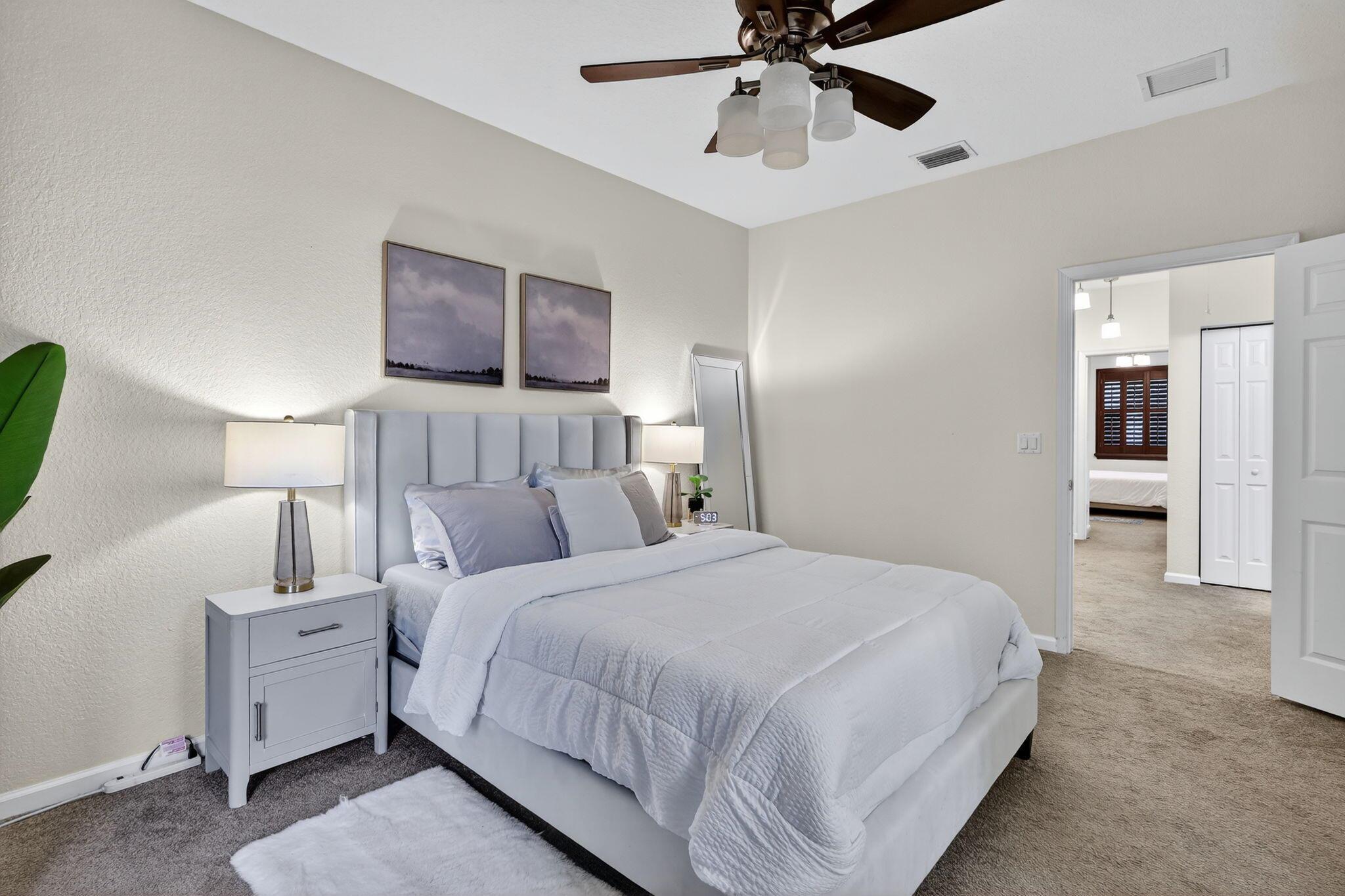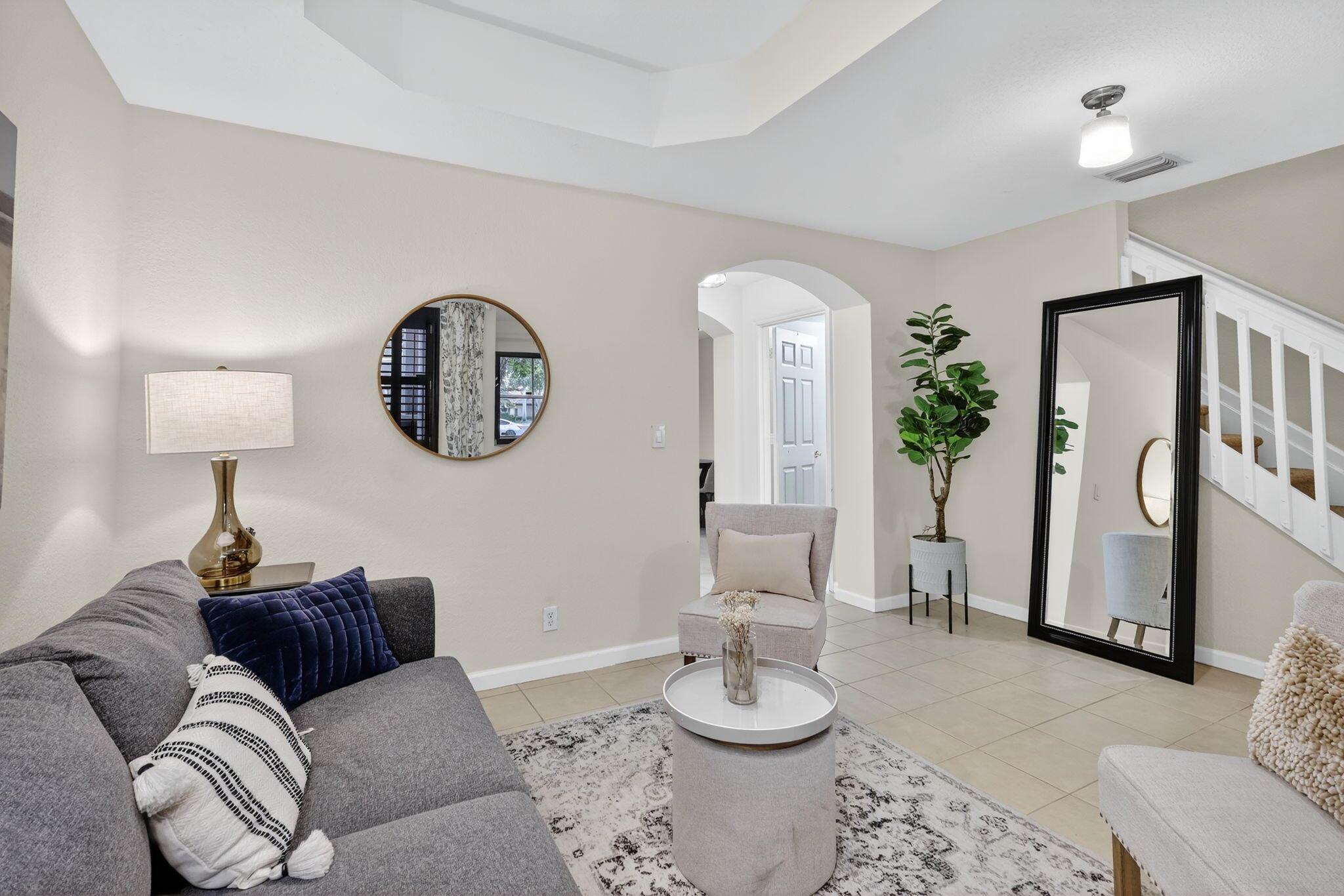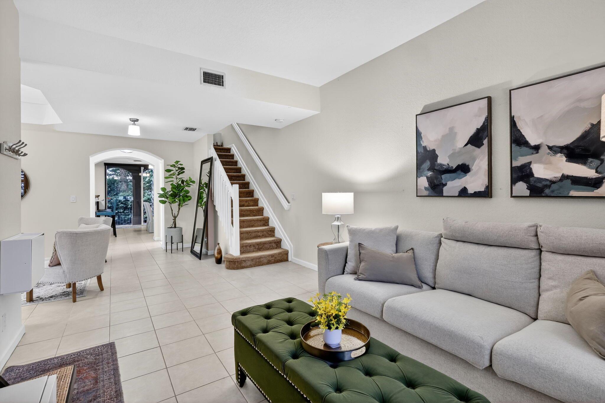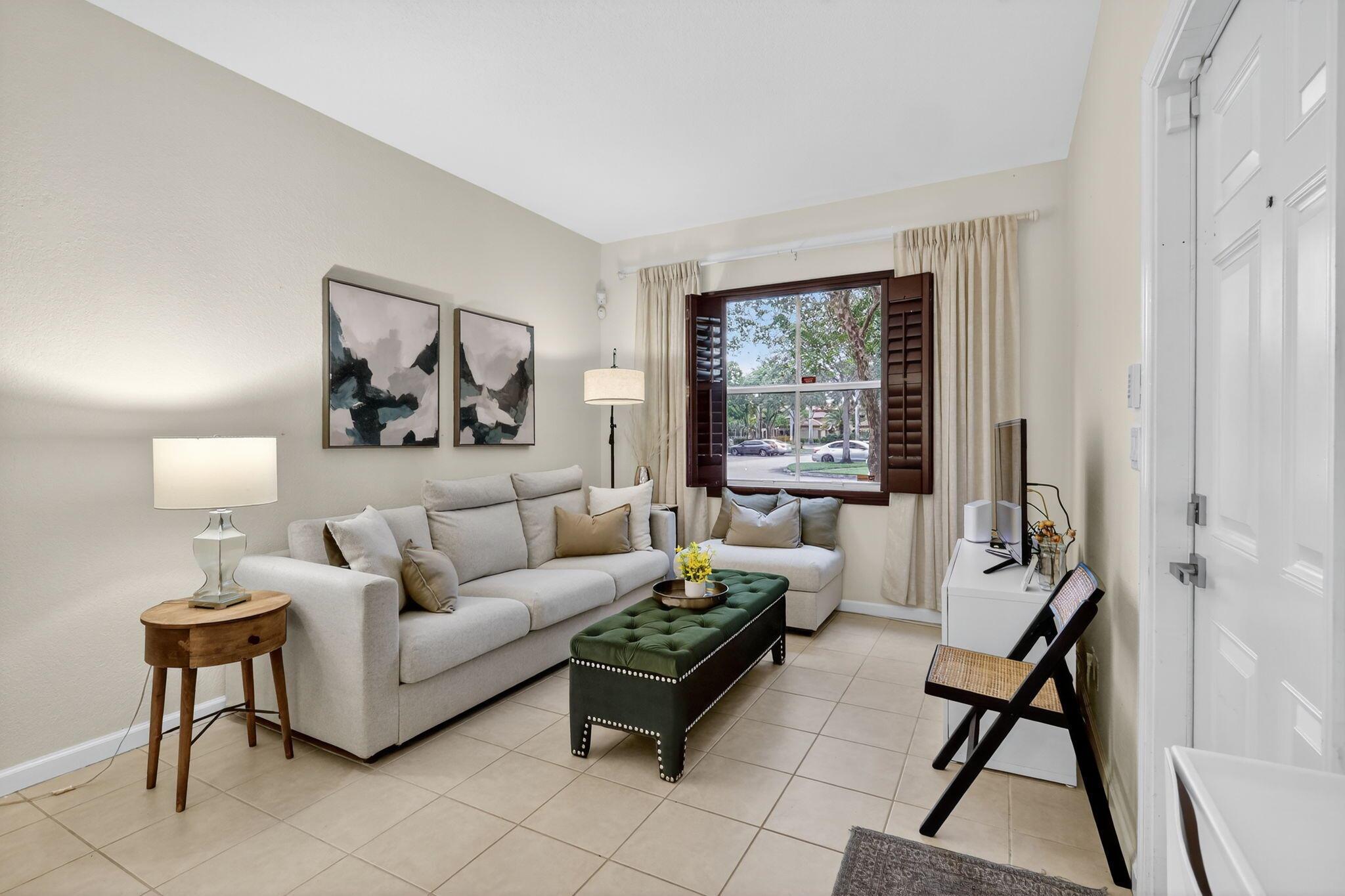 Beautiful 3-bedroom, 2.5-bathroom townhome located in the gated community of Links at Emerald Dunes. With 1,607 sq. ft. of living space, this home offers a bright open floor plan with tile on the main level and a spacious kitchen with dishwasher, microwave, and plenty of cabinet storage. The primary suite features a large walk-in closet and a private balcony with peaceful garden views. Community amenities include a resort-style pool, clubhouse, sidewalks, and secured gated entry. Conveniently situated near the Turnpike, shopping, dining, and entertainment, this home combines comfort, style, and an ideal location in West Palm Beach.
