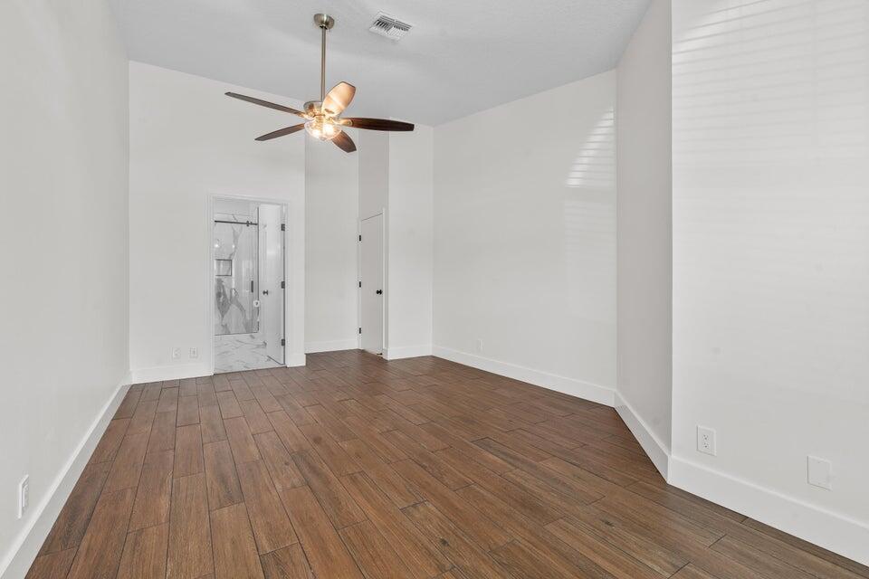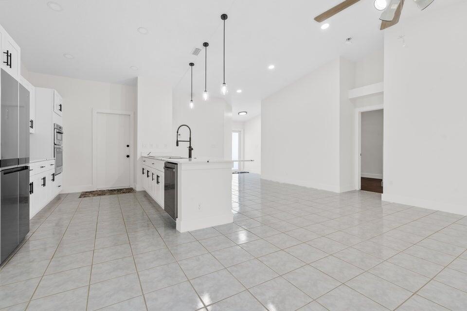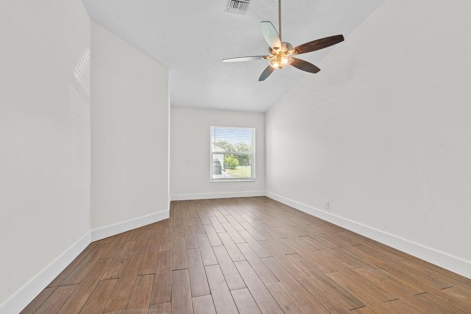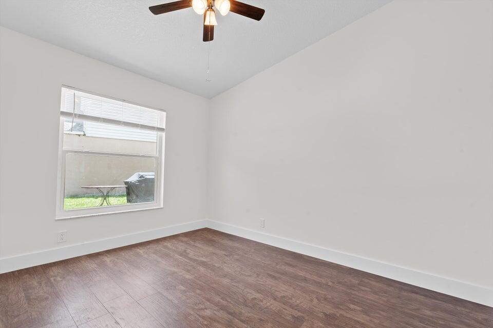 Move in with only first month and security deposit, fast approval, pet friendly. This immaculate single-family home boasts 3 spacious bedrooms, 2 bathrooms, and a 2-car garage. Step inside to an open-concept living area with high ceilings, freshly painted for a modern touch. The heart of the home, a beautifully updated kitchen, awaits with sleek quartz countertops, brand new stainless appliances, and timeless wood cabinetry. Elegant marble and warm wood flooring stretch throughout the home, leading you to the expansive master bedroom, complete with a walk-in closet and an en-suite featuring a walk-in shower. Enjoy peace of mind with a new roof, A/C installed in 2022, and a Water Heater from 2021. Step outside to a large backyard.