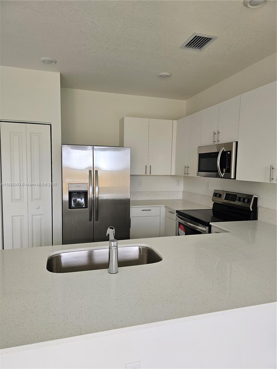 TOWNHOME. 3 bedrooms, 2.5 bathrooms, walk-in closets, living room, brand new kitchen, cozy family room. Appliances, sidebyside fridge, electric water heater, self-cleaning oven, washer & dryer. HIGH-TECH HOME CONNECTIVITY Wi-Fi system, ring alarm security kit, video doorbell, listener, smart thermostat. Internet Fiber across the property. GATED COMMUNITY uses access cards for additional security, club house with gym & pool, children's park just front the property. Across the street from Homestead Air Reserve Base. Amazon Fulfillment Center, Baptist Health Hospital, FEDEX Distribution Center, Homestead Speedway, all within a 10 minutes drive.