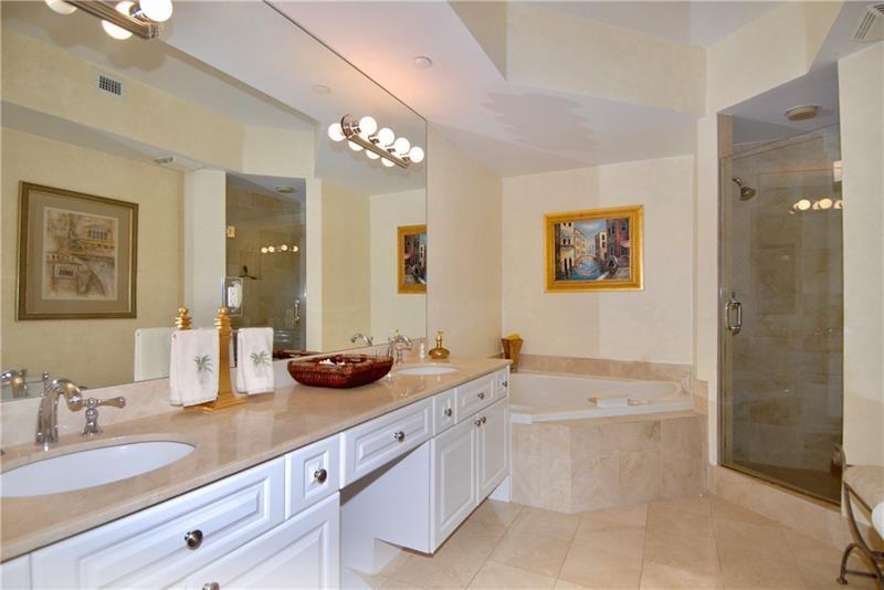 Two bed/ two bath split plan beautiful fully furnished apartment with marble throughout main living, dining, kitchen, laundry & balcony. Floor-to-ceiling windows fitted with custom Silhouette Blinds; both bedrooms fitted with wood Plantation shutters. California King bed in Master & King (twin conv.) Guest bedroom. SE exposure facing pool and tropical lanai with partial ocean views. Enjoy all the amenities of this resort-style beachfront property- 2 swimming pools, a poolside cafe, jacuzzis, beach cabanas, beach attendants, state-of-the-art gym, locker rooms with steam and sauna, clay tennis courts, billiard room, brand new renovated Lobby, Concierge, and 24 hour Security team. Also available for a year asking $6,500/month.