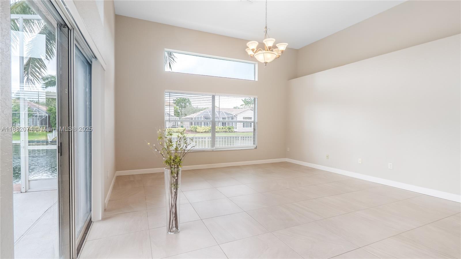 Elegant spacious pool home with wide water view features 4 bedrooms and 3 full bathrooms. With a good credit only 2 mos deposit to move in instead of 3 mos! Ones you enter you are greeted by the 12' volume ceiling. Upgraded kitchen with exotic granite counter top and 42" high cabinetry, waterfall sides kitchen island, SS appls including brand new range and microwave! Spacious principal bedroom has large customized walk-in closet, upgraded bathrooms with roman tub and shower. Pool has LED multicolor lighting brining fun when gets dark. Across from North Community park. Excellent location and schools. Close to restaurants, parks, shopping and highways.Drive to the beach in less than 30 mins