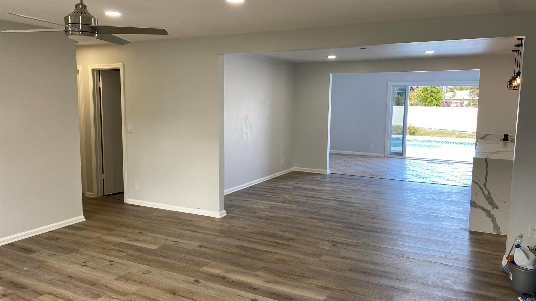 Welcome to this stunning single-family home in the heart of East Boca Raton, located just 1 mile from the beach (dog-friendly access!) and only 5 minutes from I-95. Walking distance to two synagogues. Set on a rare half-acre corner lot, this property combines modern living with unbeatable convenience. Inside, you'll find a completely remodeled and freshly painted interior with a flexible layout to fit your lifestyle. The home features 4 bedrooms and 2 full bathrooms, including: A remodeled kitchen with quartz countertops, stainless steel appliances, and custom cabinetry. A spacious living and dining area with abundant natural light. Full-size washer & dryer for your convenience. 2-car garage with plenty of storage. The owner is currently using the property as his private office: one bedro