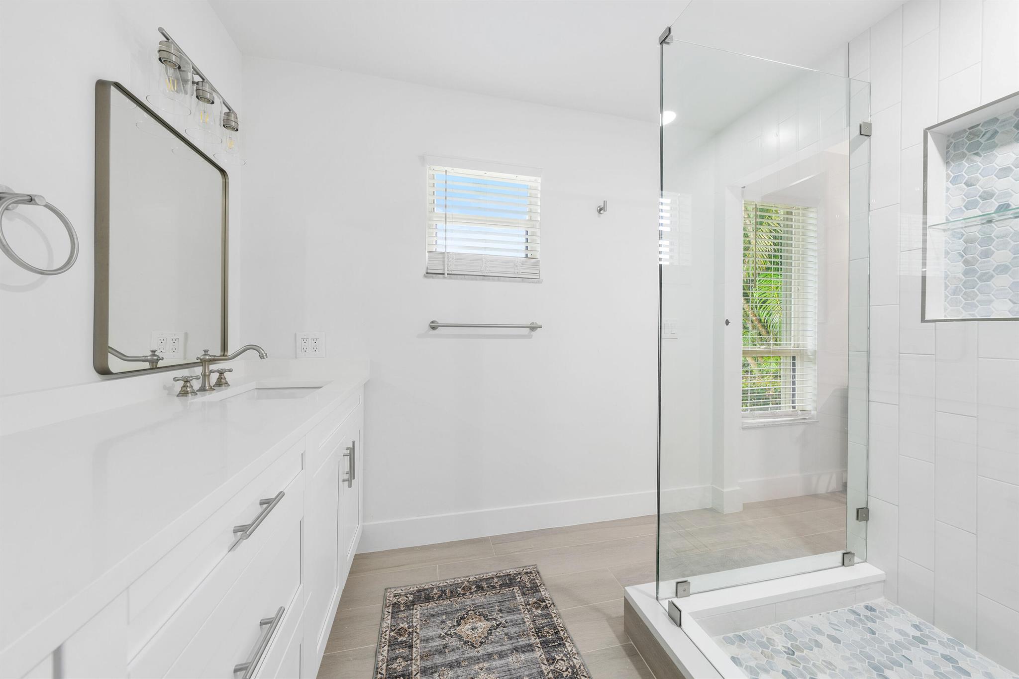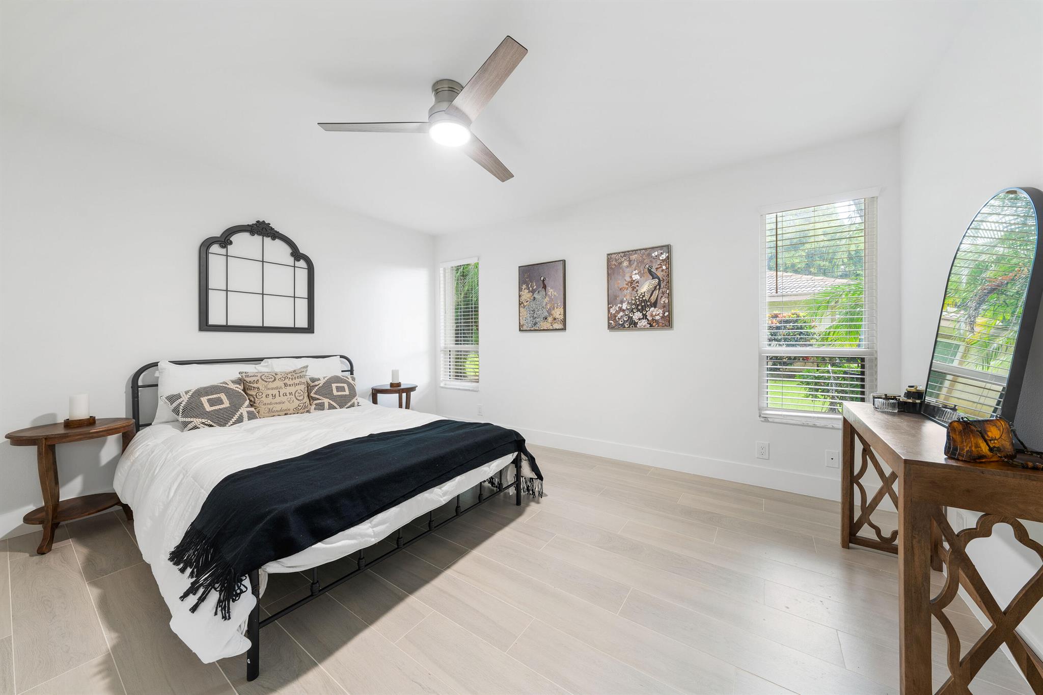 Renters! Landlord will customize to your needs. Discover your dream rental in the exclusive Eastpoint Country Club! This stunning 3-bedroom home has been fully renovated from top to bottom. Step into a designer kitchen featuring quartz countertops and brand-new appliances, perfect for your culinary adventures. You'll love the gorgeous new flooring and stylish lighting throughout, along with beautifully redone bathrooms. The home boasts abundant natural light, adding warmth and vibrancy to each room. An extra-large garage provides plenty of storage, and accordion shutters offer peace of mind. Plus there is a huge private screened patio in the backyard. Don't miss out on this gem!