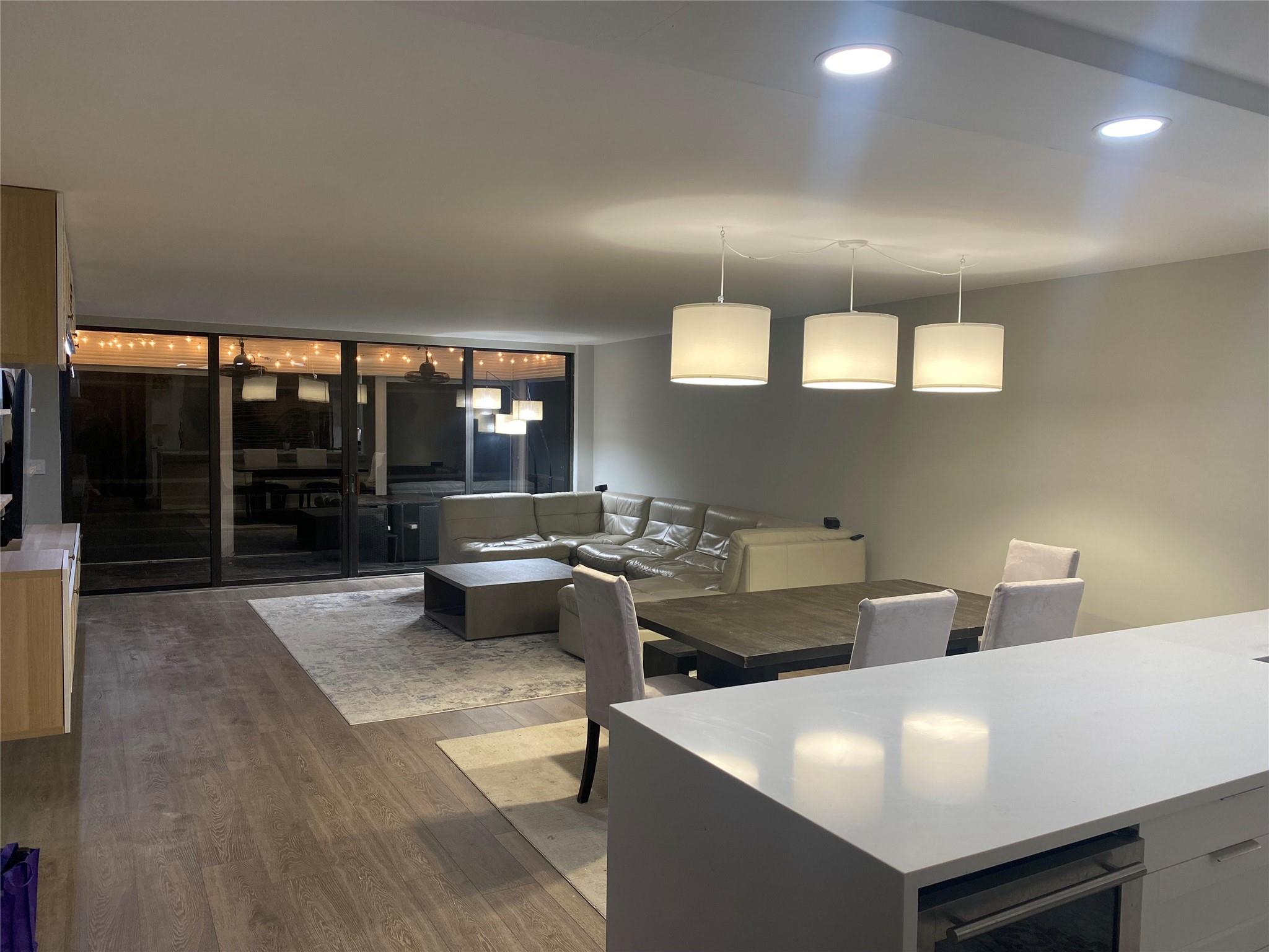 This unit comes completely furnished, not AI generated: completely refinished condo - Open floor plan, new everything, all baths redone, new terrace Golf/Country Club club membership NOT required (but a bargain) Condo association pool 50 yards away. All lights and thermostats are internet connected (Google) and voice (and manually) controlled Induction cooktop (includes all new cookware) Modern chefs sink, push button disposal Three fridges: main, beverage and back up wide fridge in storage closet Wall unit combo oven microwave Ample cabinets with pull out storage 75" TV in Living room with 5.1 surround sound home theater 65" TV in bedroom with soundbar and subwoofer Custom closets in all bedrooms (walk in in MBR)