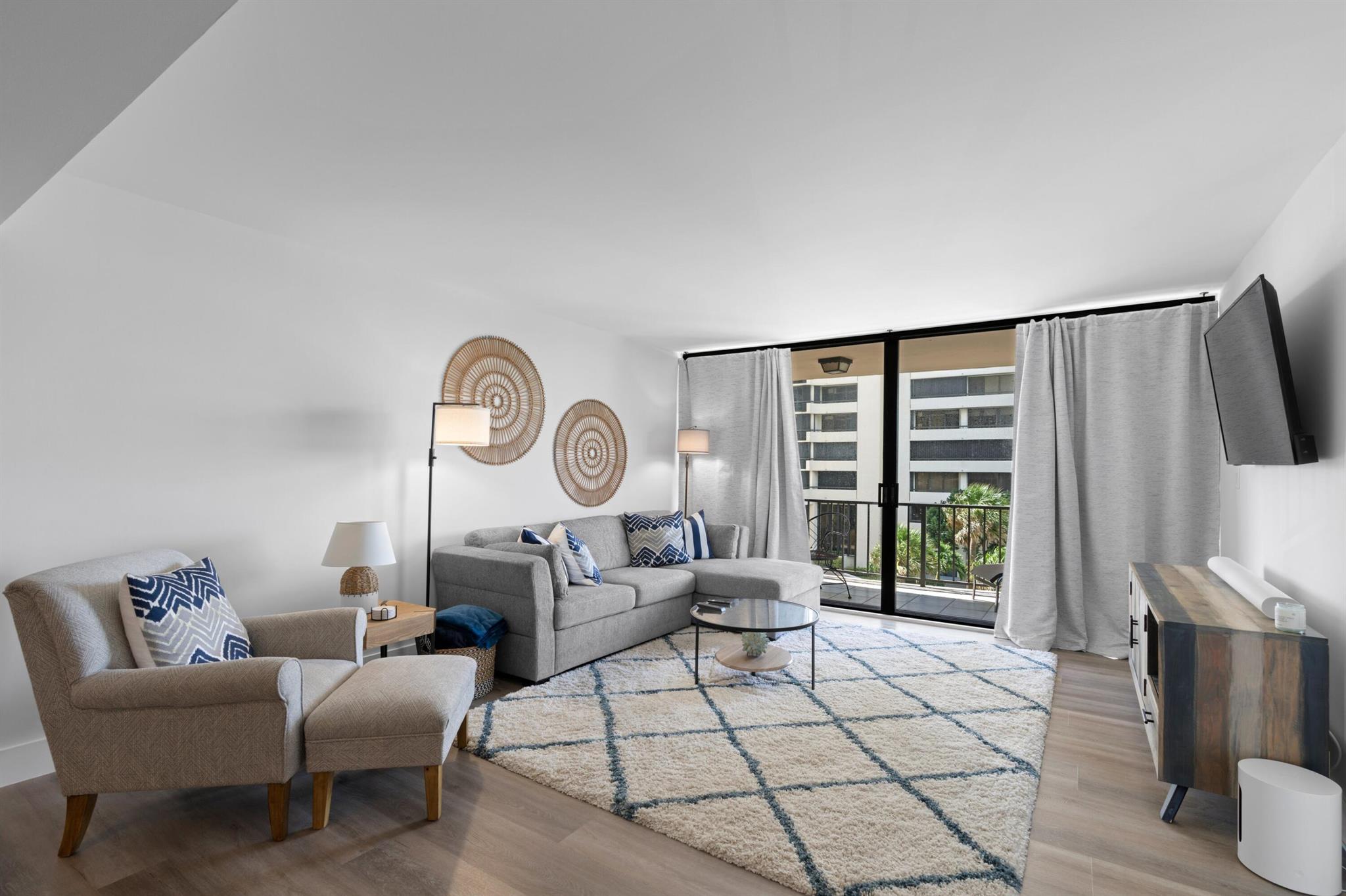 Available now for Seasonal or Annual Rental! Bright and open, fully-furnished. 3-bedroom, 2-bathroom condo with split floor plan and coastal design. Fully renovated with hurricane impact windows/doors and washer & dryer in-unit. Every bedroom offers balcony access with ocean breezes. Located in a gated community with secure building access, pool, gym, and direct beach access with chair & umbrella service. Walk to Singer Island dining and entertainment.