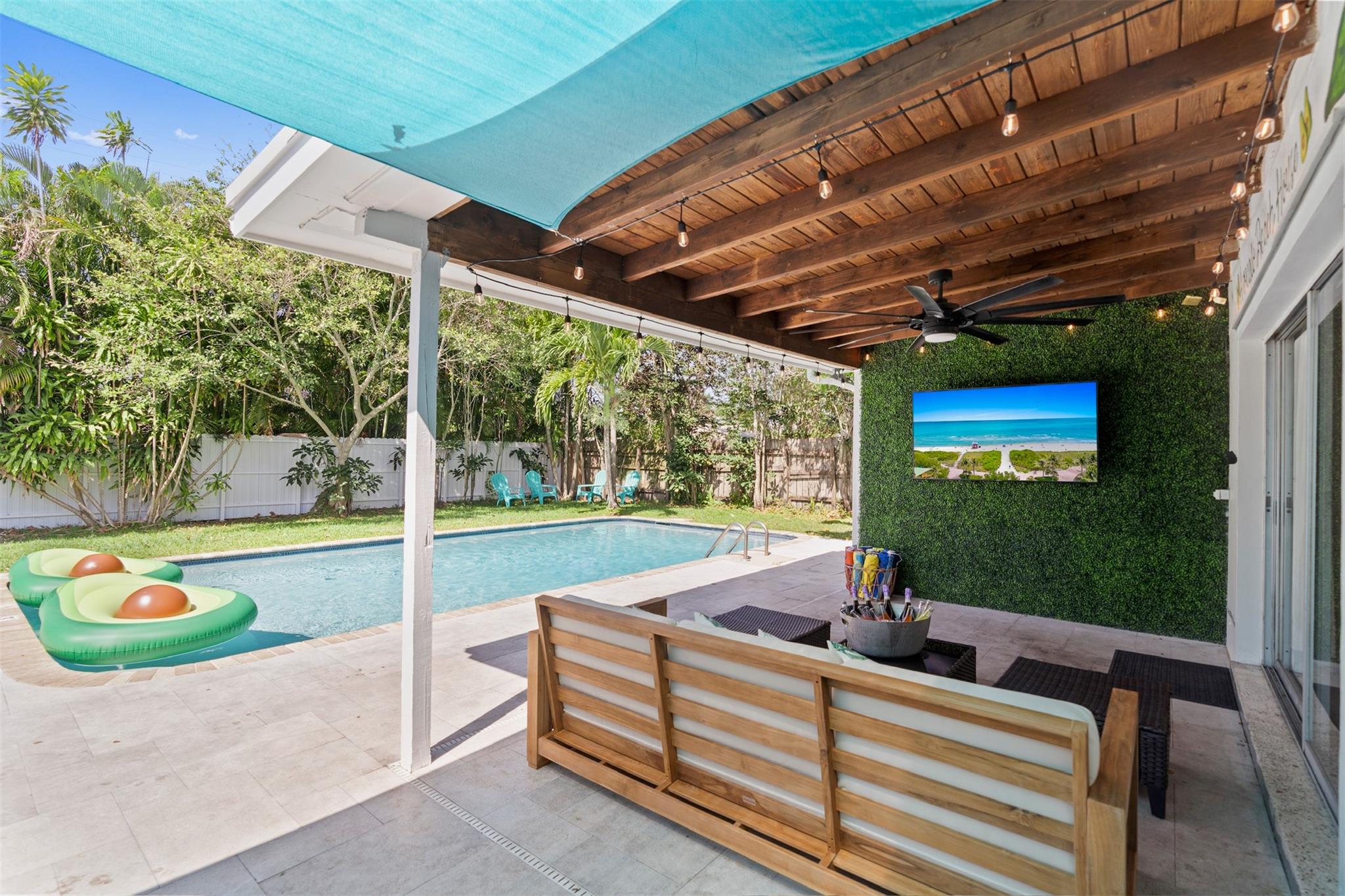 Luxury Seasonal Rental, available January–April 2026. Spend your winter in paradise! This tastefully furnished 4-bedroom, 2-bath home offers a perfect blend of comfort and coastal living. Step into a spacious open floor plan, decorated in a modern, beachy style. Upgraded kitchen and baths, vinyl flooring, three 70" TV's, walk-in closet, indoor laundry room. Enjoy the best of outdoor living with a newly resurfaced Pool, covered outdoor patio + TV, outdoor shower, BBQ, and large grassy area. Perfect for entertaining or relaxing in your own tropical oasis. Fully equipped with all the bells and whistles needed for a comfortable seasonal stay. Just minutes to beaches, dining, shopping, golf, and more. All utilities and maintenance included in rent. Pets welcome. Your seasonal retreat awaits!