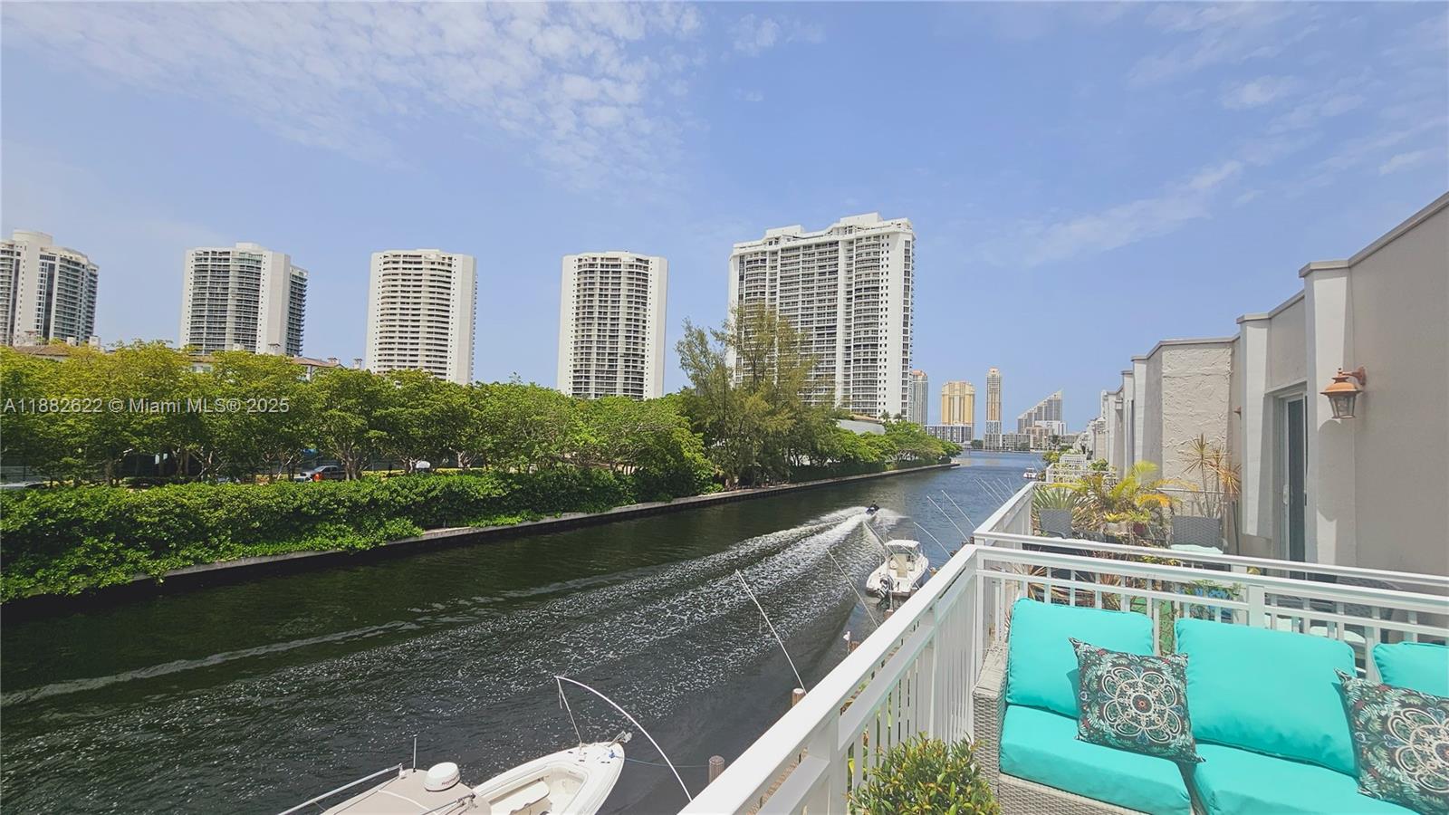 Rare waterfront townhome featuring two primary upstairs bedrooms with en-suite bathrooms and 1/2 bath on main level for guests. COMPLETELY UPDATED!! Updated kitchen, stainless steel appliances, floors completely redone. On the lower level relax on the 115 sq ft covered balcony where you can eat every meal enjoying water views. As an added extra on the upper level you'll enjoy a separate 91 sq ft terrace to view the sunsets. You'll see mega yachts pass by the canal with direct access to the ocean. The home includes a full-size washer/dryer in its laundry/utility room. All windows were upgraded to impact. This home is in Eastern Shores. Ready for move in 11/1/25.
