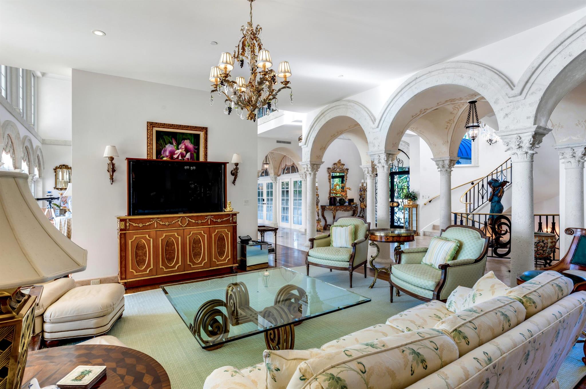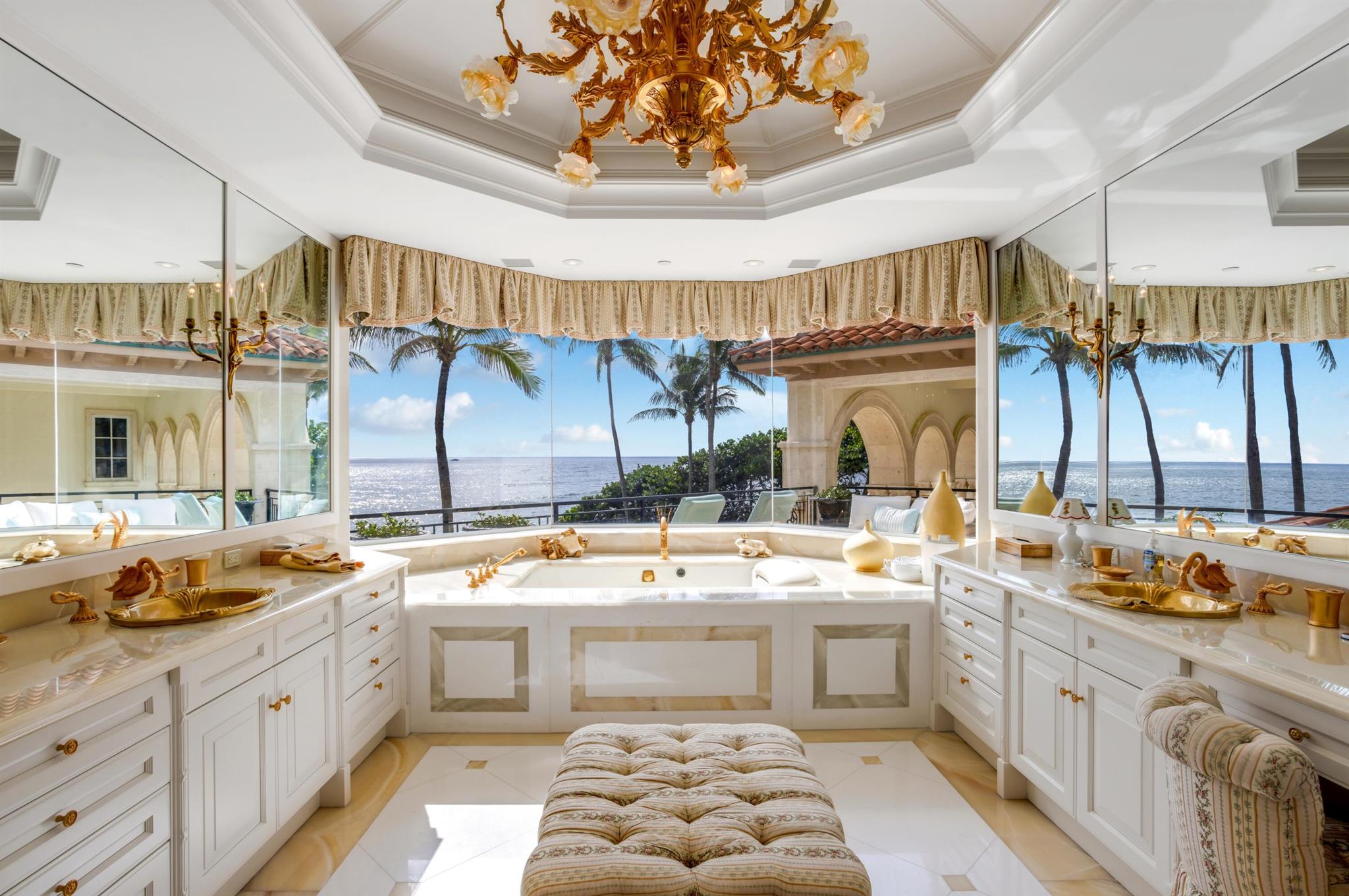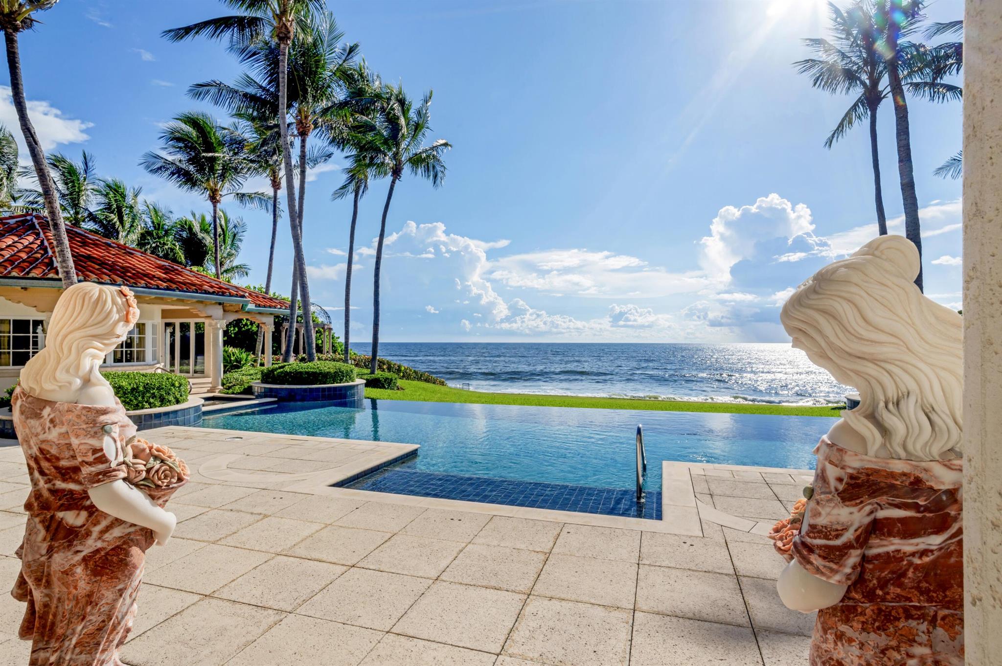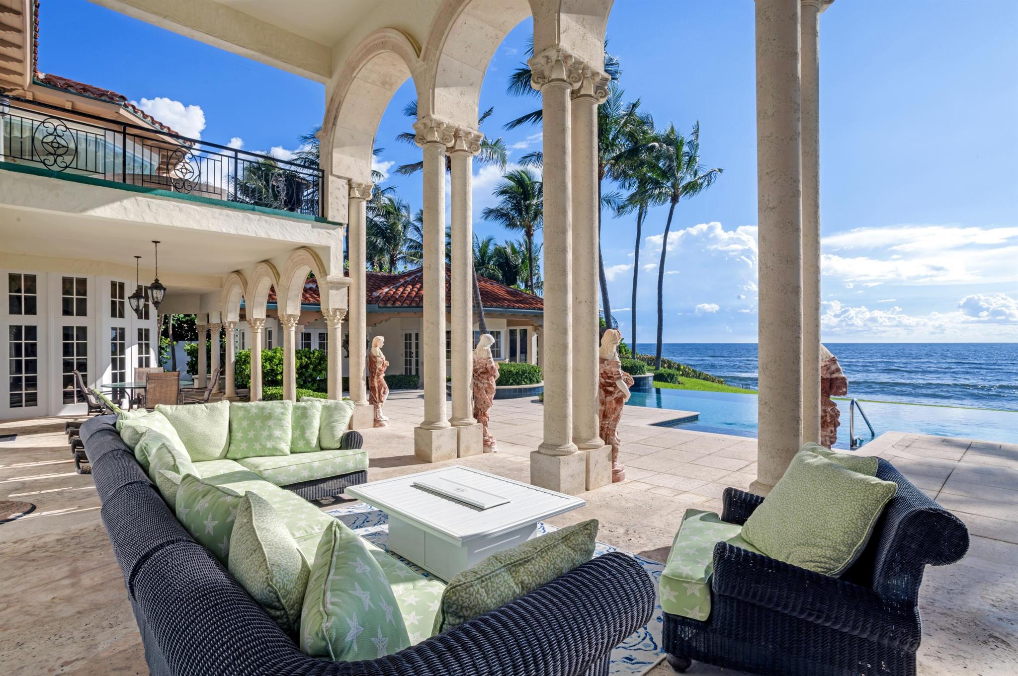 In a gorgeous tropical setting on the beach in Ocean Ridge, this elegant villa commands magnificent ocean panoramas. Loggias, terraces and balconies bring outdoor living indoors, while the estate's interiors are optimized for ocean views. This architectural masterpiece, complete with every amenity accounted for, is one of Palm Beach County's most complete and compelling private lease offerings.