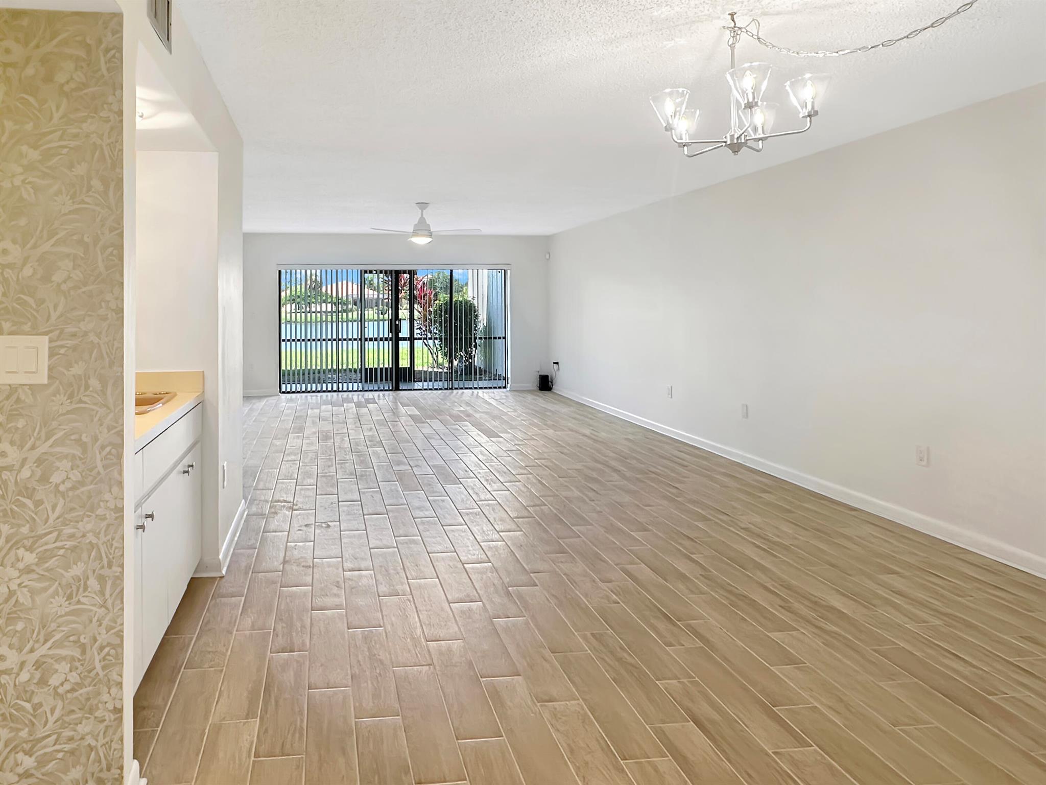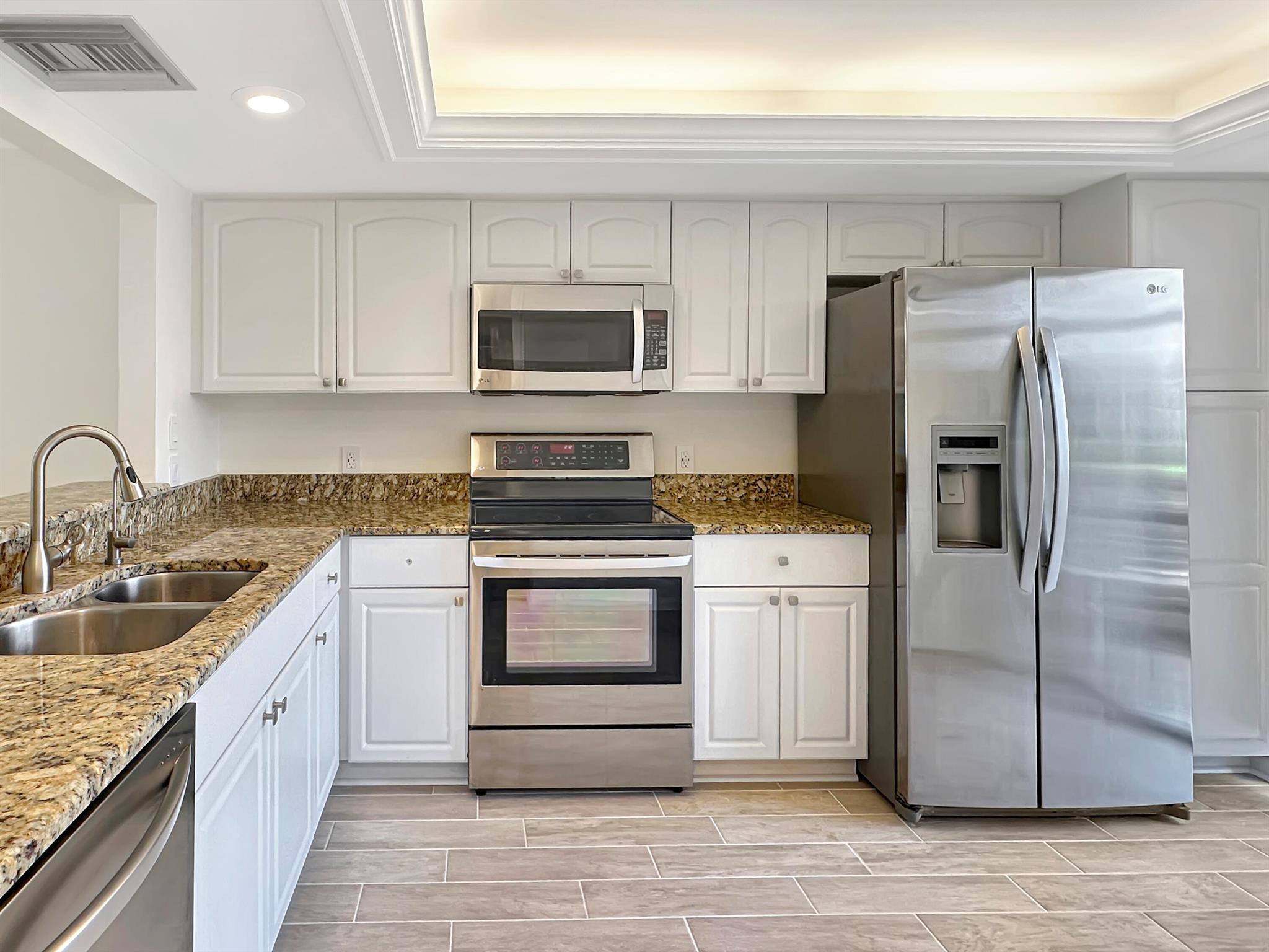 Welcome to your dream Florida oasis, where resort-style living meets comfort and elegance. This 2-bedroom, 2-bathroom condo, nestled in a premier gated community, invites you to indulge in a life of leisure and luxury. Boasting a convenient first-floor location, this unit has been refreshed with a new ceramic tile flooring and a tasteful interior paint job, creating a clean and modern canvas for your personal touch.As you step inside, you'll be greeted by a spacious living and dining area, complete with a wet bar, perfect for entertaining guests. The open floor plan seamlessly flows onto a screened porch, where you can unwind with stunning lake and golf course views that promise tranquility at any time of the day.