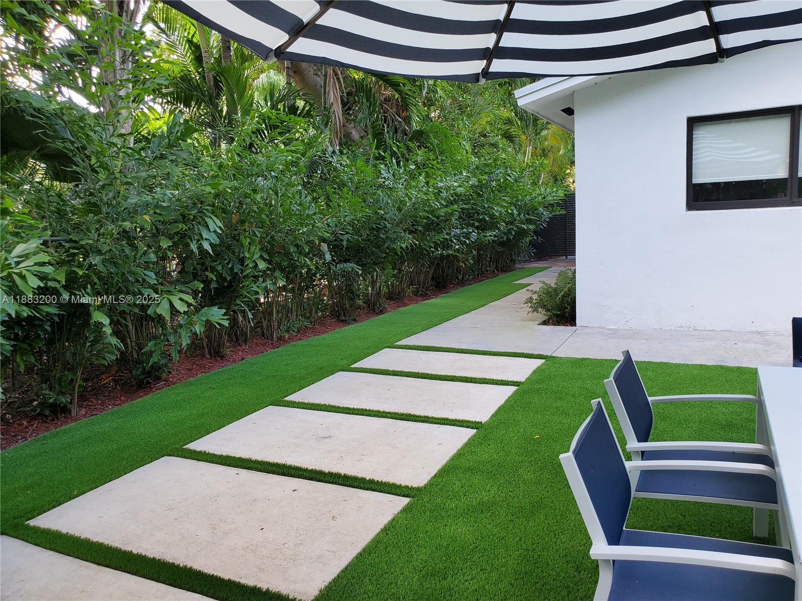 Boutique single-family home with 3 bedrooms and 2 bathrooms, recently remodeled and fully furnished, located at 77 NE 43 St, Miami, FL, just two blocks from Calle 40—home to all the major brand stores—and one block from Gucci boutiques, surrounded by exclusive restaurants and museums, with beautiful beaches just 15 minutes away; features parking right at the doorstep, a spacious and private patio with total privacy, high-end finishes (modern kitchen, central air conditioning, elegant bathrooms), cozy boutique-style decor, energy efficiency with LED lighting, and exterior with artificial turf for low-maintenance appeal. Prime location