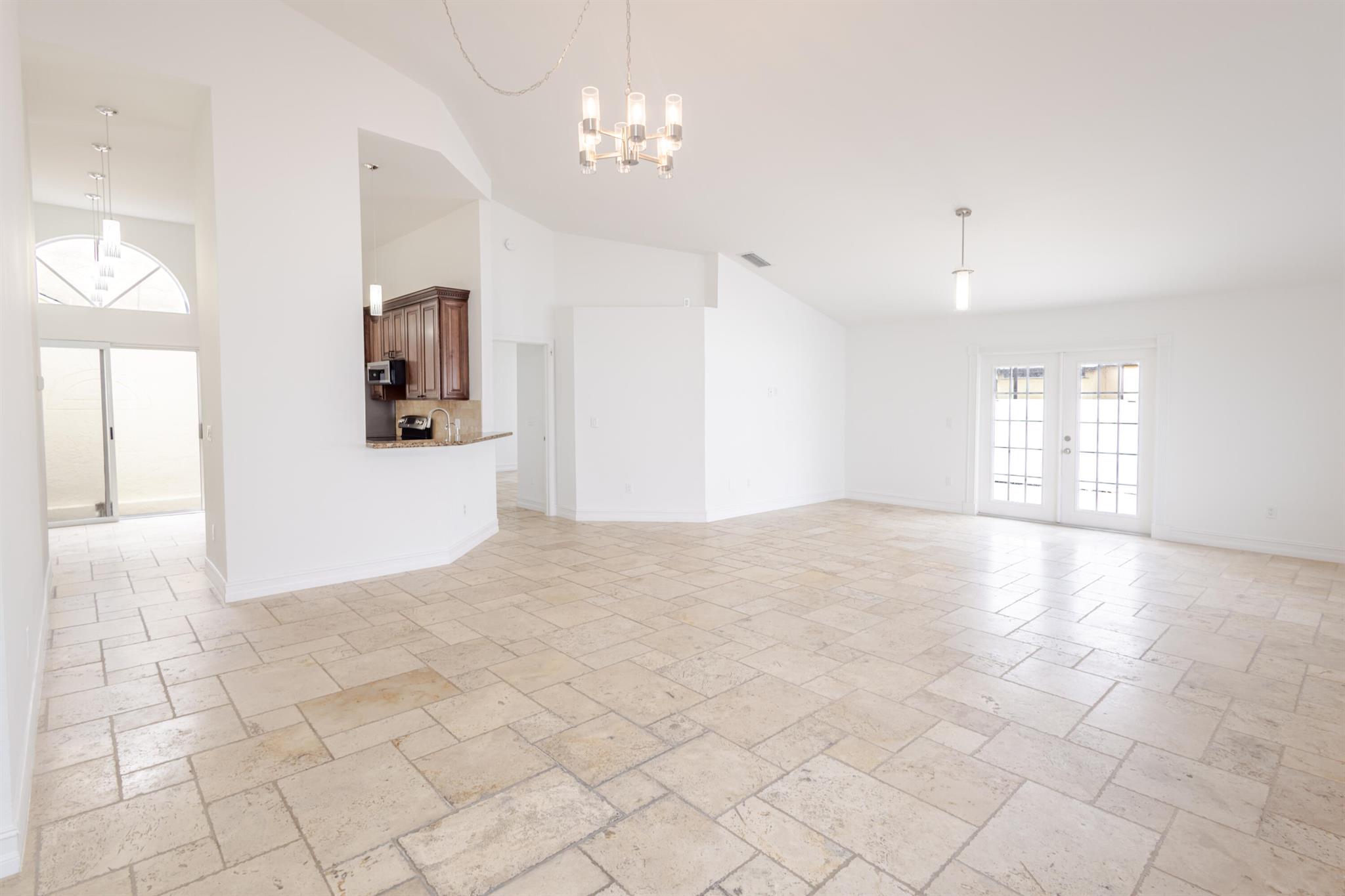 Well-kept West Boca home featuring 3 bedrooms and 2 bathrooms on a fully fenced corner lot with a spacious backyard. Recent improvements include fresh neutral paint, smooth ceilings (no popcorn), and updated lighting fixtures throughout the home, garage, and exterior. Travertine marble flooring runs through the living areas, highlighted by vaulted ceilings and abundant natural light. The updated kitchen offers wood cabinetry, granite counters, and stainless steel appliances. The primary suite includes two walk-in closets and a remodeled bath with an oversized walk-in shower. Additional features include a front-load washer/dryer, upgraded garage lighting, and thoughtful improvements that create a bright, welcoming feel. This home is move-in ready, modernized, and turnkey.