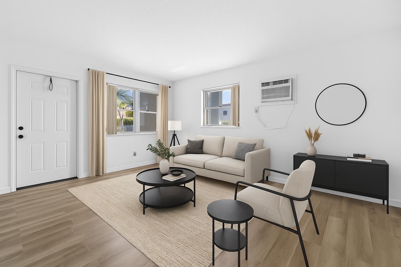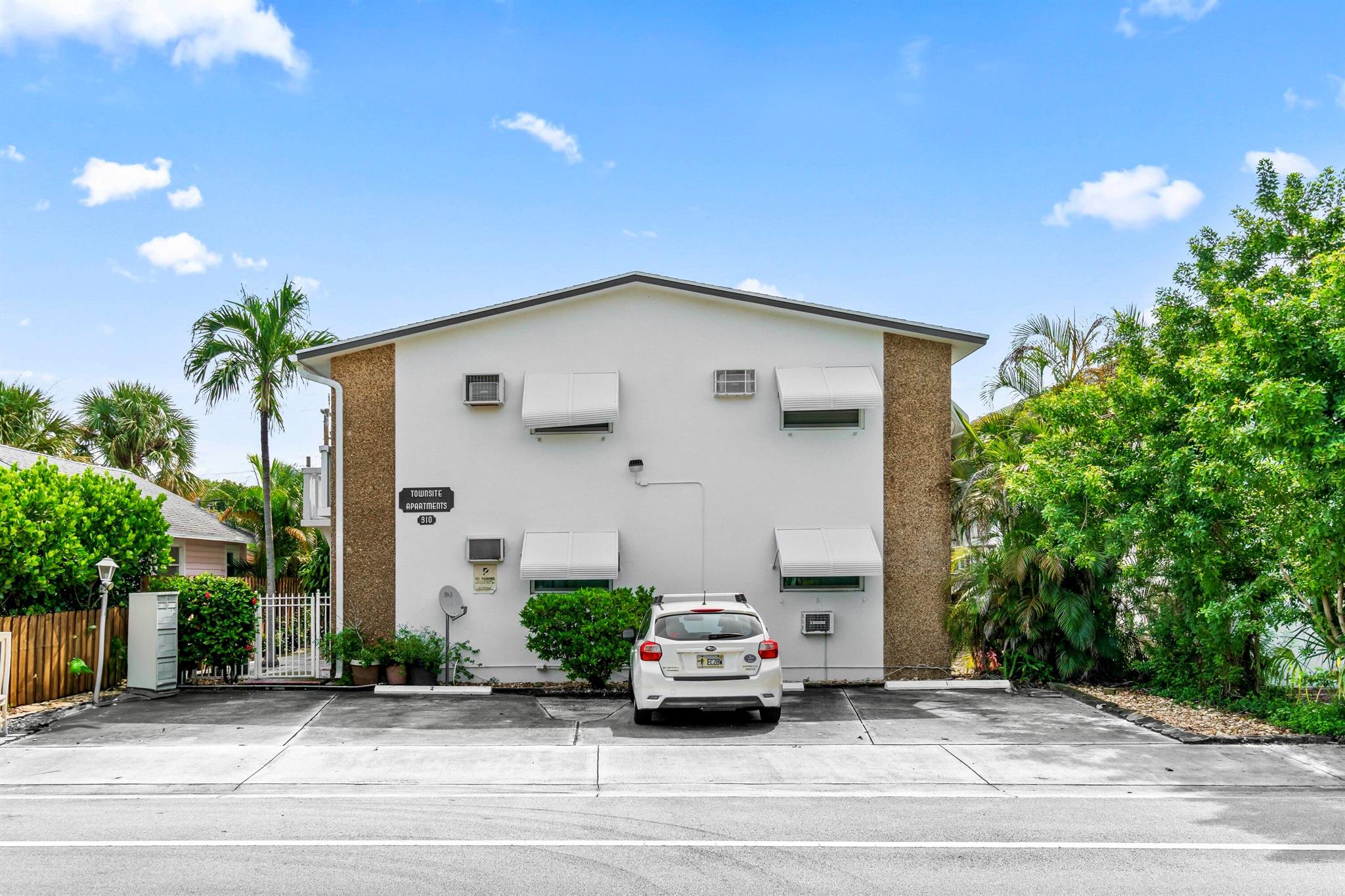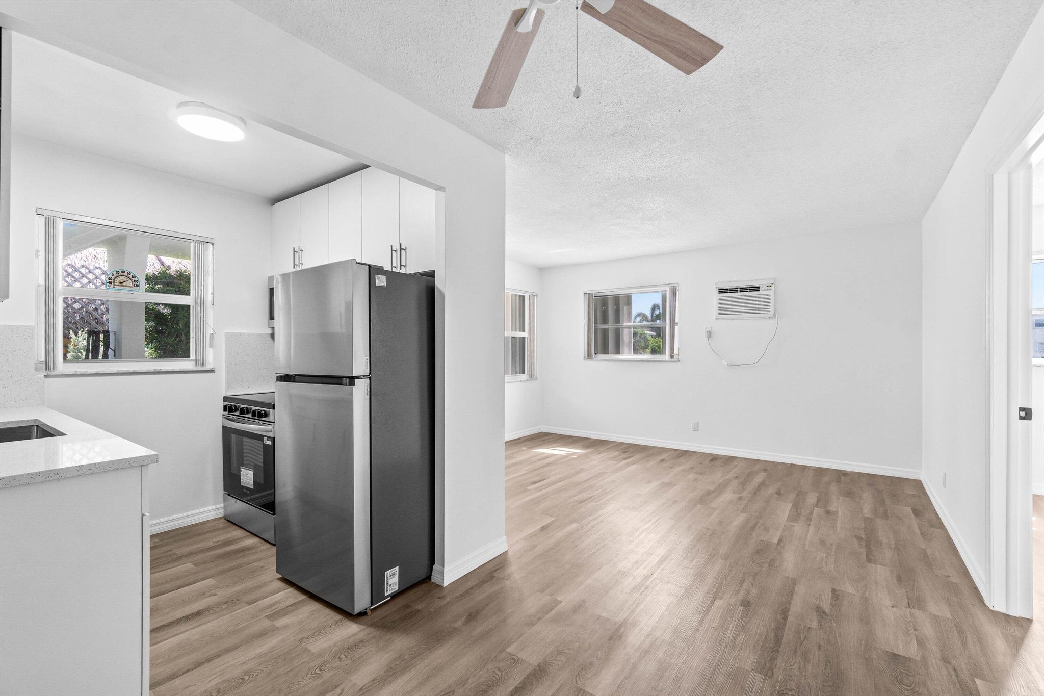 First-floor corner unit featuring a renovated kitchen with new appliances, fresh interior paint, and accordion shutters. Assigned parking space included and onsite laundry facilities. Water included. Impact Windows.Excellent location just a few blocks from Downtown Lake Worth, shops, dining, and entertainment.