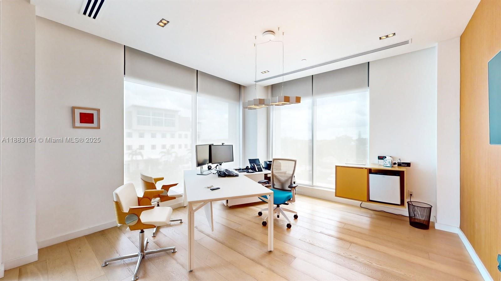 Elegant office with floor-to-ceiling glass windows modern look. 2,163 SQ FT under A/C with desk and chairs. High ceilings with a majestic look and a lot of natural lighting. Great location, located in the heart of Downtown Doral, is near multiple restaurants, shops, and the Palmetto Expressway. The building offers a large free parking lot for all visitors and employees.