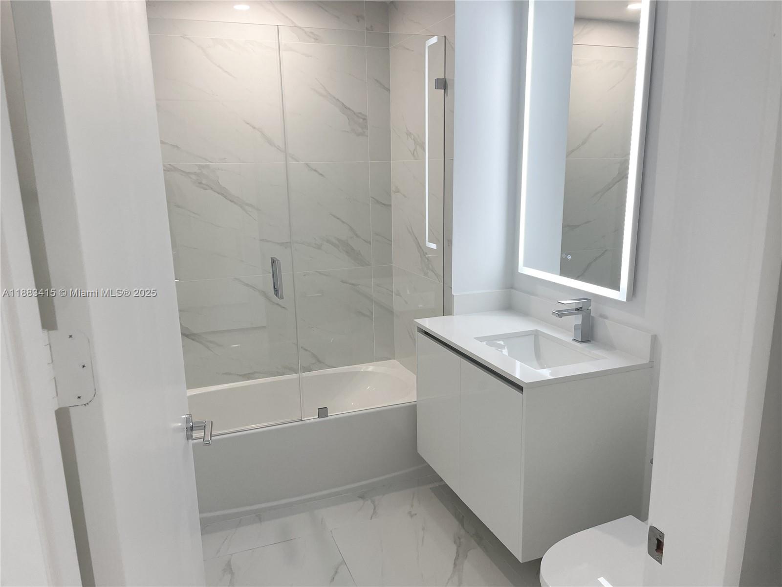 This brand new luxury condo has panoramic views of Biscayne Bay, all the way from Key Biscayne to Fort Lauderdale and the ocean beyond. The 2 bedroom, 3 full bath with den features high end appliances, floor to ceiling sliding glass doors, upgraded fixtures, glass showers and backlit mirrors in all bathrooms, a walk-in closet, new shelving, and automatic shades that include blackout shades in the master bedroom. Building amenities include a gym, multiple pools, a spa, yoga studio, a basketball court, tennis courts, movie theater, game room, kids playroom and outdoor grilling areas. The property is located in Edgewater and is just minutes away from Midtown, Wynwood, Miami Beach and Miami International Airport. Take the opportunity to live in Miami’s newest waterfront condo.
