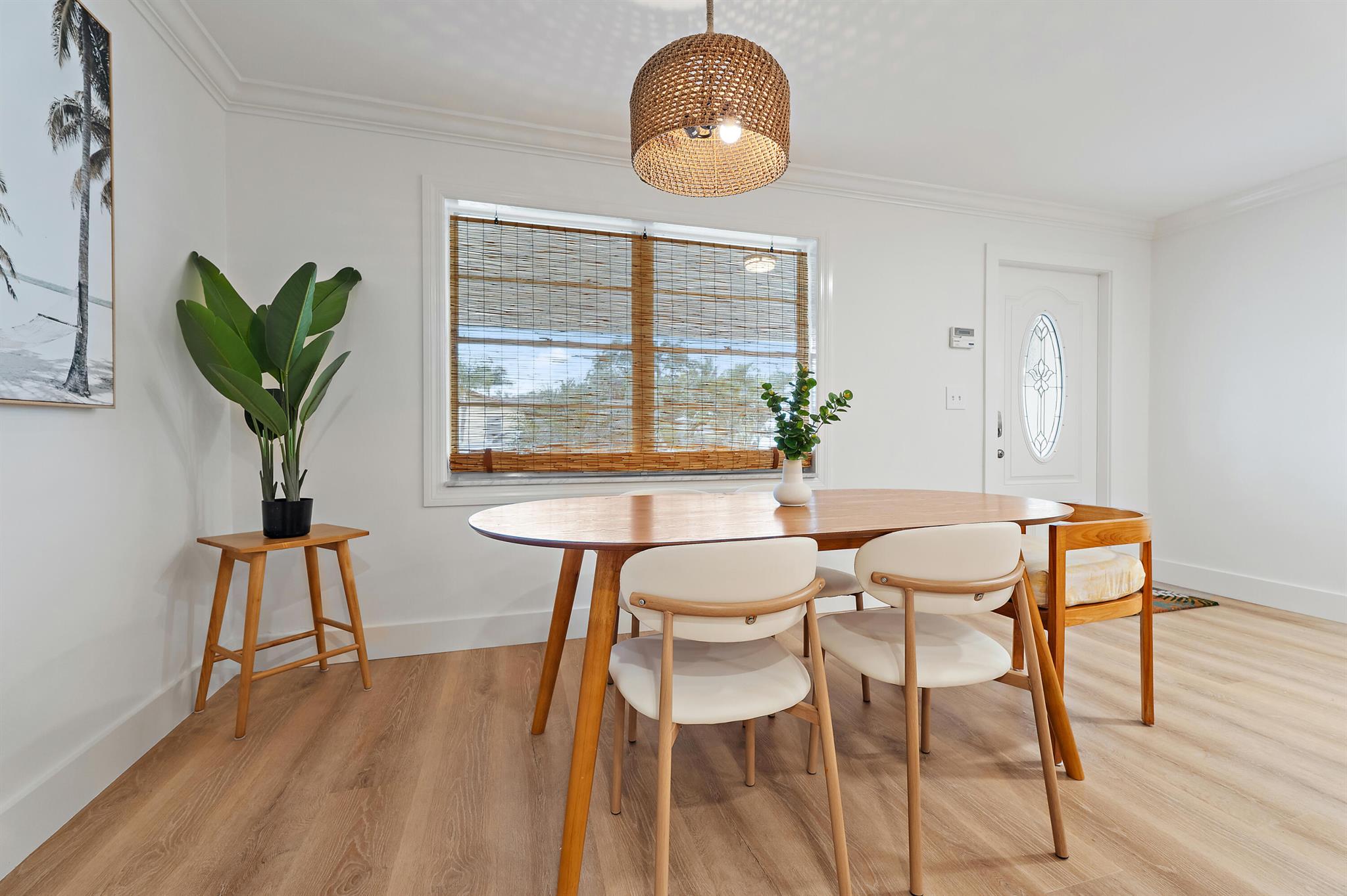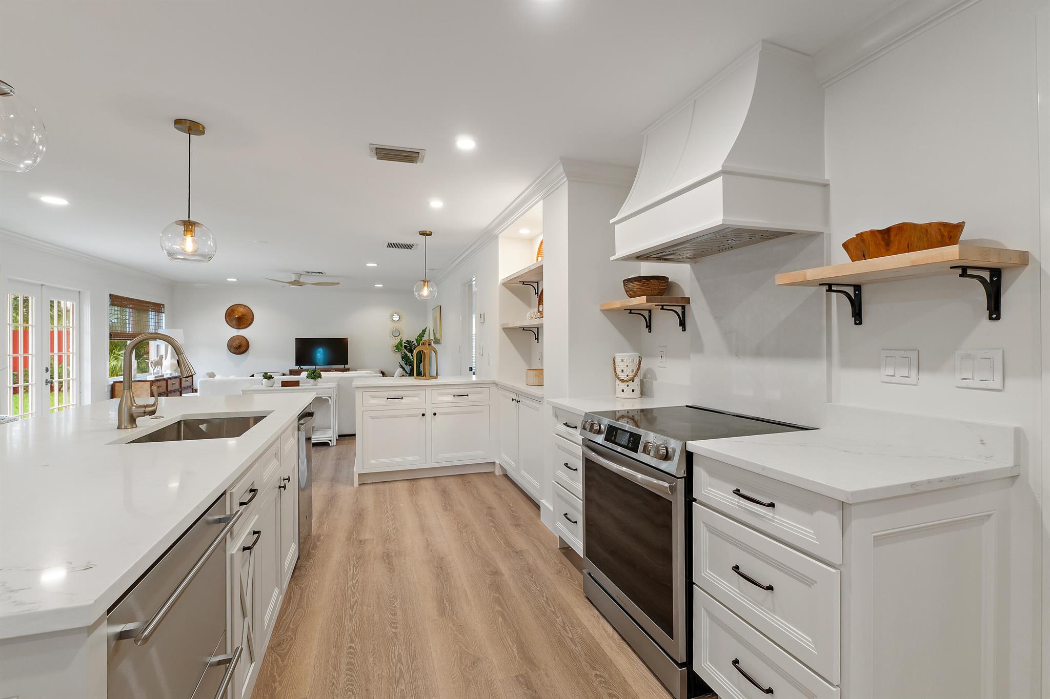 Exquisitely recreated and updated, this single-story Tequesta home blends modern comfort with coastal charm. Just moments from Jupiter Island, the Jupiter Inlet, and Jupiter's pristine beaches, it delivers the best of South Florida living. The reinvented wide-open kitchen is the heart of the home--completely reimagined with white shaker cabinetry, quartz countertops, stainless steel appliances, and an island that seamlessly connects to the dining area and living room. A split floor plan ensures privacy, while plank flooring throughout adds warmth and coastal elegance. Outdoors, enjoy a very large backyard designed for relaxation and entertaining. An open patio invites al fresco dining and evening cocktails under the stars, while the one-car garage provides convenience and storage for