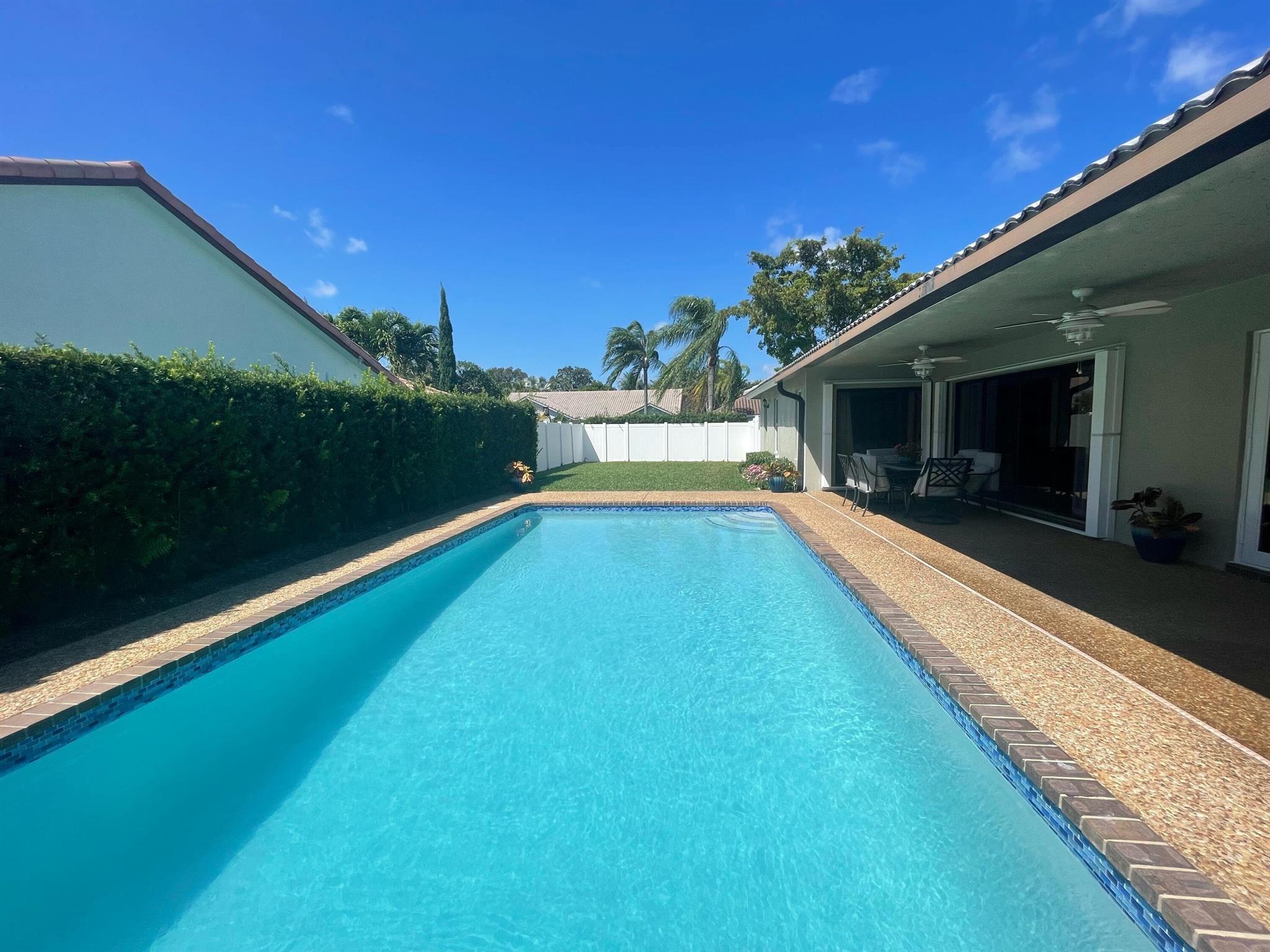Welcome Home! Come see this beautiful 4 bedroom, 2 bath, 2 car garage open concept pool home for rent. With bamboo hardwood floors, high ceilings, crown molding, 6 inch baseboards, this home is a beauty all the way around. Nestled in a quaint neighborhood with excellent schools and conveniently located near shopping, restaurants, beach, etc, look no further! The kitchen has white shaker cabinets, cambria quartz countertops and stainless steel appliances. See the welcoming pool from every living space and the primary bedroom. Primary bedroom has high ceilings, large walk-in closet, double vanities and a spacious shower. Indoor laundry. Covered patio, large backyard and beautiful pool. Lawn and pool maintenance included!